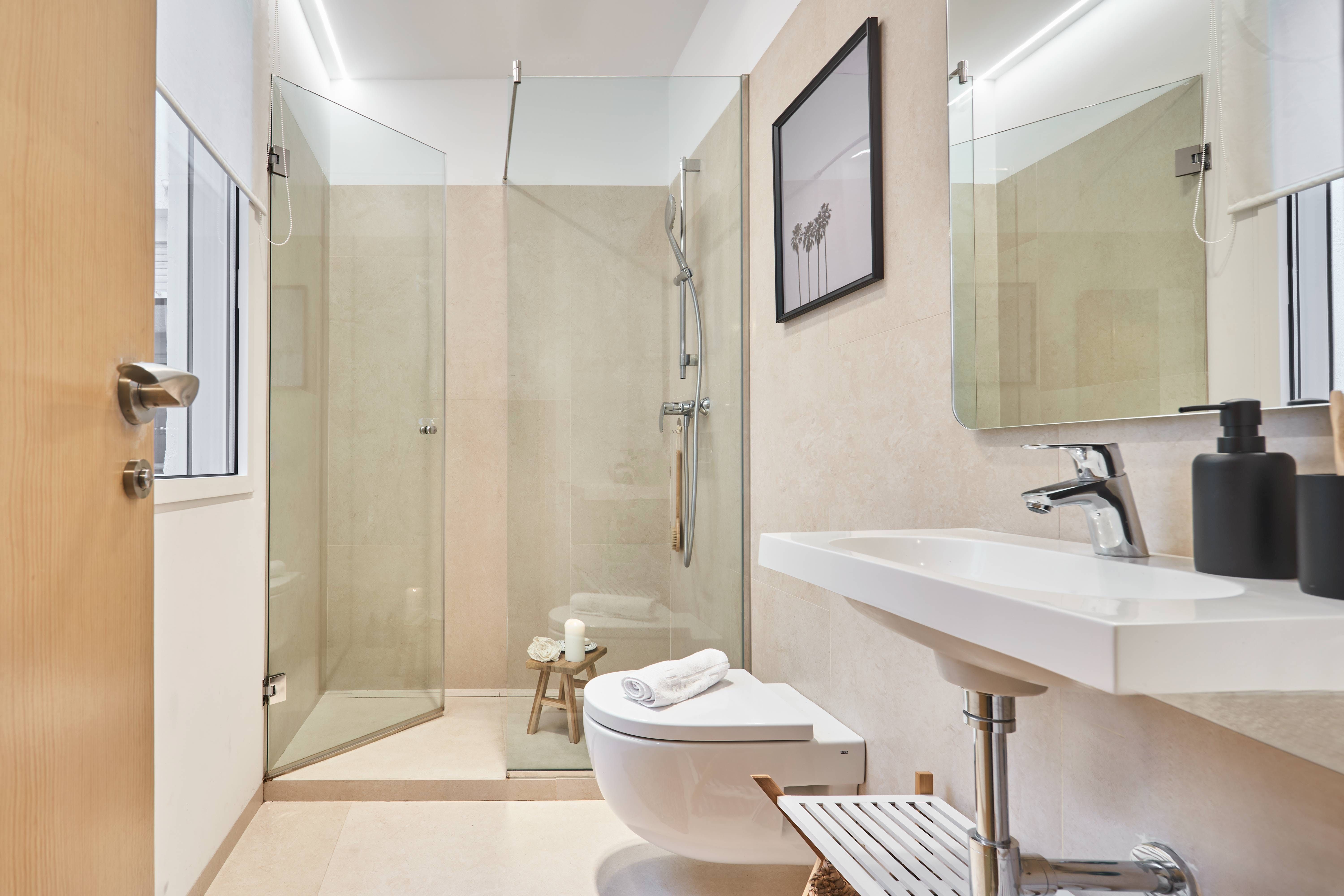 Tradition meets modernity in this light-filled apartment. The open-plan living and dining area are simple yet extremely comfortable. It feels authentically Spanish here. You might just find yourself inspired to share early evening aperitifs and tapas around the beautiful dining table.