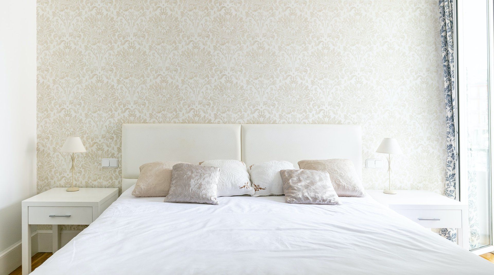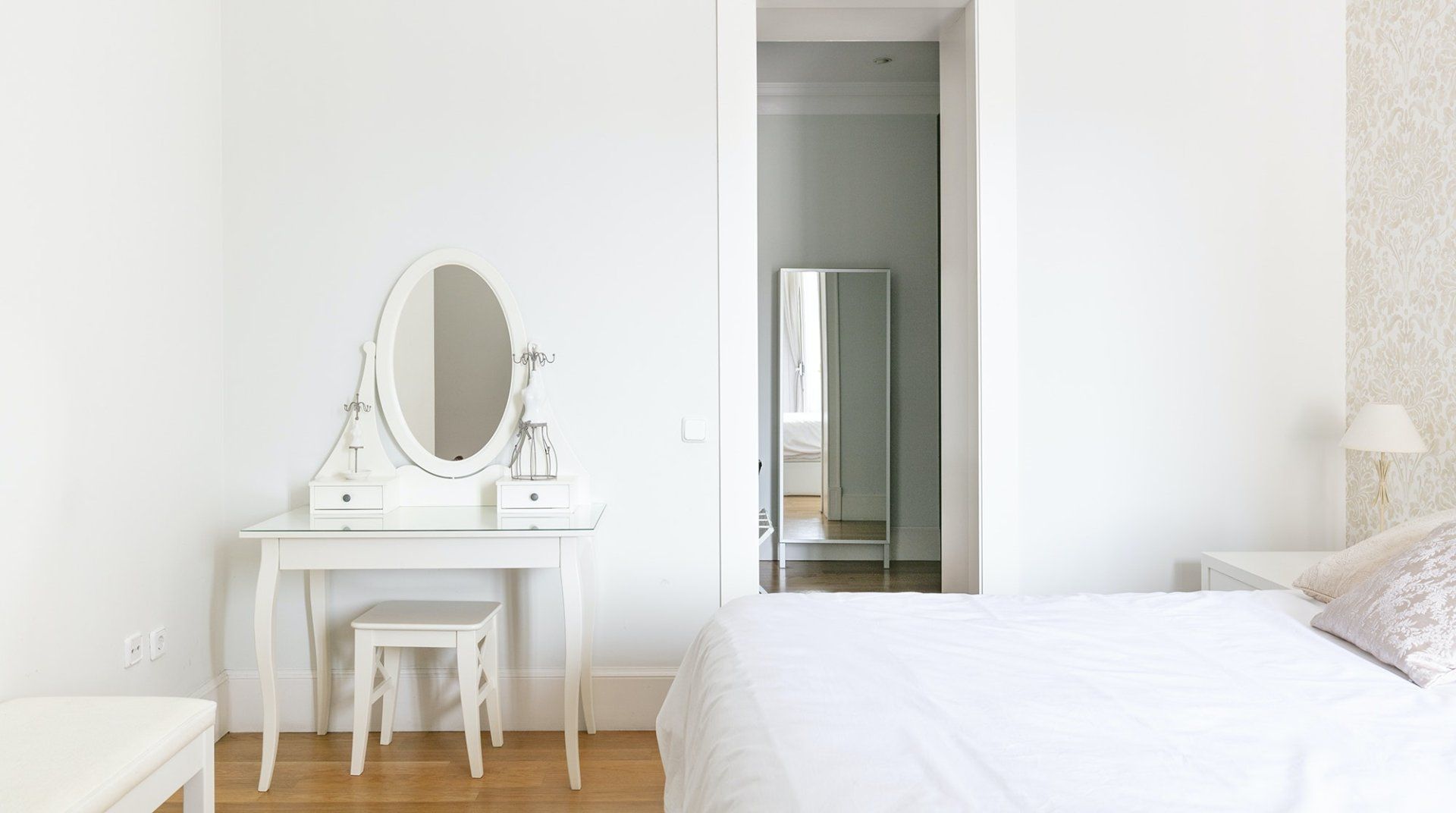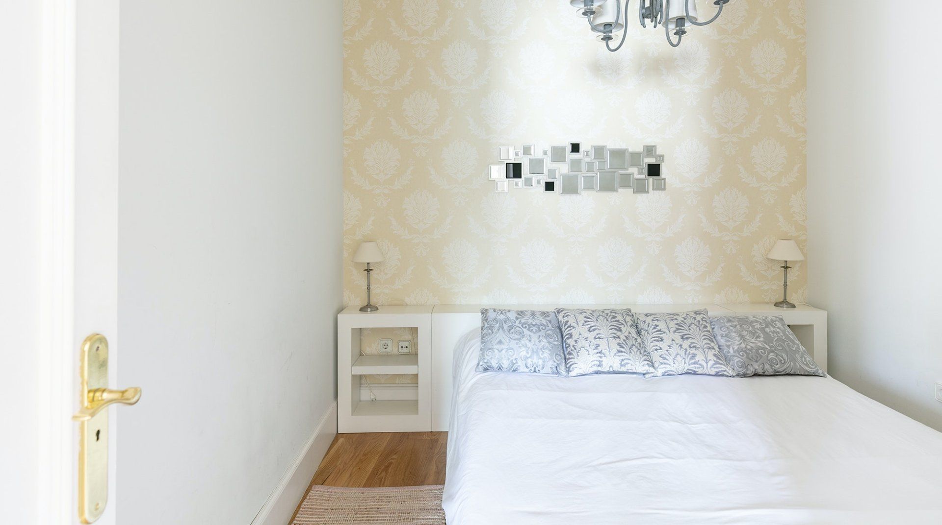 This modern apartment trades in centuries of history for bright and shiny interiors (you’ve got plenty of history outside). Naturally, the living space features two huge glass doors leading you to a private balcony facing on to the celebrated square. A cushy white sofa and dining chairs around a glass table bring a futuristic feel, while pink orchids contrast with an organic edge.