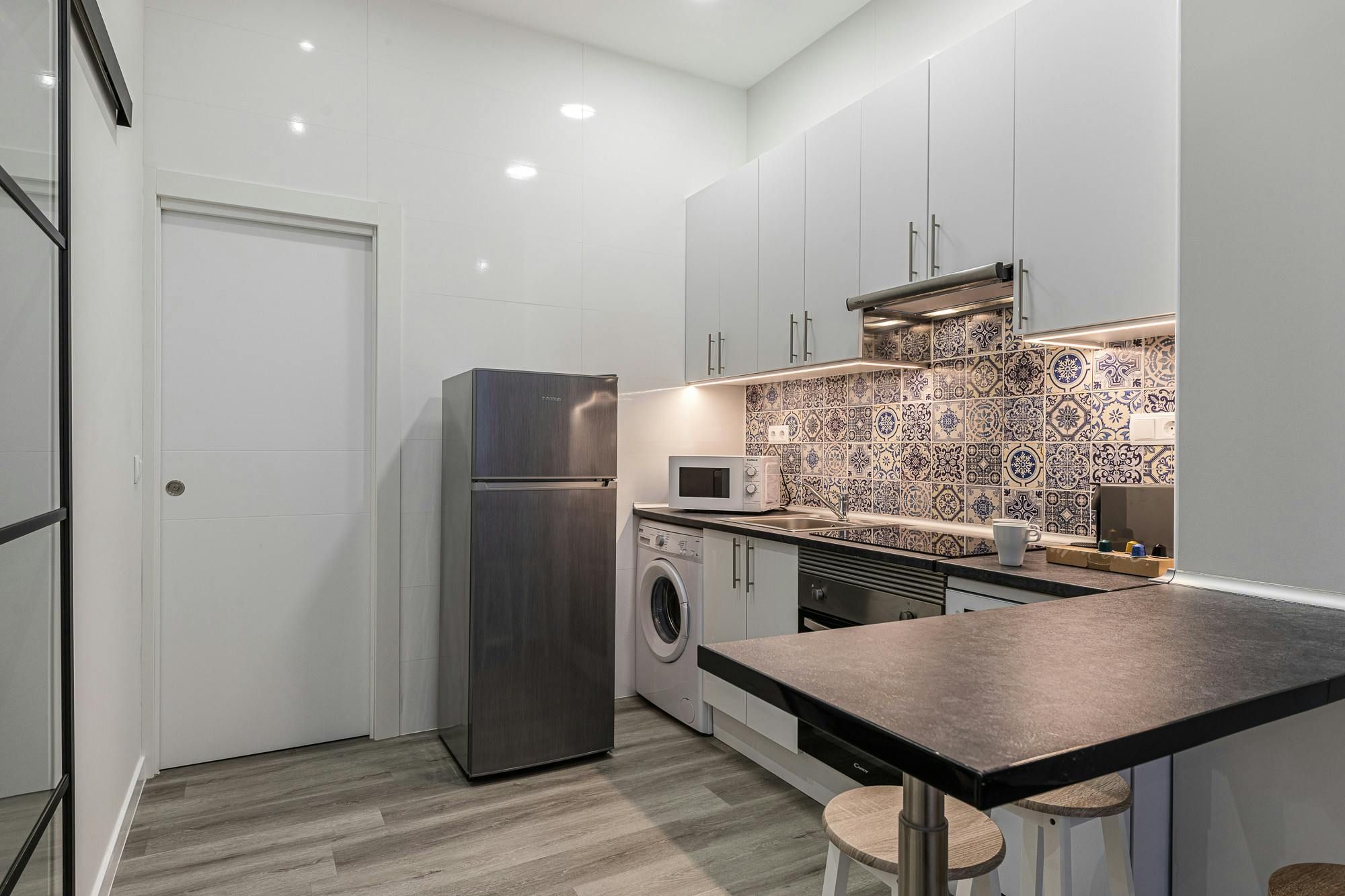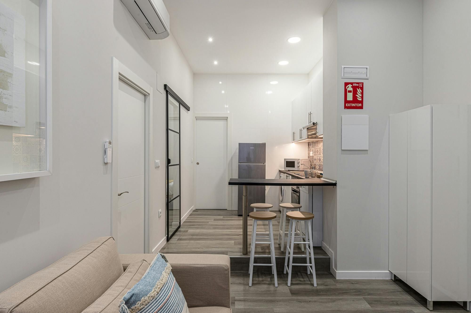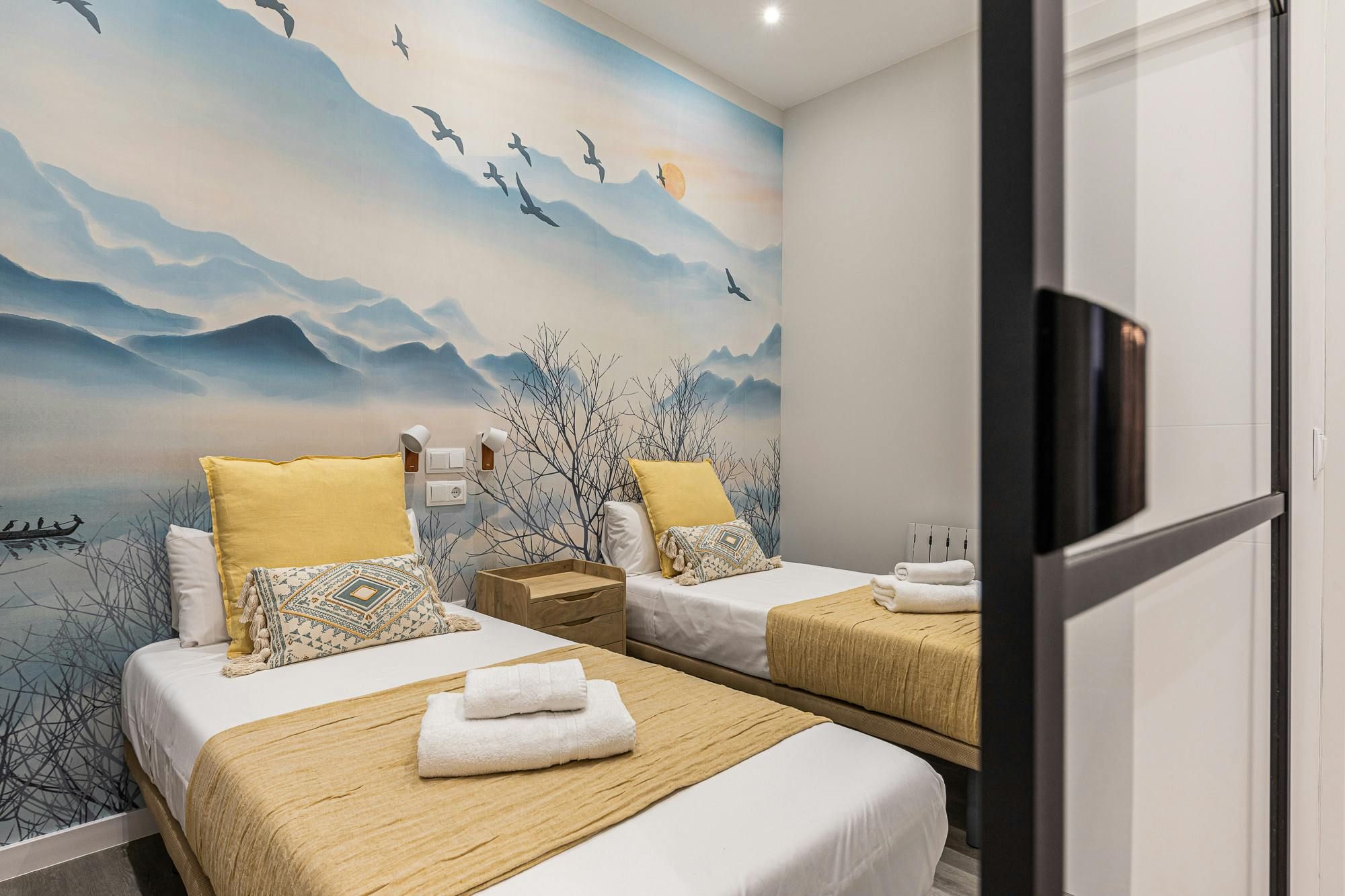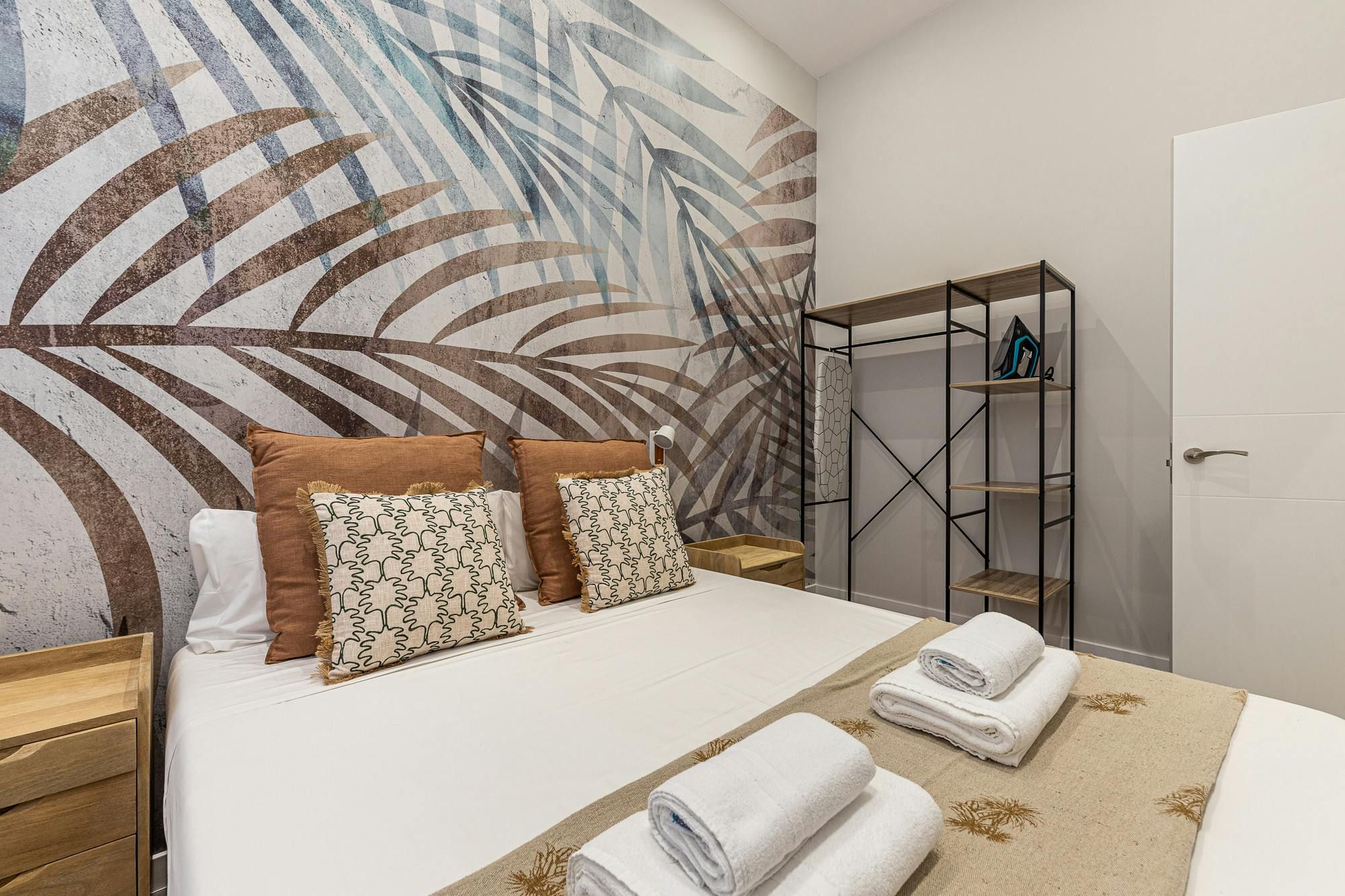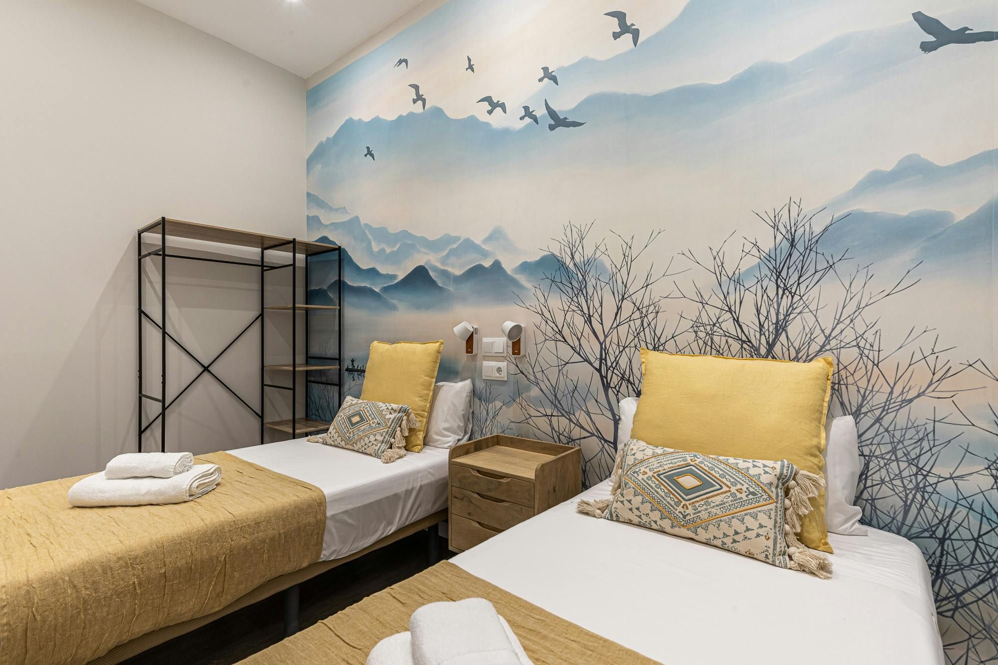 Okay, let's start with this home's location. It's not in the centre of Madrid, but it's under a five-minute stroll to the Usera Metro station. From there, it's a twenty-minute ride into the historic Puerta del Sol, the city's heart. What can we say about the apartment itself? It has everything you need for a comfortable stay, but the open-plan living room is a little soulless, perhaps (the bedrooms do have some vibrant wallpaper, though). If you don’t fancy eating out, you can create some tasty Spanish cuisine in the kitchen, though at full capacity, two guests will have to eat on the sofa.