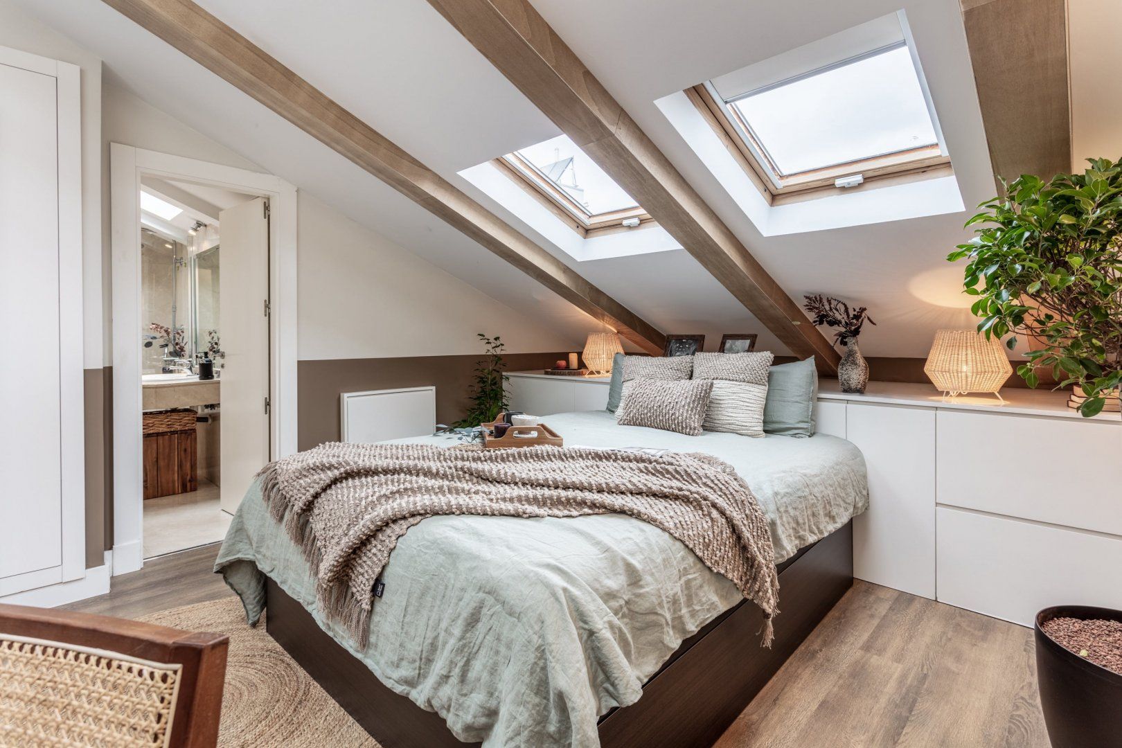 We love this apartment’s spacious roof terrace with its views over the city. It has two seating areas, while inside there are two living spaces as well (one has low ceilings, so be prepared to duck if you’re tall). This home is located in the heart of Malasaña, a district known for its history, vintage shops and cool cafés. Explore Plaza del 2 de Mayo with its weekend market stalls or immerse yourself in the exhibits in the Conde Duque Contemporary Culture Center nearby.