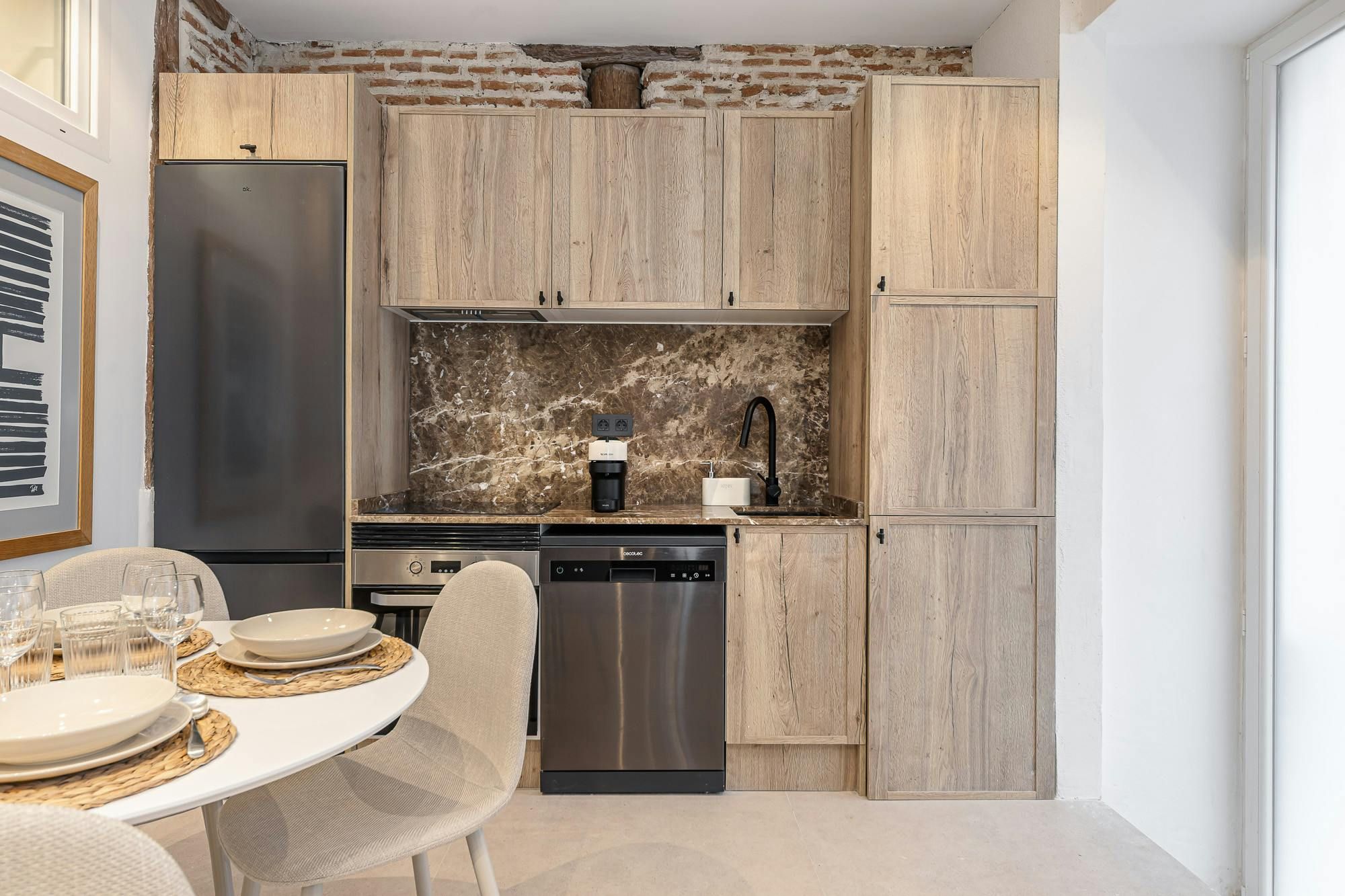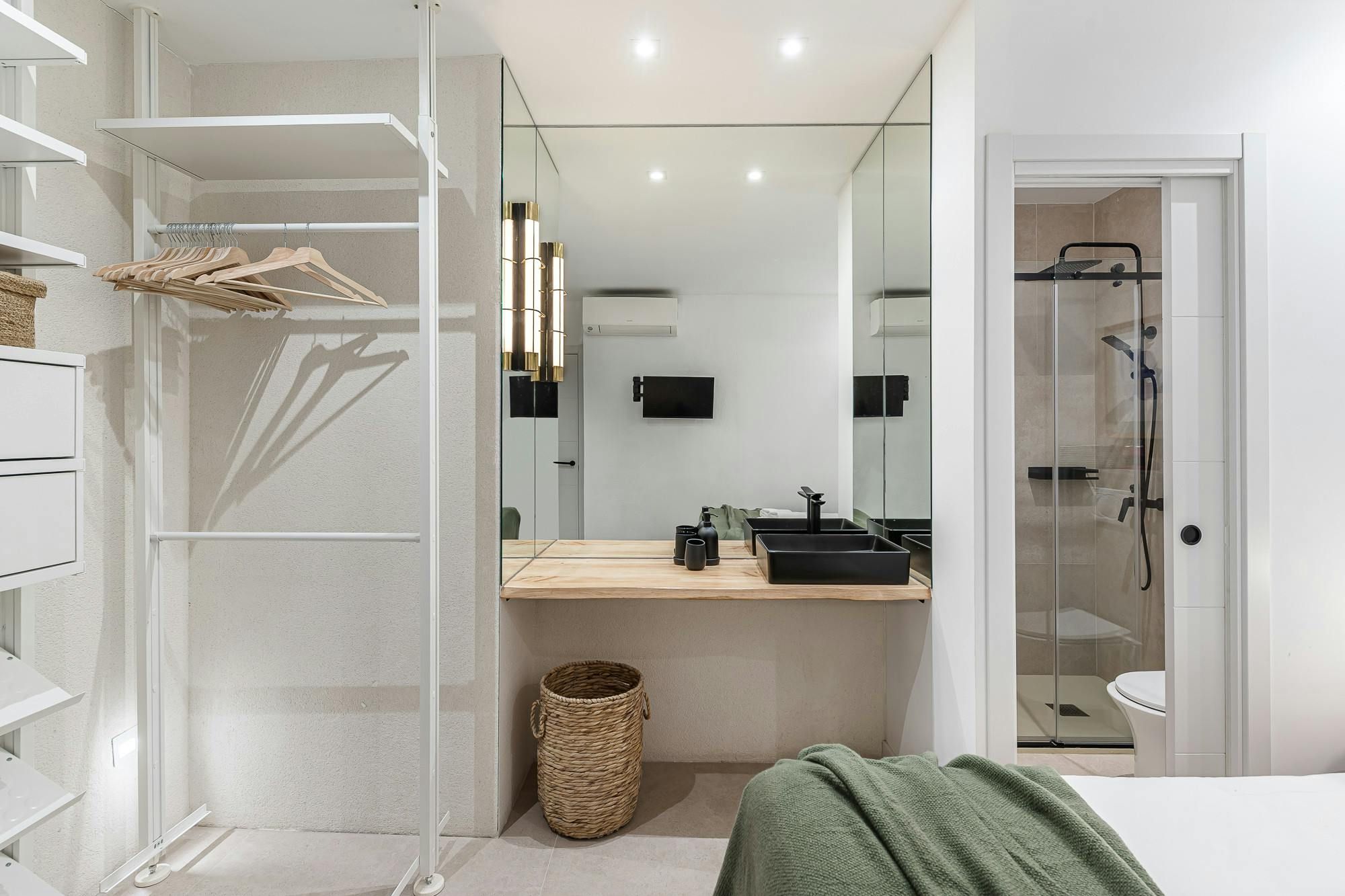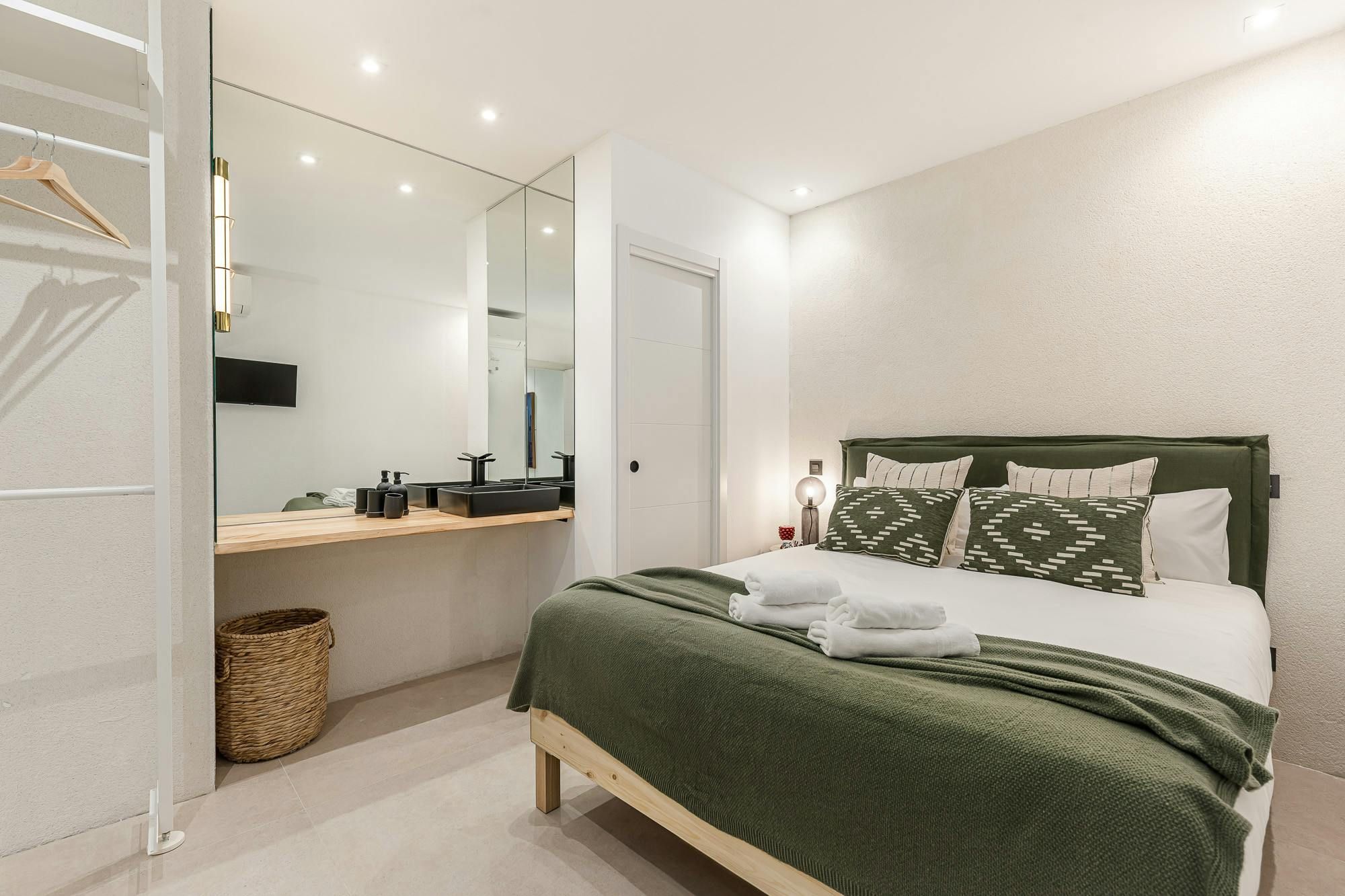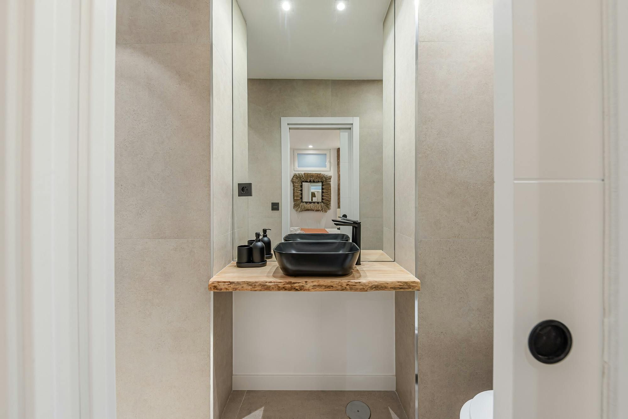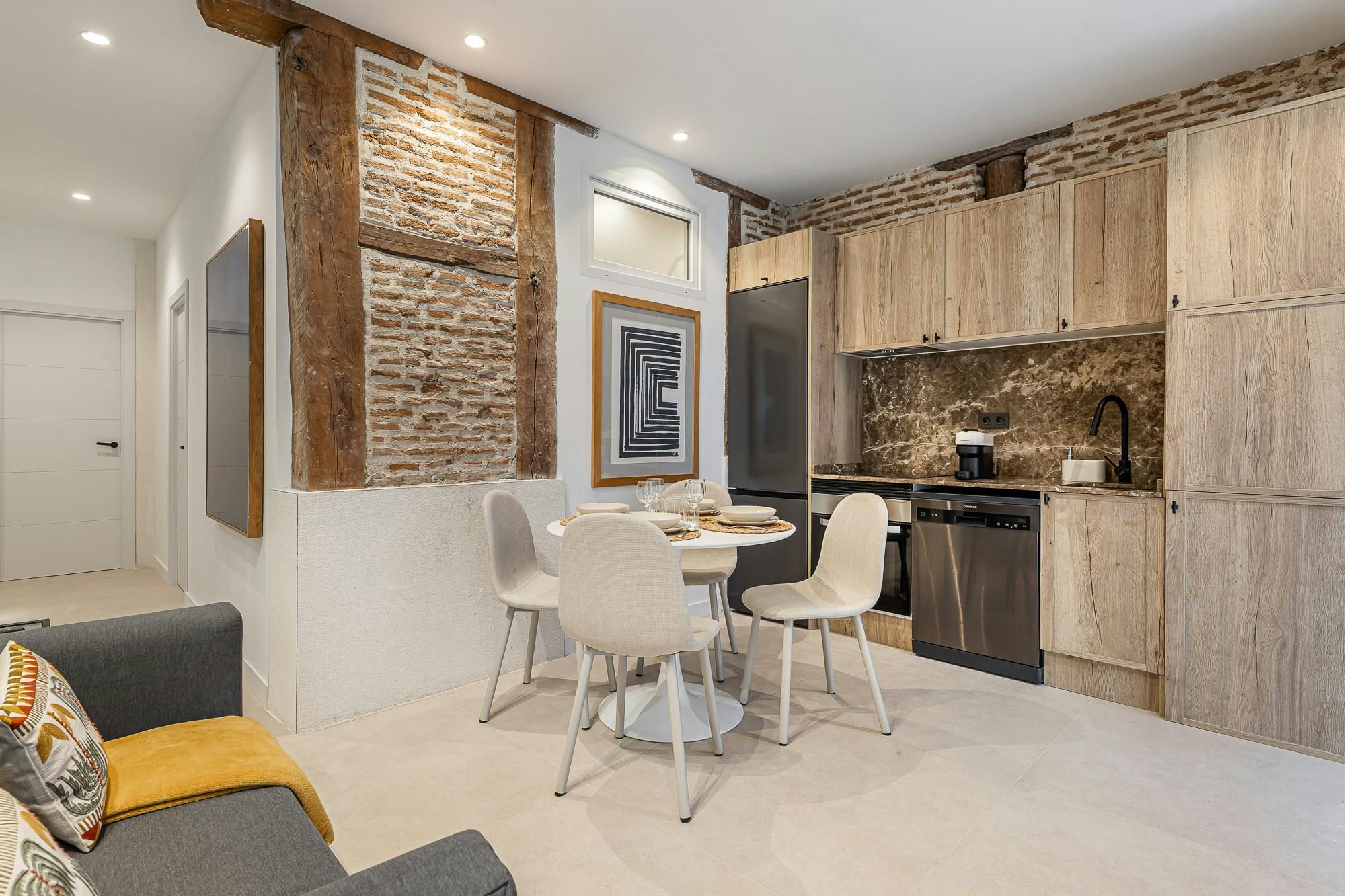 Set in Malasaña – one of Madrid’s most characterful neighbourhoods – this apartment puts you right among independent shops, late-night bars and some of the city’s best casual restaurants. Most major sights are within walking distance, and Chueca metro is nearby when your feet need a break. Inside, the style is simple but considered, with exposed brick and timber details giving the space a bit of edge. Both bedrooms have their own bathrooms, which works well if you’re travelling with friends. The kitchen covers the basics, though it’s on the compact side – better suited to breakfast and quick meals than ambitious cooking.
