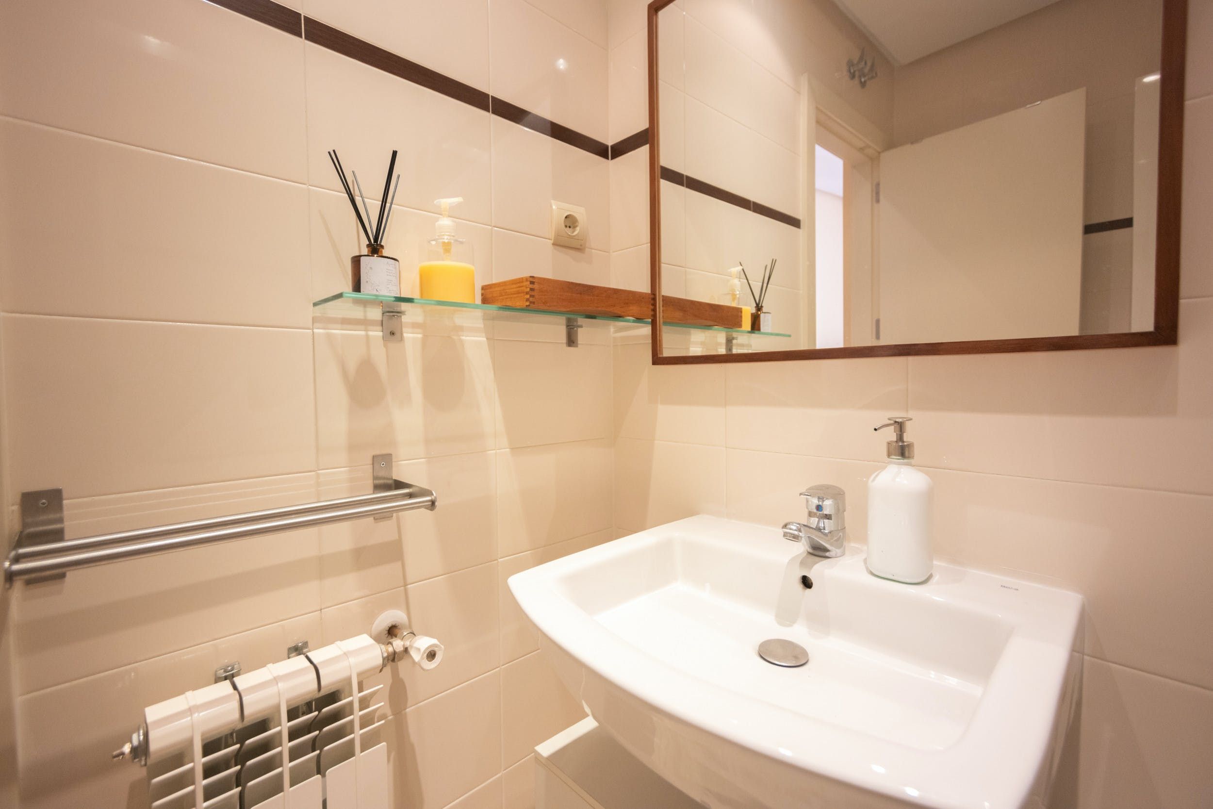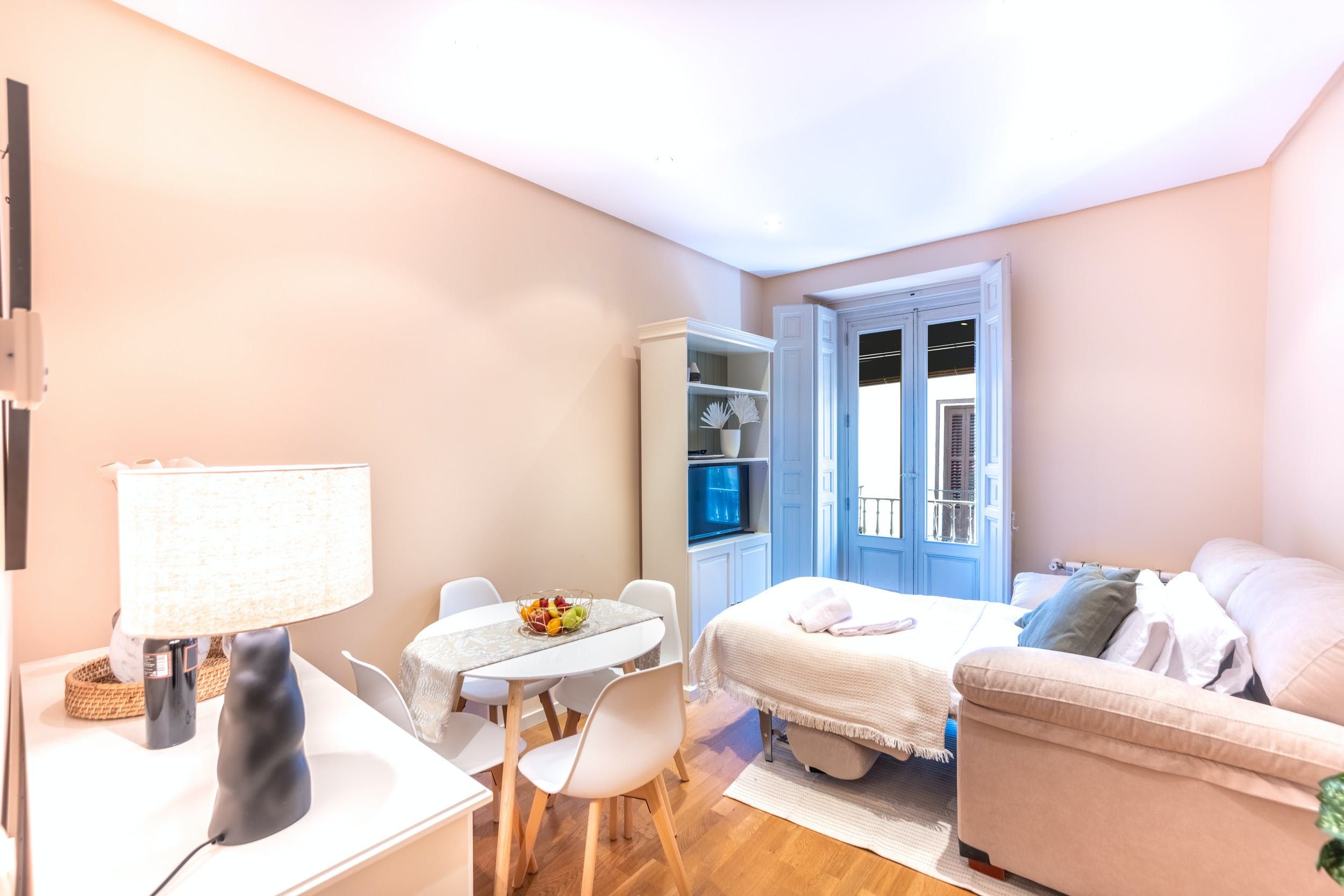 Home truths: *Your host does not accept groups of young people under the age of 21. *At full occupancy, one guest will be sleeping on a sofa bed in the living room. *Given the home's central spot, expect to hear some street noise throughout your stay. *We think Madrid is best explored on foot or using the easily accessible public transport links. The closest metro stations are Tribunal and Noviciado.