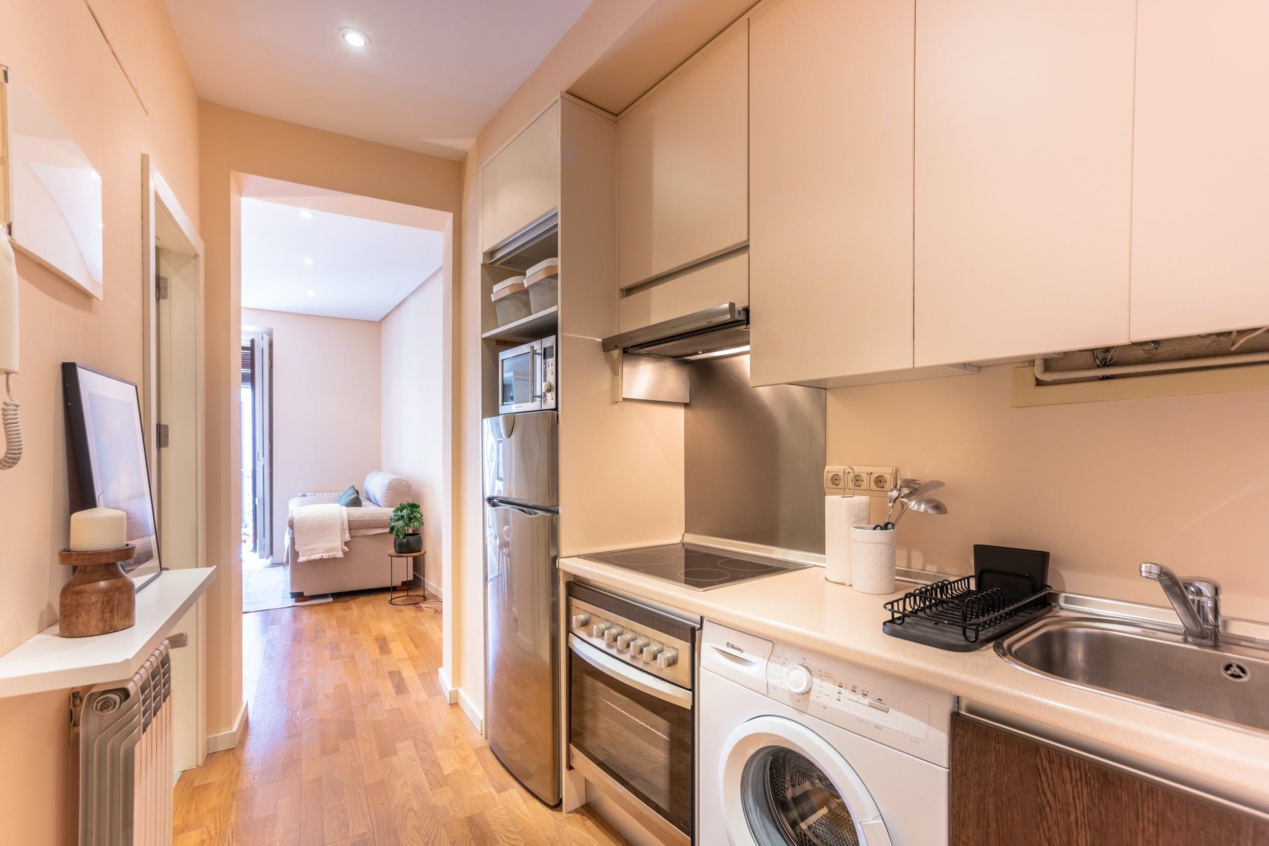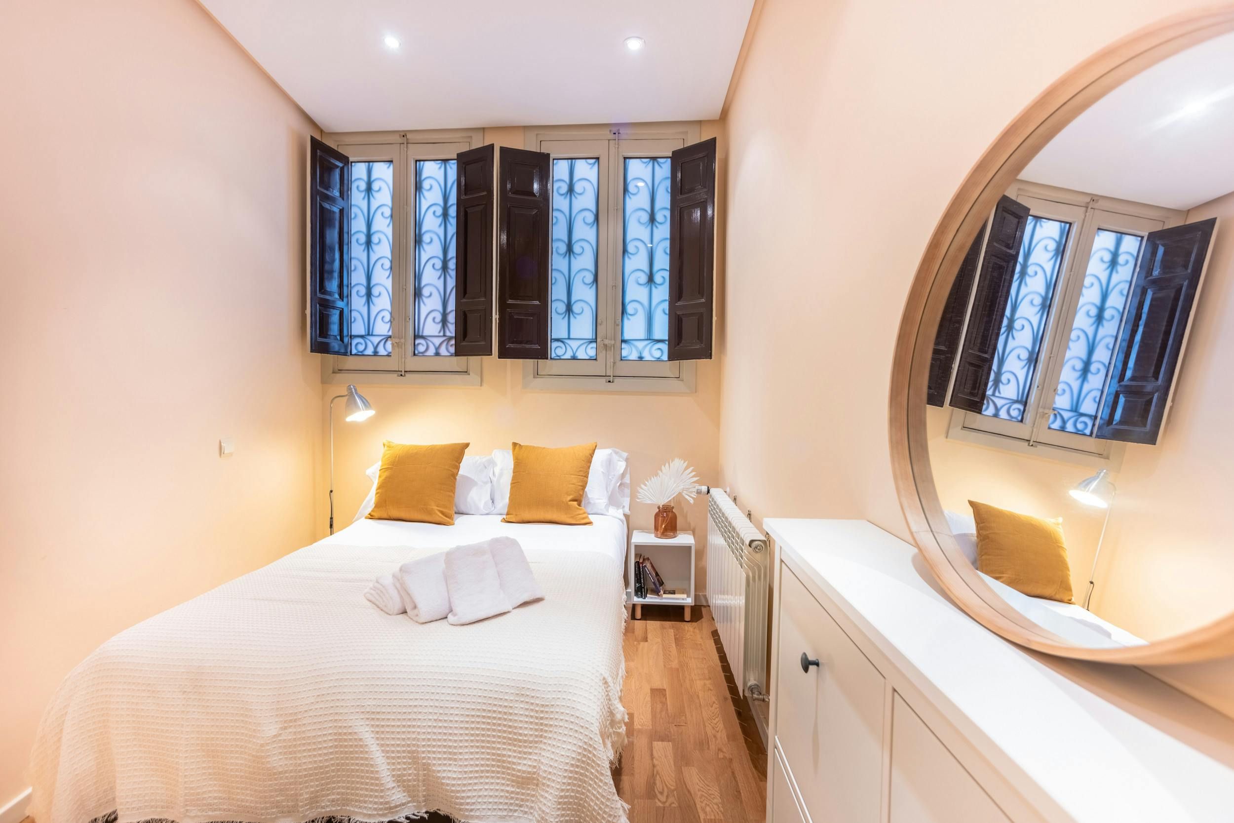 Located in the heart of Chueca, with its authentic array of bars, cafes, and plazas, this apartment is well-situated for exploring Madrid’s iconic sights. Madrid is easily explored on foot, but should you wish to hop on the metro, Noviciado and Tribunal are a few steps away. The interiors are fairly simple, though perfectly practical for a city stay. There’s a balcony for admiring the streets below, though there’s no seating out here. And while it may feel a little cramped with three guests, it’s a great option should you need flexibility.
