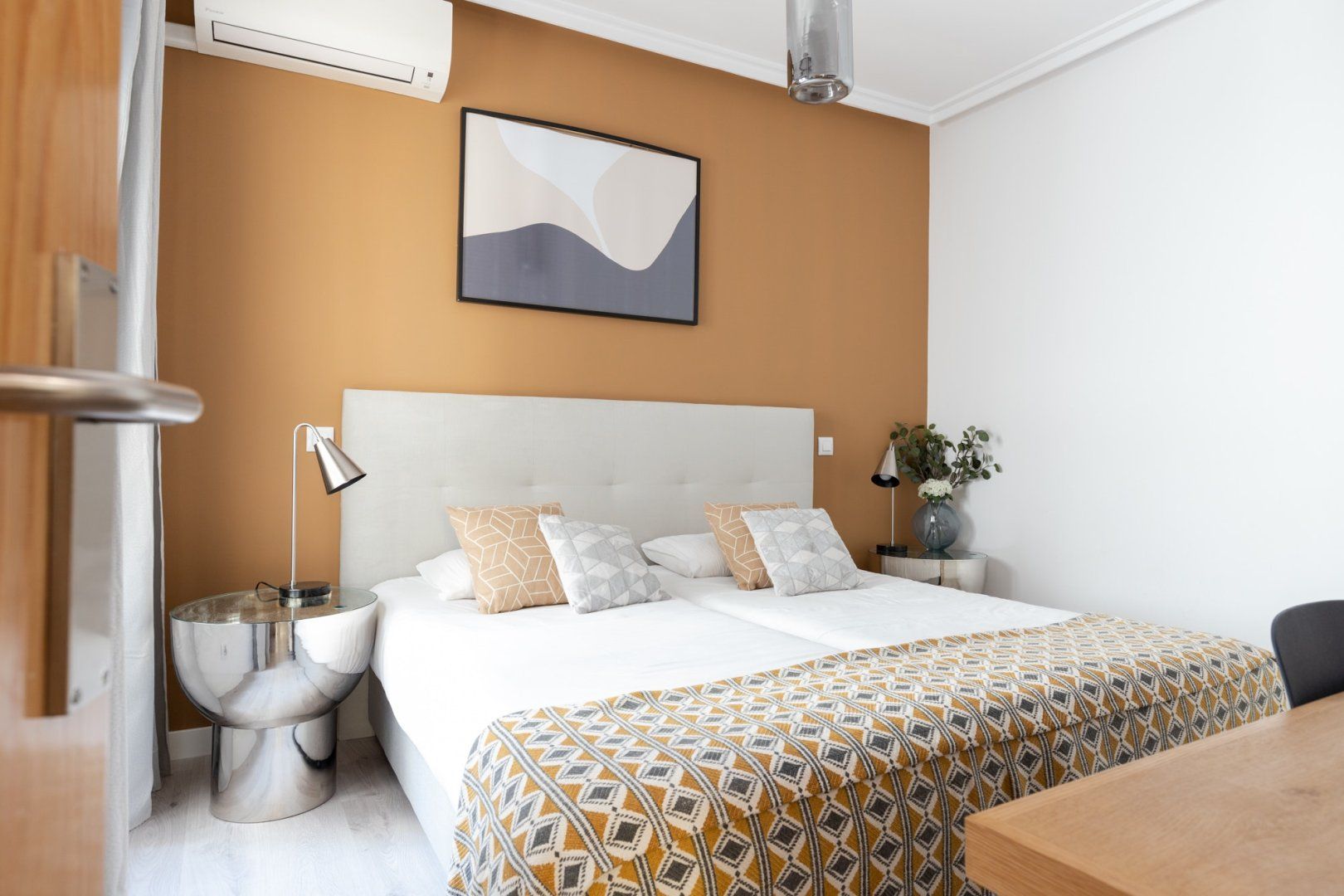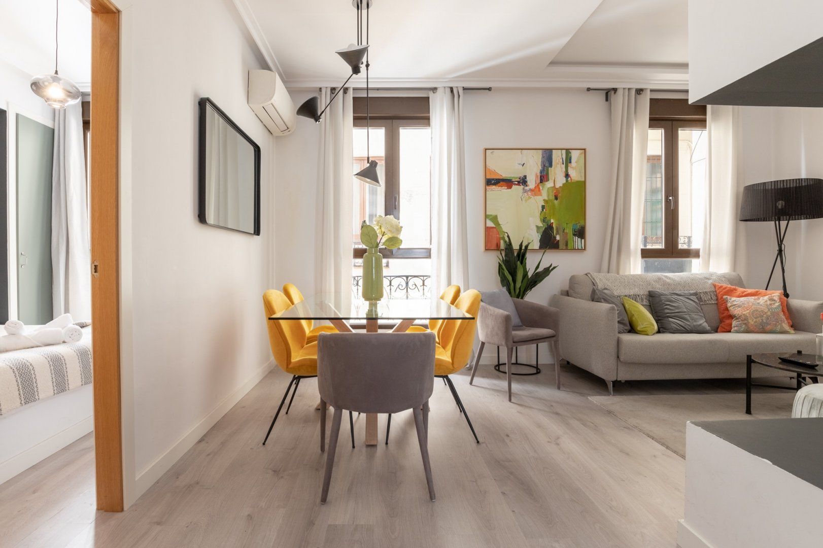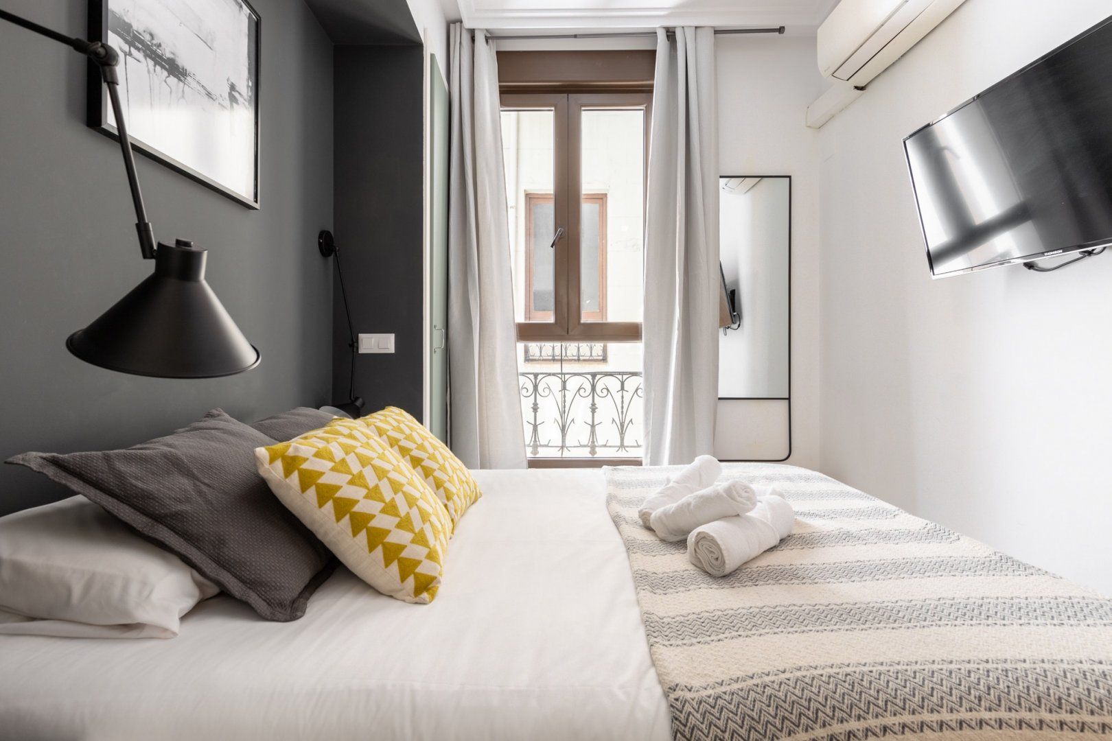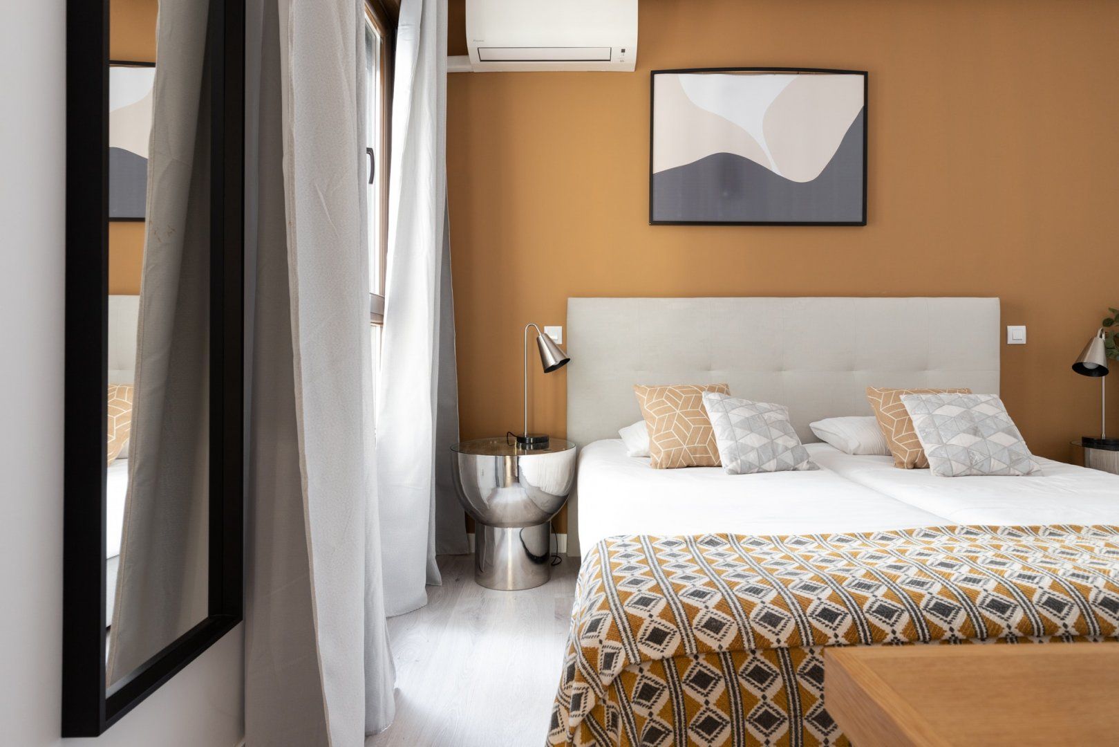 This small space realises its full potential through comforting vibrant colours and layout design. Its neutral floor is jazzed up with colourful chairs and vibrant judiciously positioned artwork, while black lights and patterns help maintain a coherent style. Located just minutes away from Madrid's most famous museums, it's a great home for those intending to immerse themselves into all the art this city has to offer.