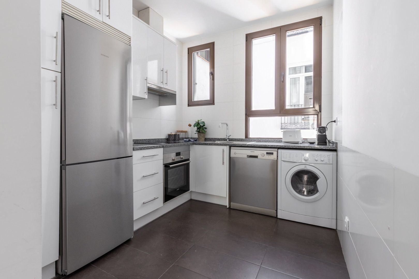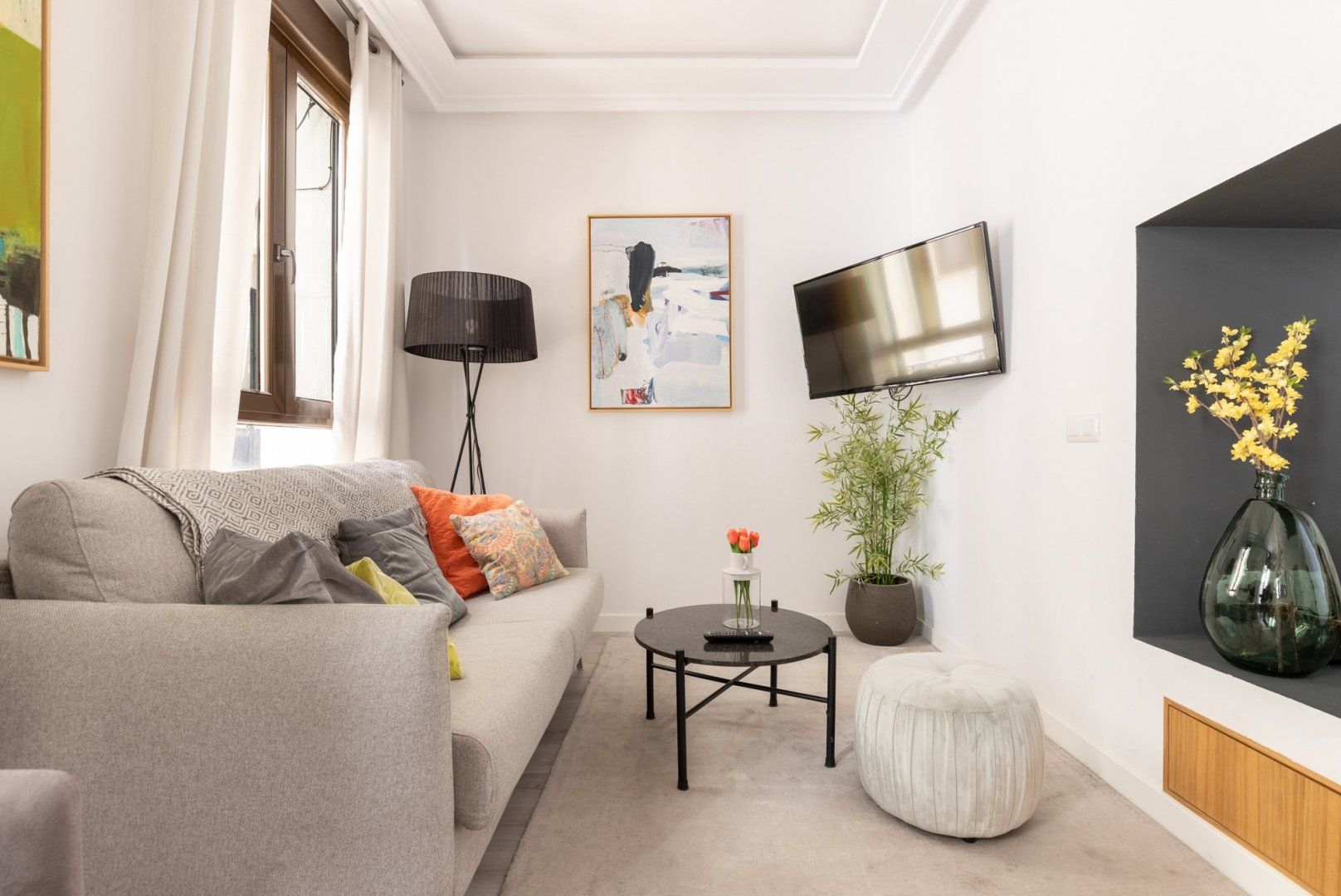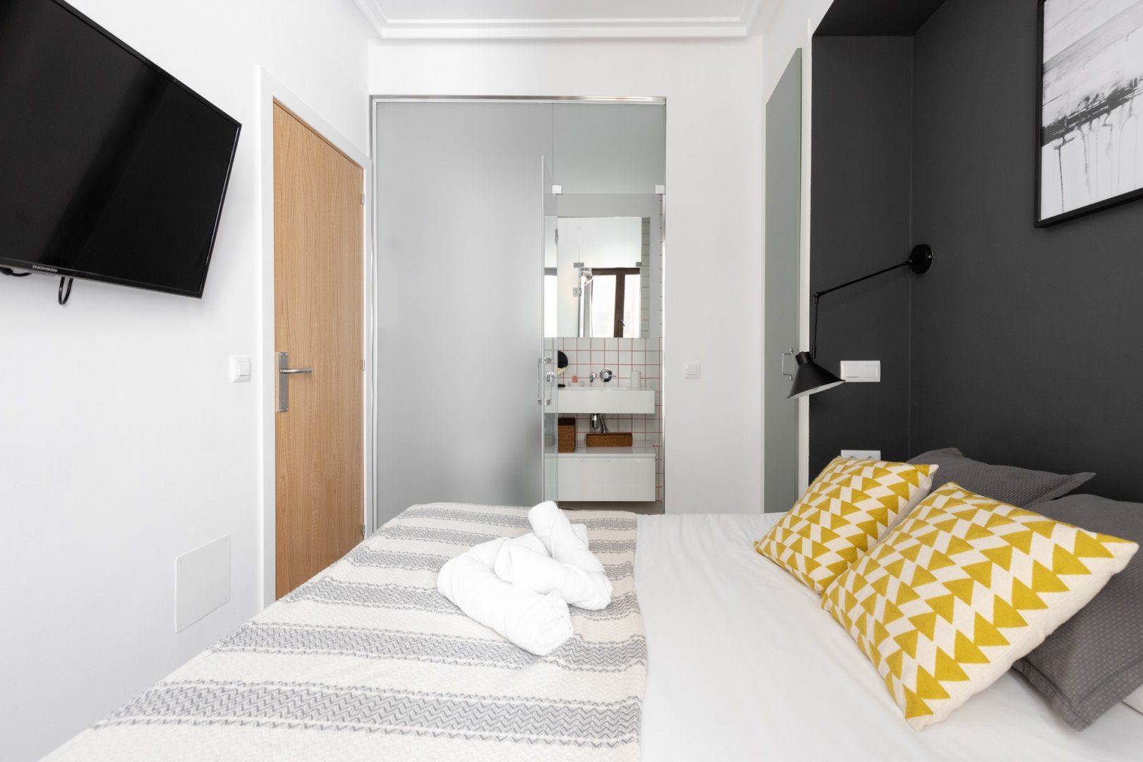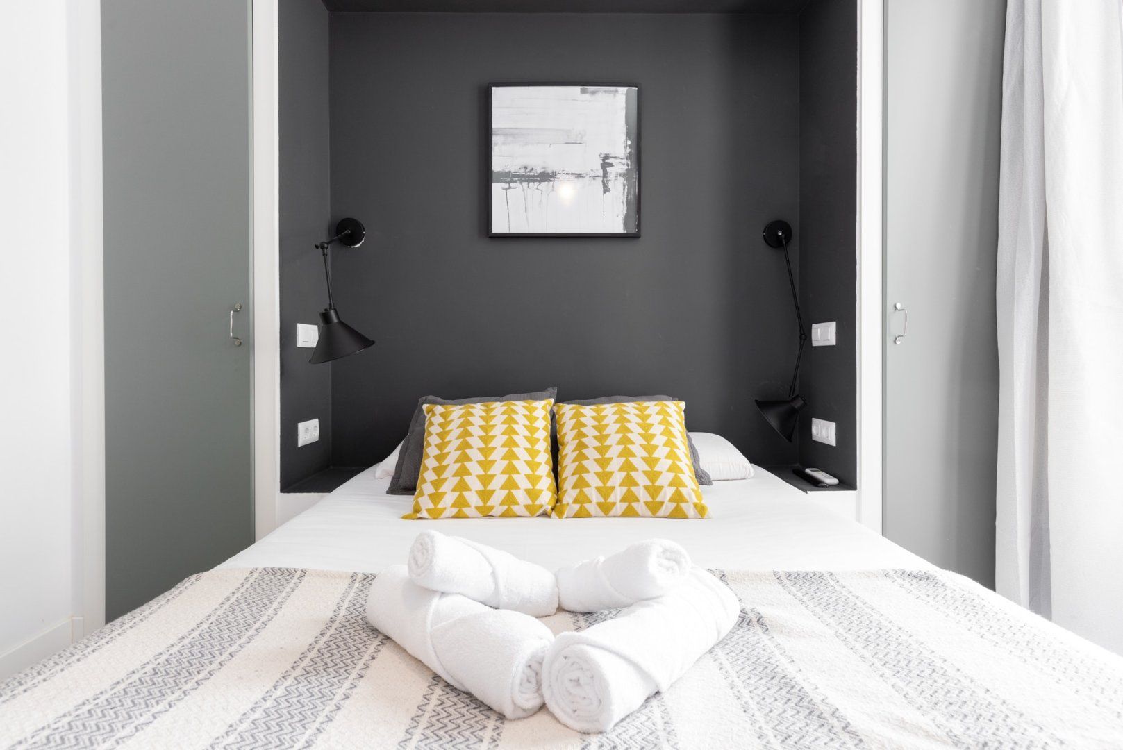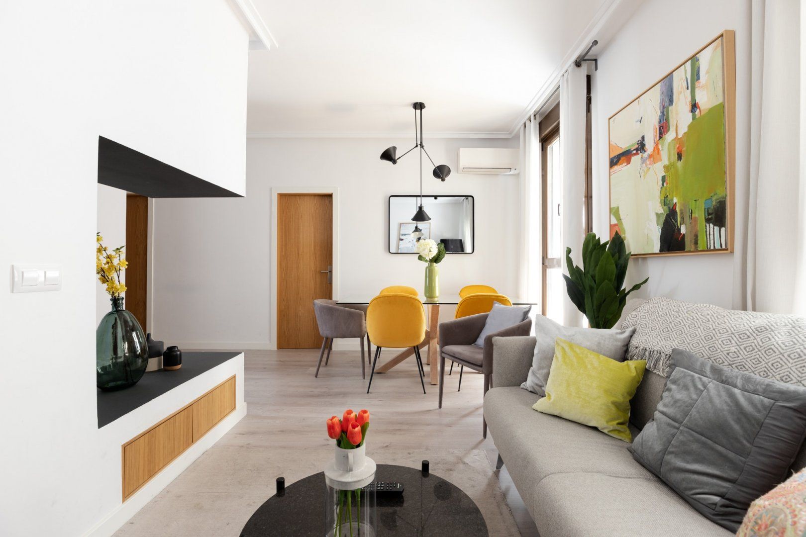 This small space realises its full potential through comforting vibrant colours and layout design. Its neutral floor is jazzed up with colourful chairs and vibrant judiciously positioned artwork, while black lights and patterns help maintain a coherent style. Located just minutes away from Madrid's most famous museums, it's a great home for those intending to immerse themselves into all the art this city has to offer.