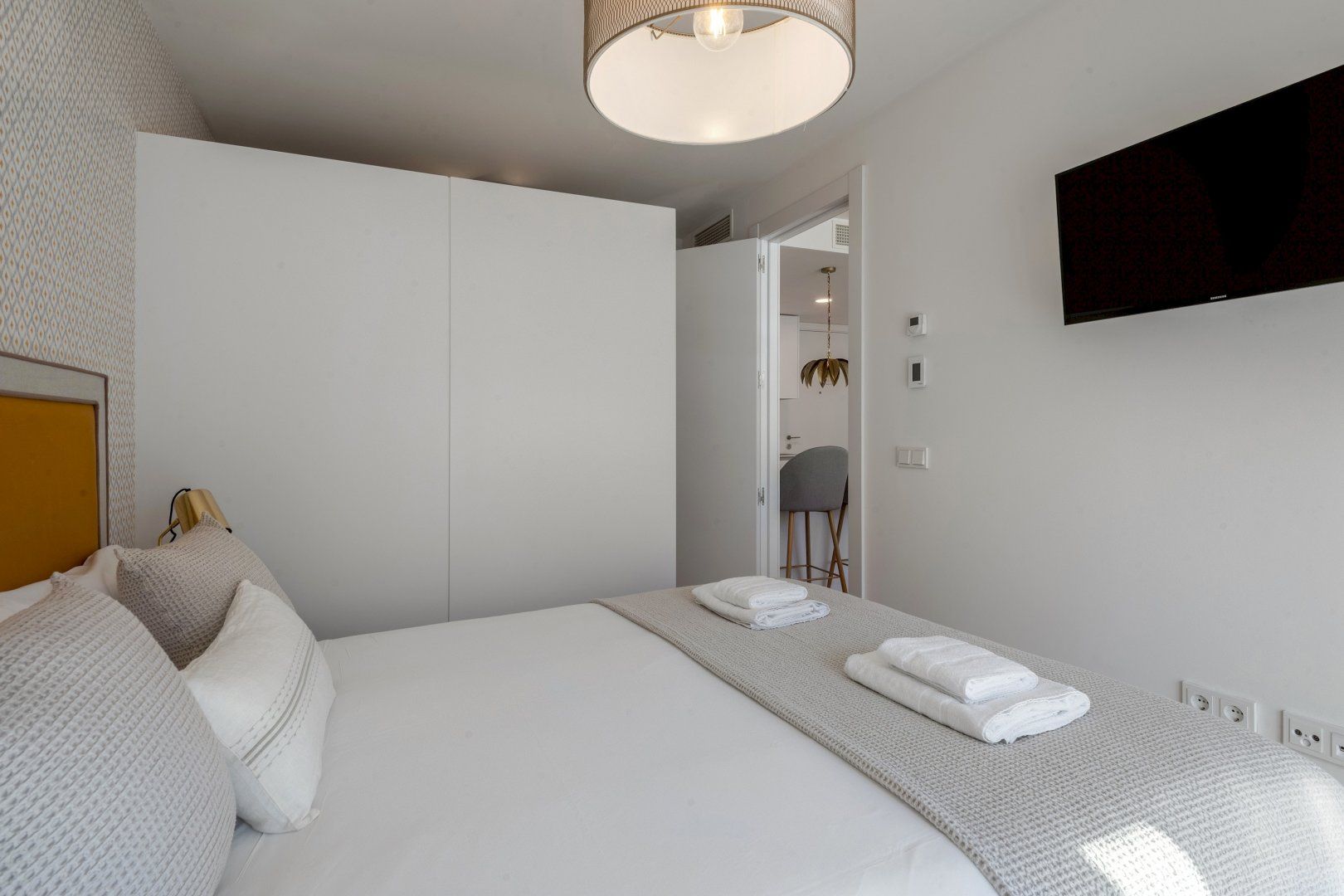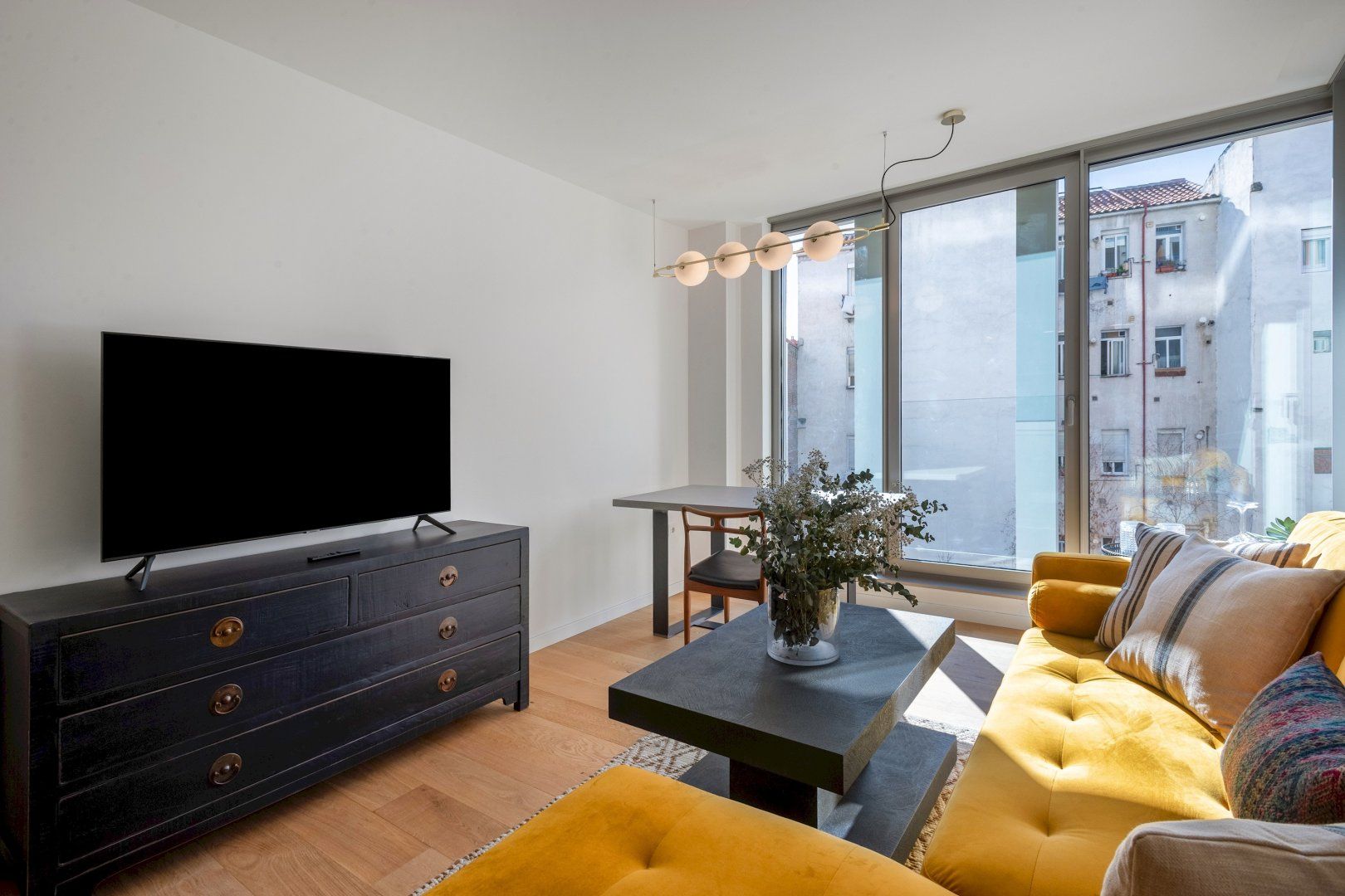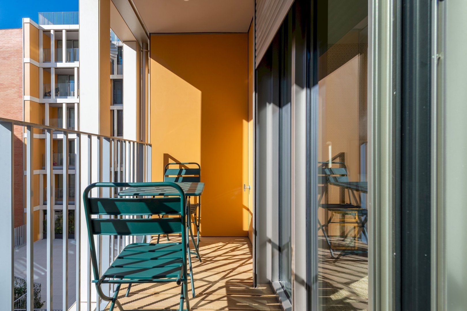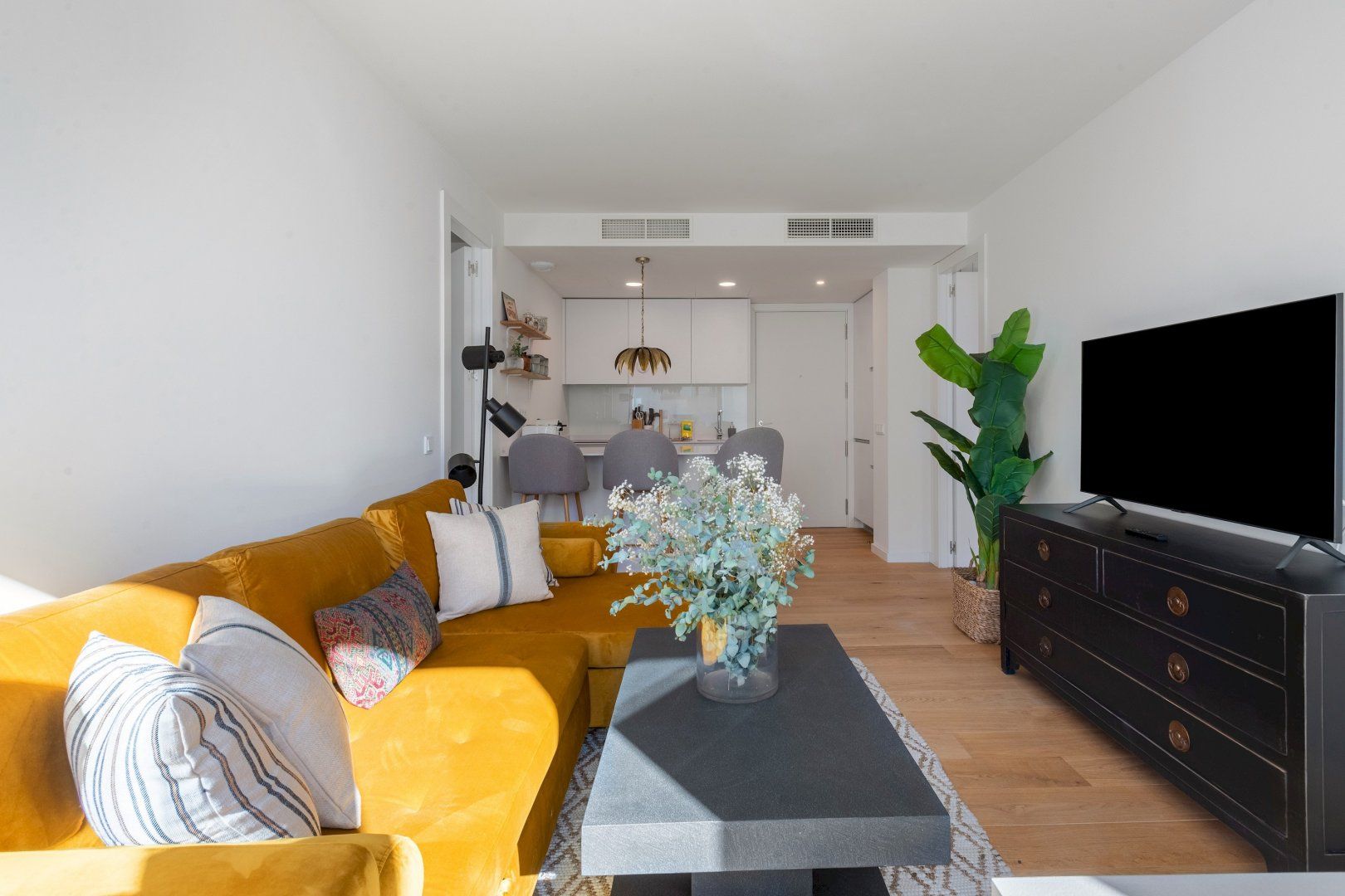 Upon entering, a bright and welcoming living area greets you with a sophisticated palette of sunny yellow and sleek black, mirroring the effortlessly cool and fashion-forward feeling of the city itself. Then of course there's that inviting furnished balcony, accessible from both bedrooms and the living area, where we've already imagined ourselves reclining with a chilled glass of Sangria in hand, gazing out over the city and deciding which tapas bar we'll be frequenting tonight. Ah, decisions, decisions.
