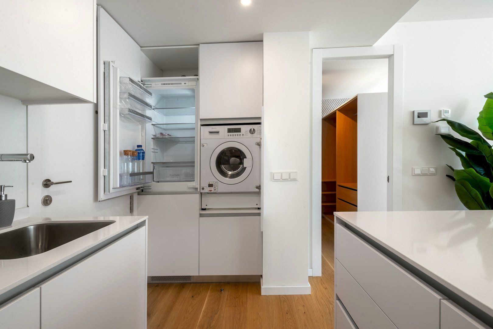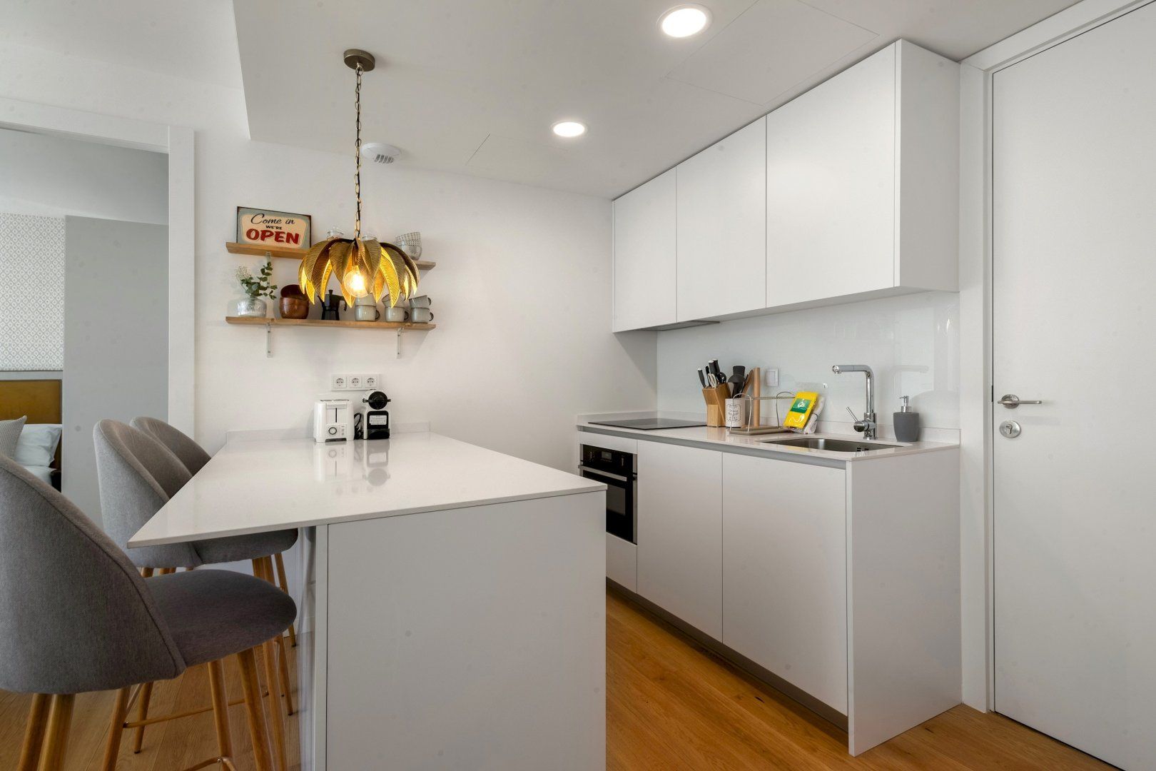 Home truths: *At full occupancy, one guest will be sleeping on the sofa bed in the living area *Though there isn't a dedicated desk here, the breakfast bar doubles up as a laptop-friendly workspace *Parking in Madrid can be tricky, so we recommend sticking to the easily accessible public transport where possible – though we think the best way to see the city is on foot *This home is in a central spot, so noise is to be expected *This building has lift access
