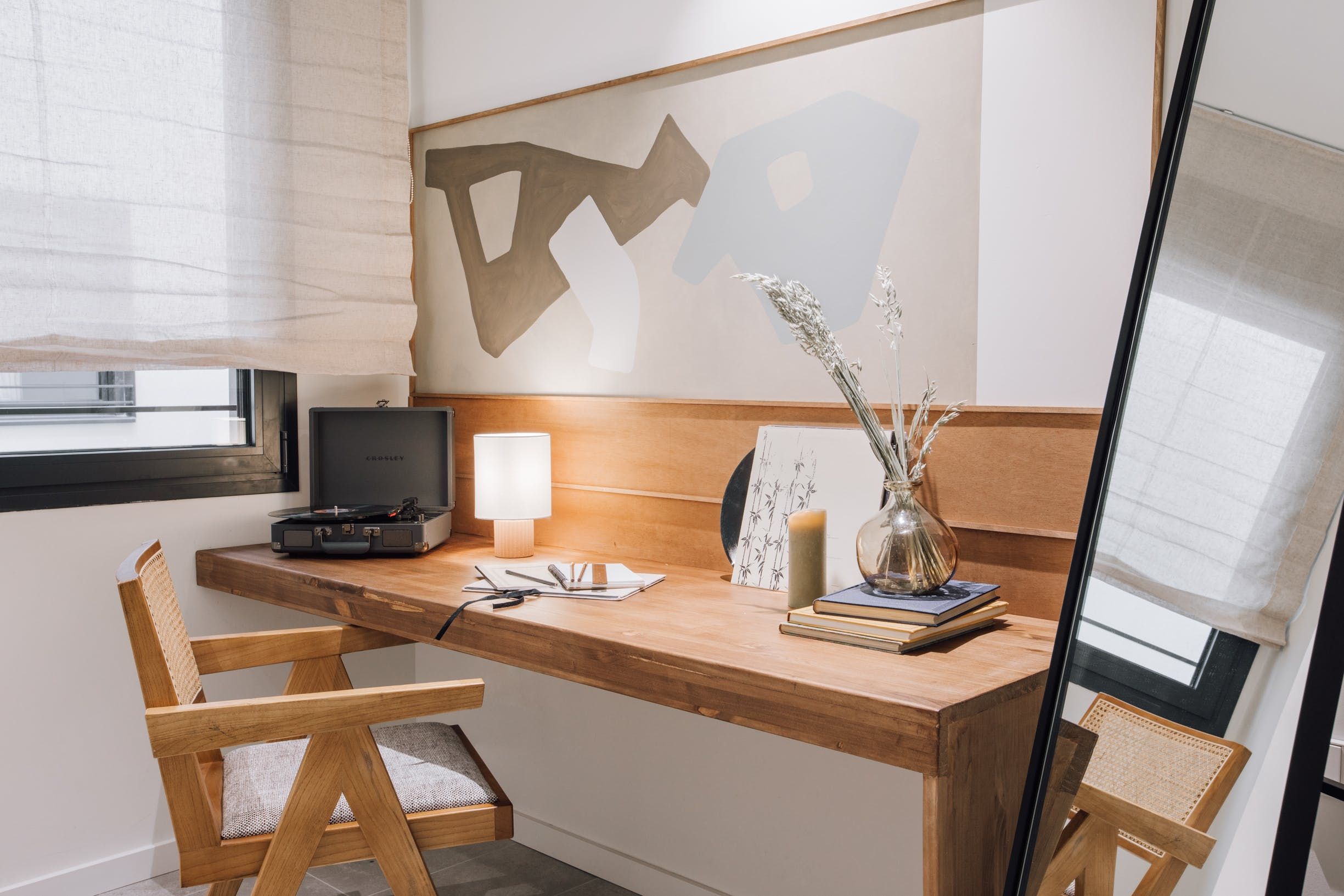 Situated in the heart of L'Esquerra de l’Eixample, this neighbourhood is a hit for cafe culture and art lovers. The apartment may be a better base for travellers seeking a lively stay in Barcelona, as you'll find gay bars and a student atmosphere within strolling distance. As for your time indoors, imagine coming together in the modern living area, which opens out to a Juliet balcony. And if there's work to do while you're here, we love that there's a home office to help you focus.