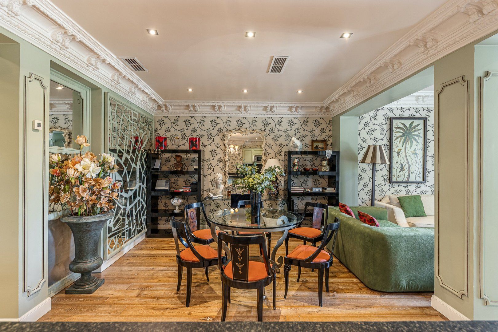 We challenge you to find a prettier apartment overlooking the Royal Palace of Madrid. This place is a real showstopper, with twin Juliet balconies opening over Plaza de Oriente Gardens. Bold, bright and just downright beautiful, it's dripping in character thanks to ornate cornice, traditional shuttered windows and classical furnishing. A riot of elegant colours and patterns, it couldn't be further from modern minimalism if it tried.