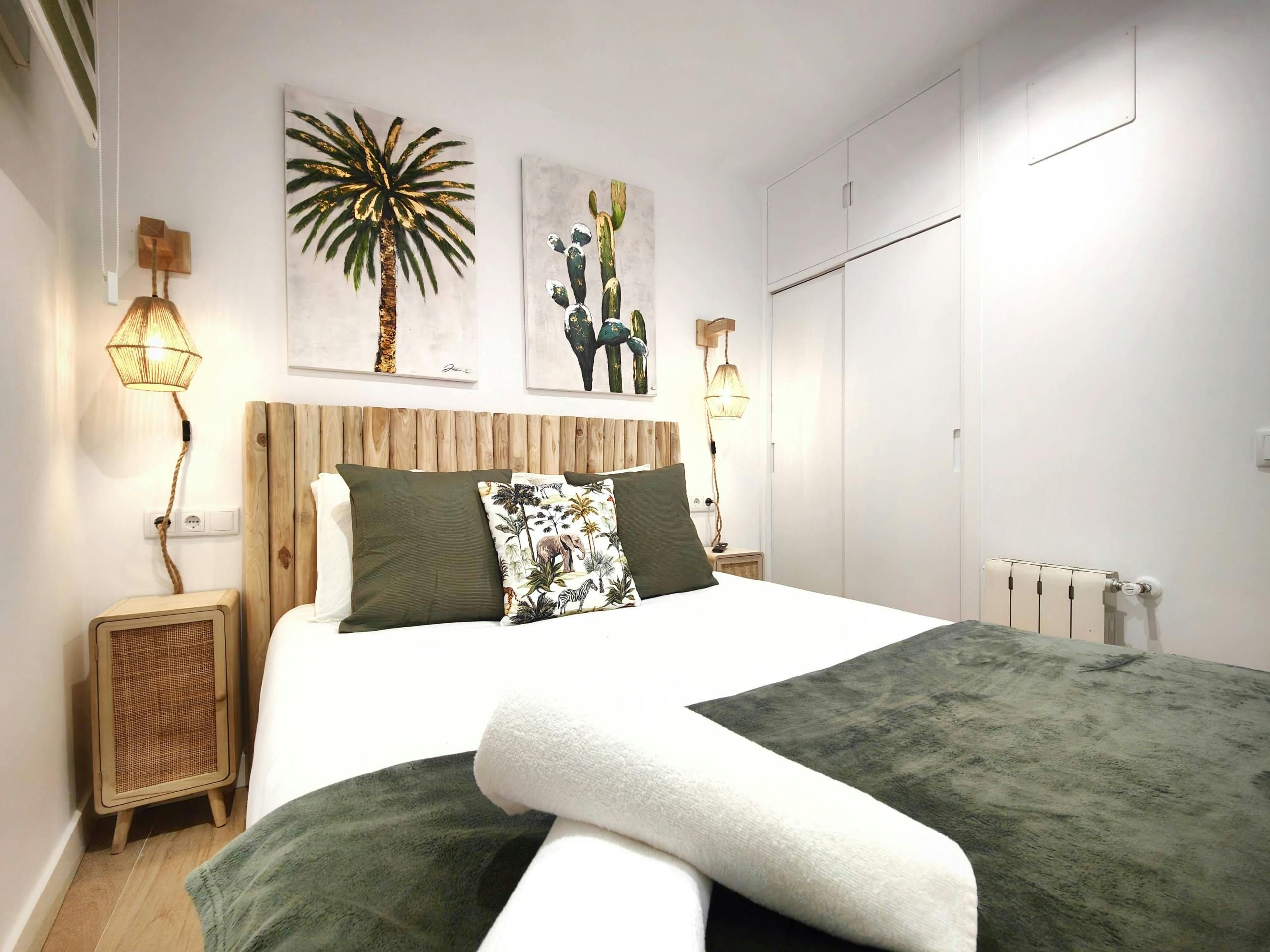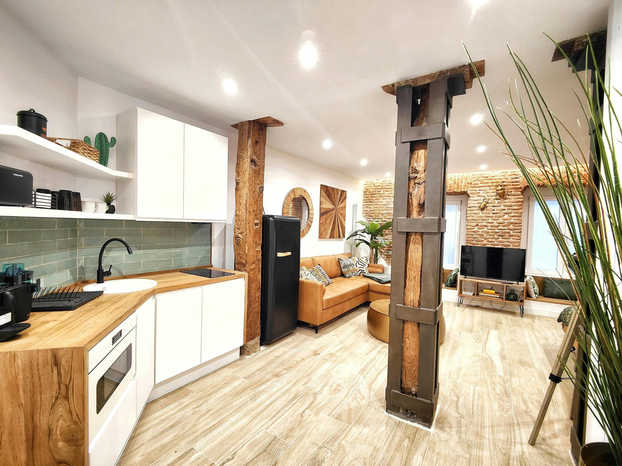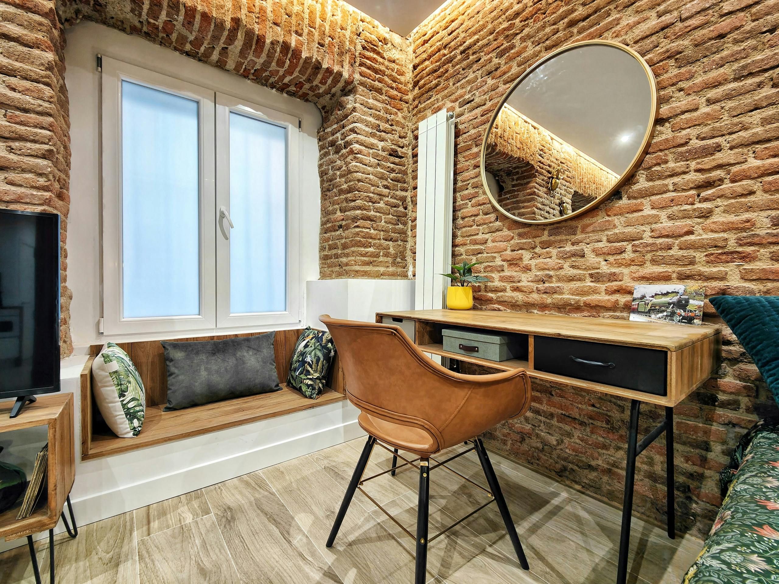 With exposed brickwork and wooden beams, this home is full of character. Granted, some of the rooms are on the cosy side and at full occupancy, two guests will sleep on the bed in the living room. That said, it’s a small price to pay for this home’s enviable location. A stroll in one direction takes you to the Prado Museum and Botanical Gardens. Head the opposite way, and you’ll reach the iconic Plaza Mayor. And for trips further afield, the nearby metro is waiting to whisk you away.