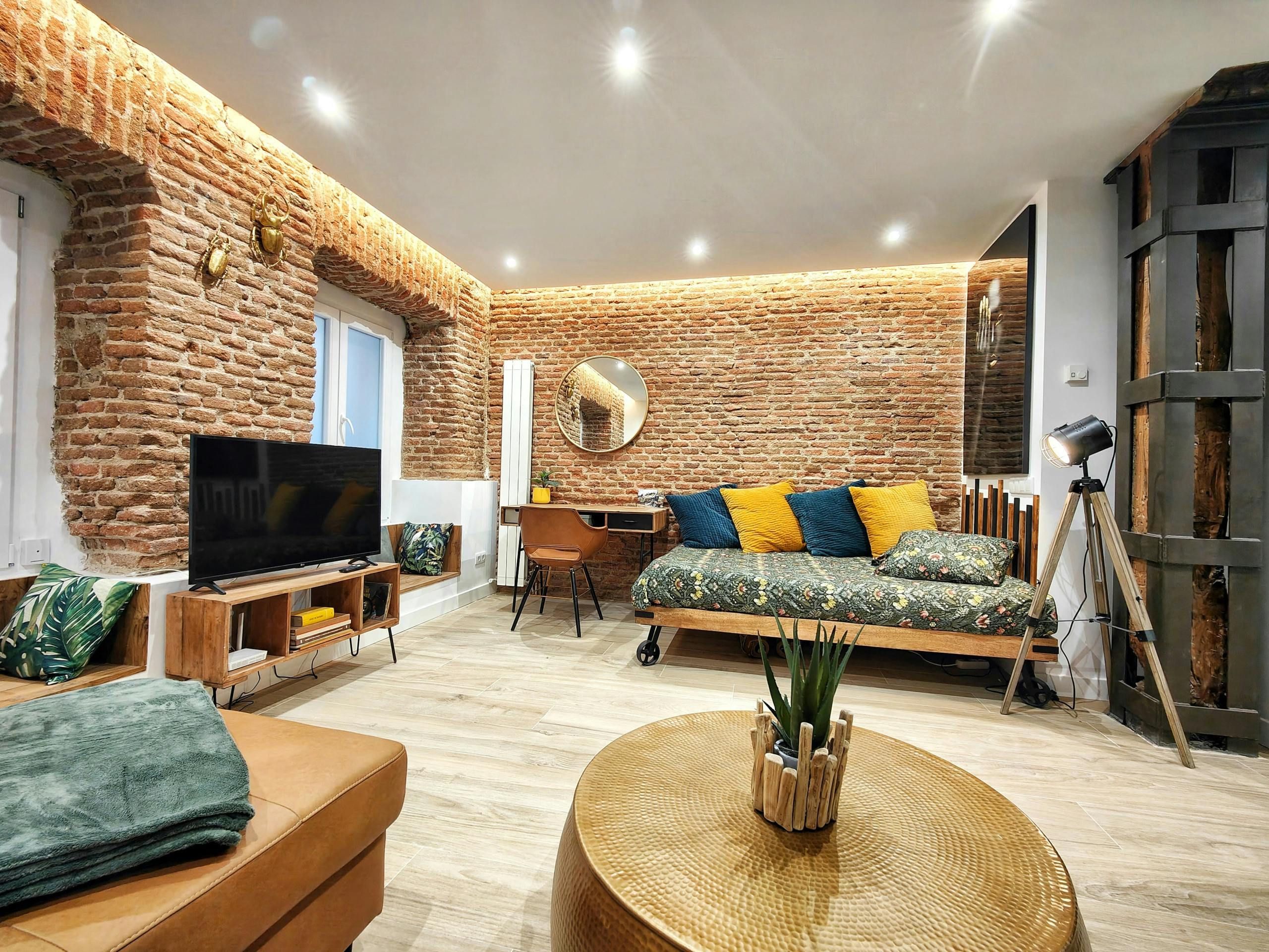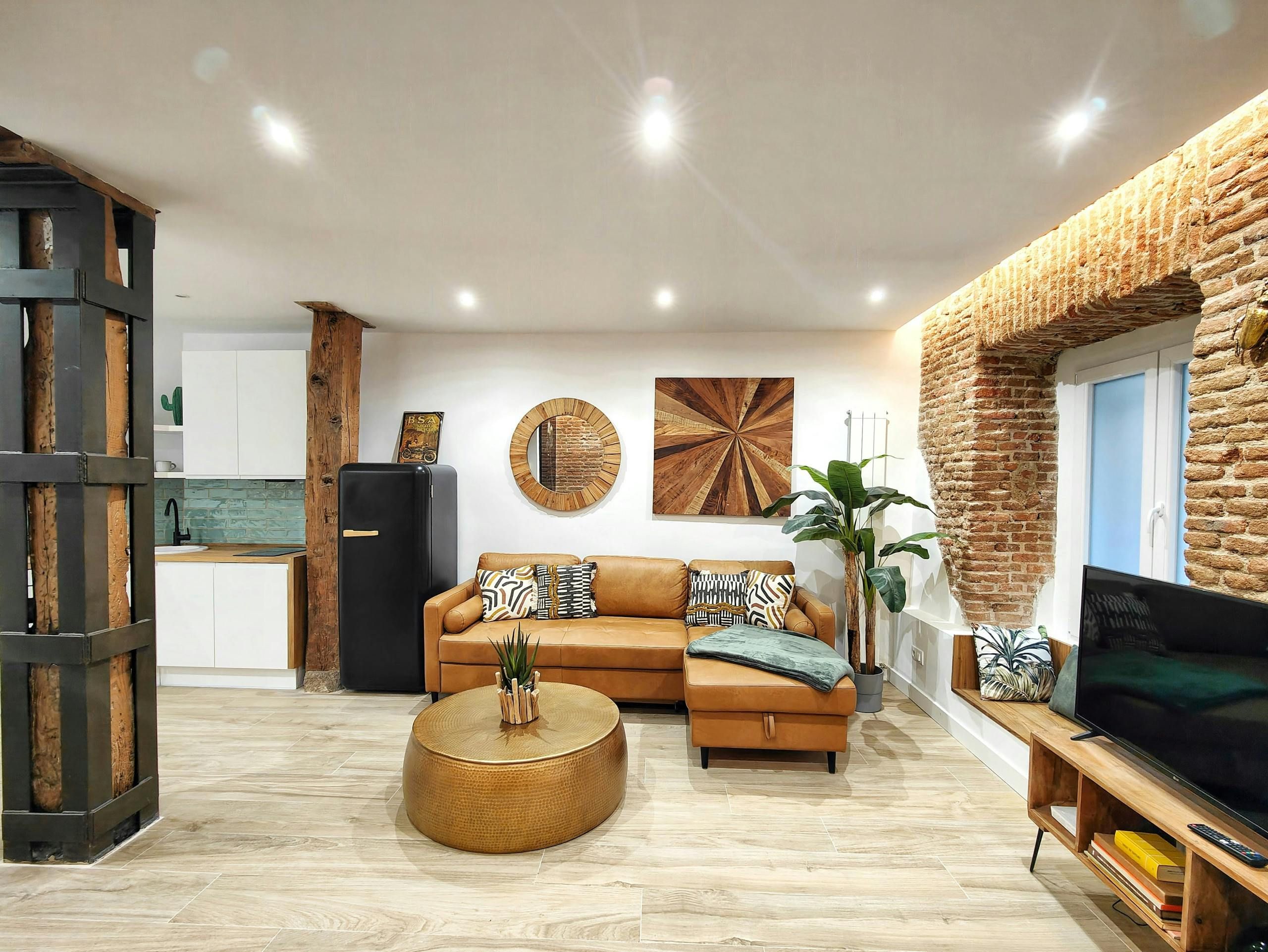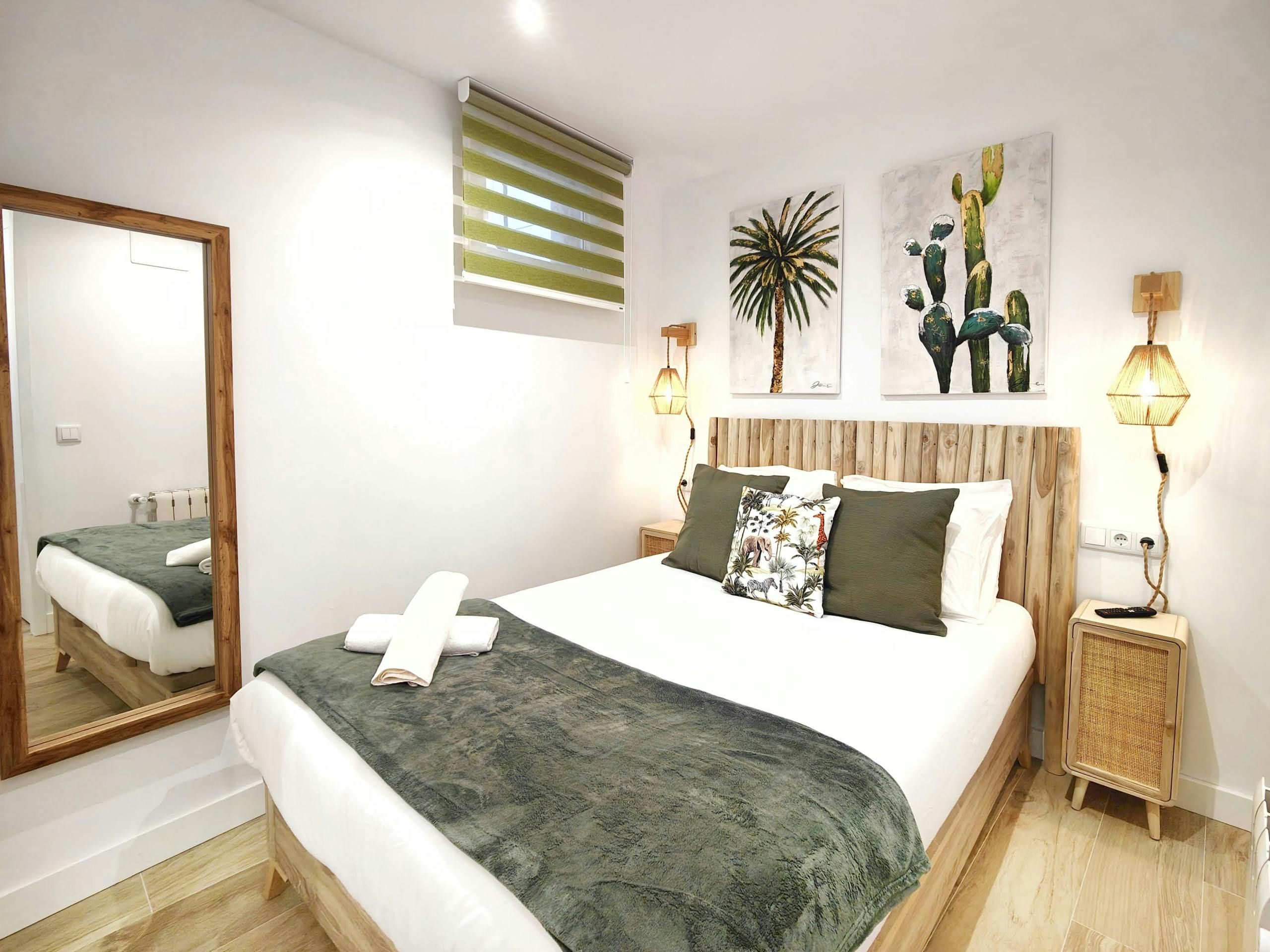 With exposed brickwork and wooden beams, this home is full of character. Granted, some of the rooms are on the cosy side and at full occupancy, two guests will sleep on the bed in the living room. That said, it’s a small price to pay for this home’s enviable location. A stroll in one direction takes you to the Prado Museum and Botanical Gardens. Head the opposite way, and you’ll reach the iconic Plaza Mayor. And for trips further afield, the nearby metro is waiting to whisk you away.