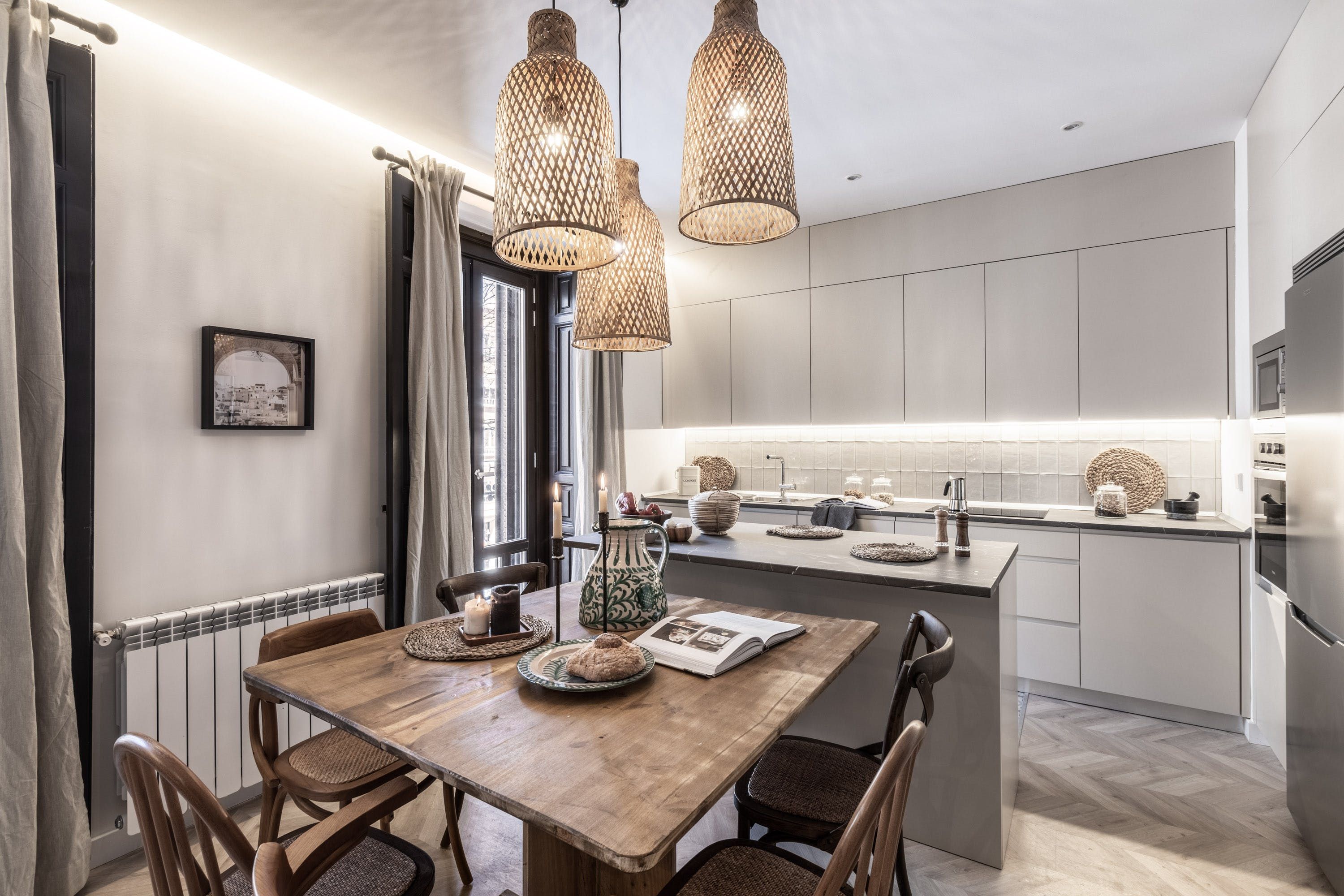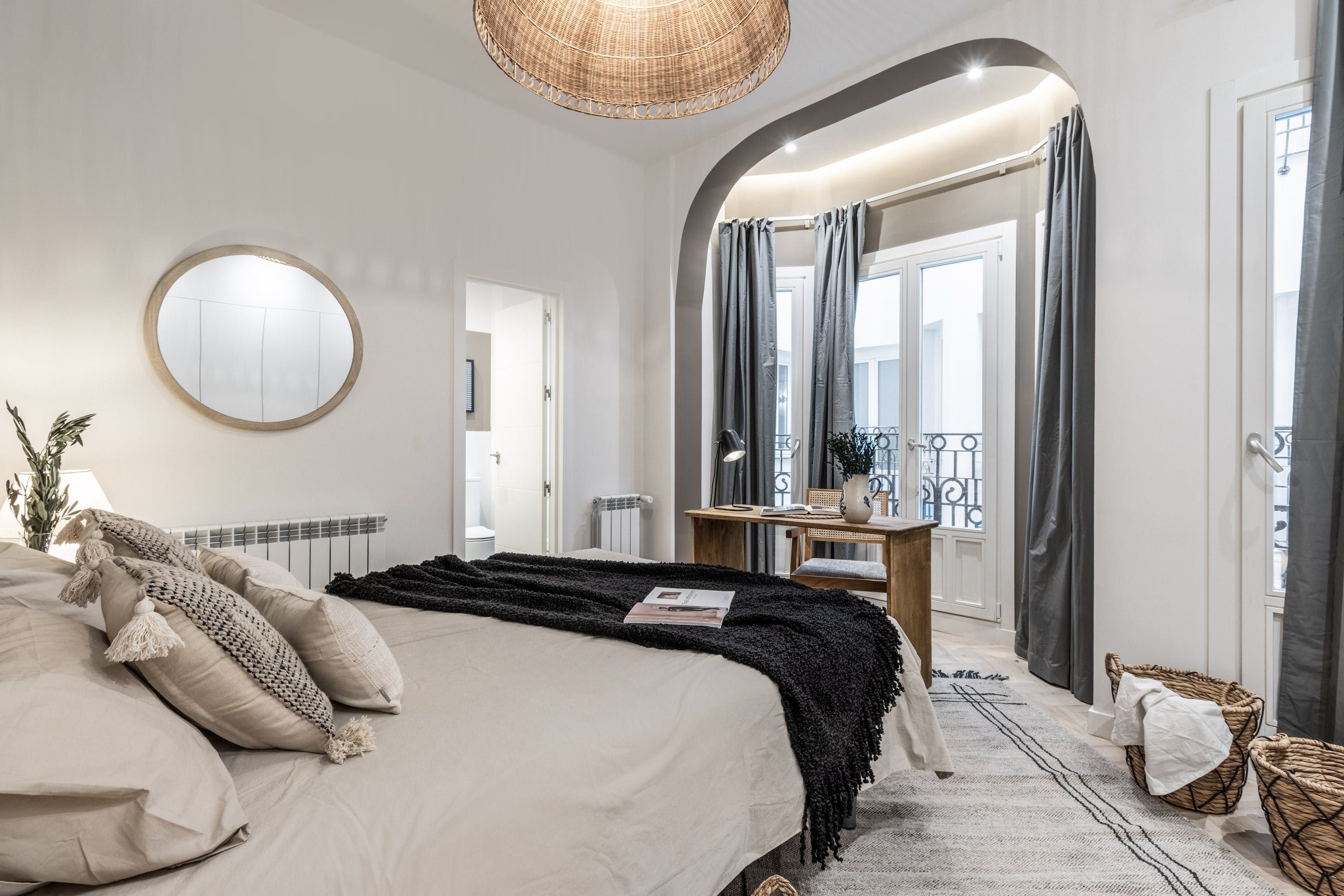 Whether you’re staying in Madrid for a short break or an extended stay, this apartment is the perfect place for a family or a group of friends to call home. If exploring the city is part of your plans, the Bilbao metro station is close by, connecting you to the Plaza Mayor and the Gran Vía. Desks and high-speed wi-fi make remote working a breeze here, and the kitchen has everything you need for cooking up a storm. We think the single bedroom is better suited for children or those with less luggage, as space is limited.