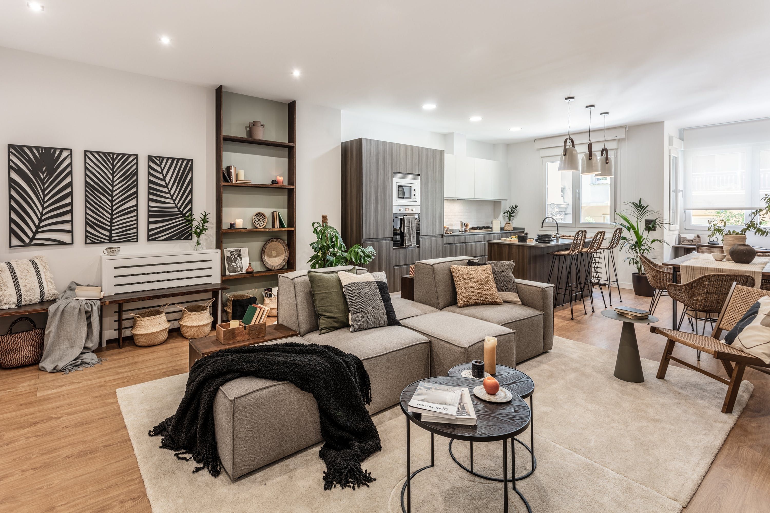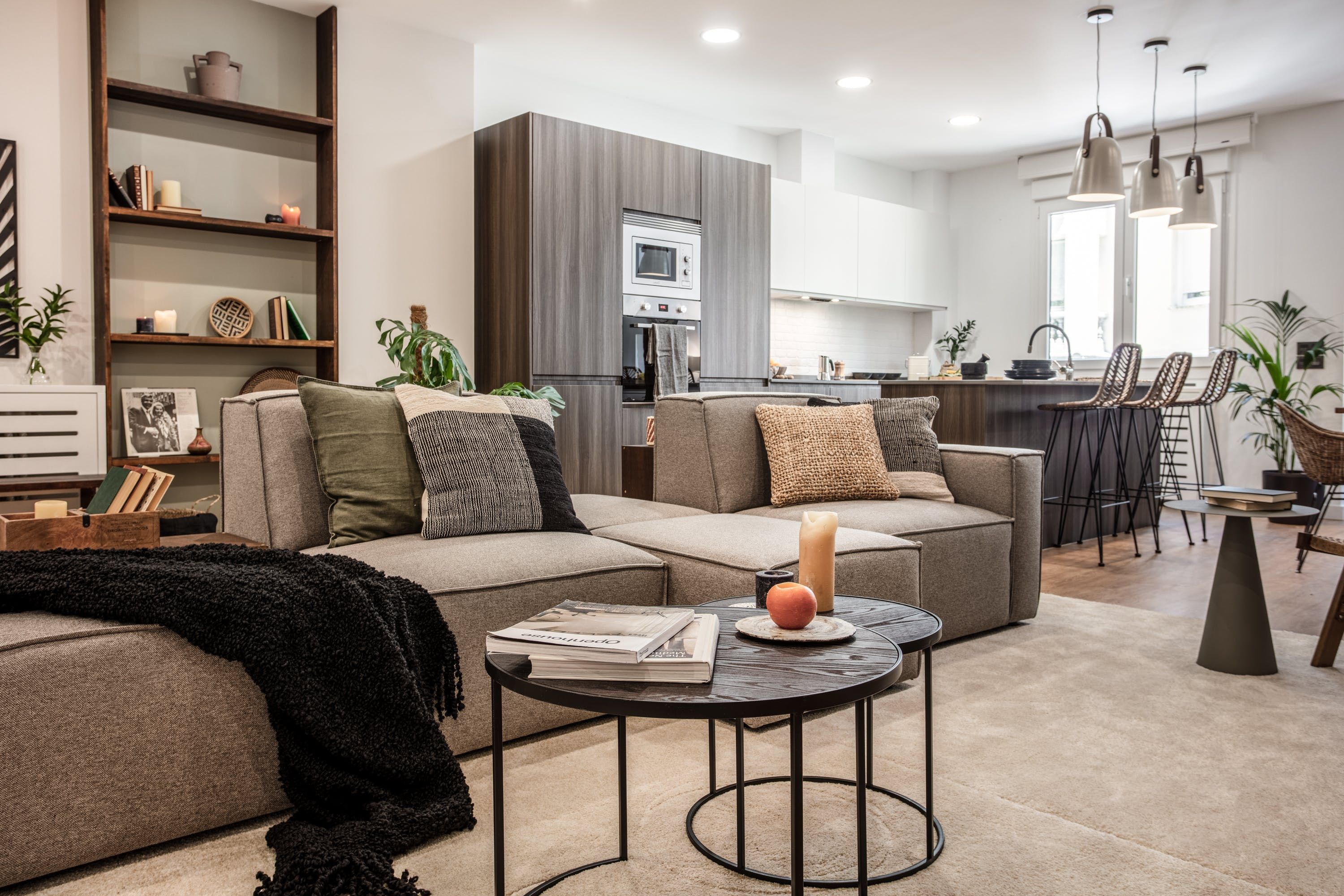 This gem in Salamanca’s upscale Goya neighbourhood is perfect for a group of friends or family. This free-flowing space is perfect for hosting and socialising – spend days with your cohort gathered around the sleek kitchen island, whipping up tapas dinners and sipping pitchers of sangria together. Spin vinyl on the record player, light some candles, and then cosy up together around the wooden dining table for a memorable feast with your loved ones. The sumptuously natural designs and modern furnishings create a relaxed ambience here – we particularly love the light-filled living room with its metal wall pieces that outline tropical plants, the textured throws and modular linen sofa where we imagine you’ll spend evenings curled up with a Netflix movie. Speaking of cosy, with a pair of neutral-hued bedrooms swathed in soothing earthy palettes and Macramé textiles, you’ll have no trouble getting a restful night’s sleep.
