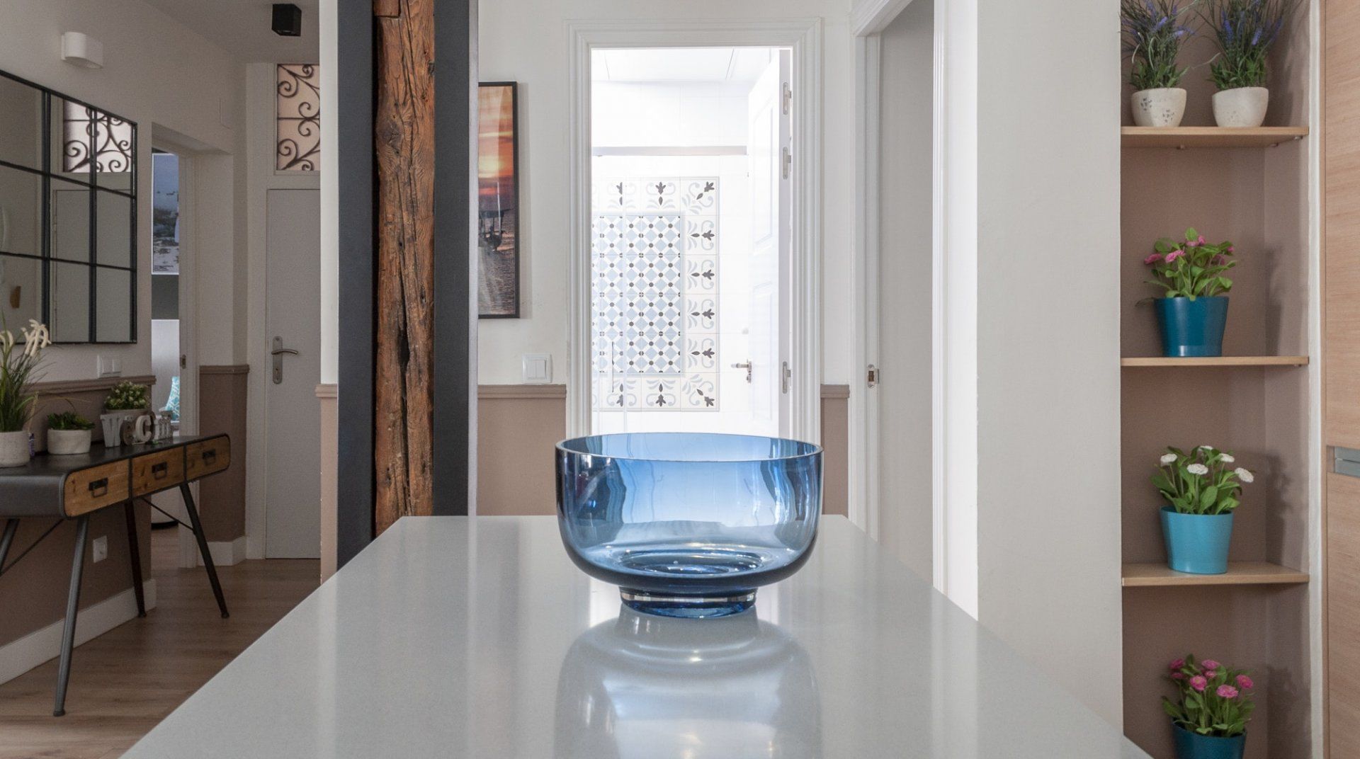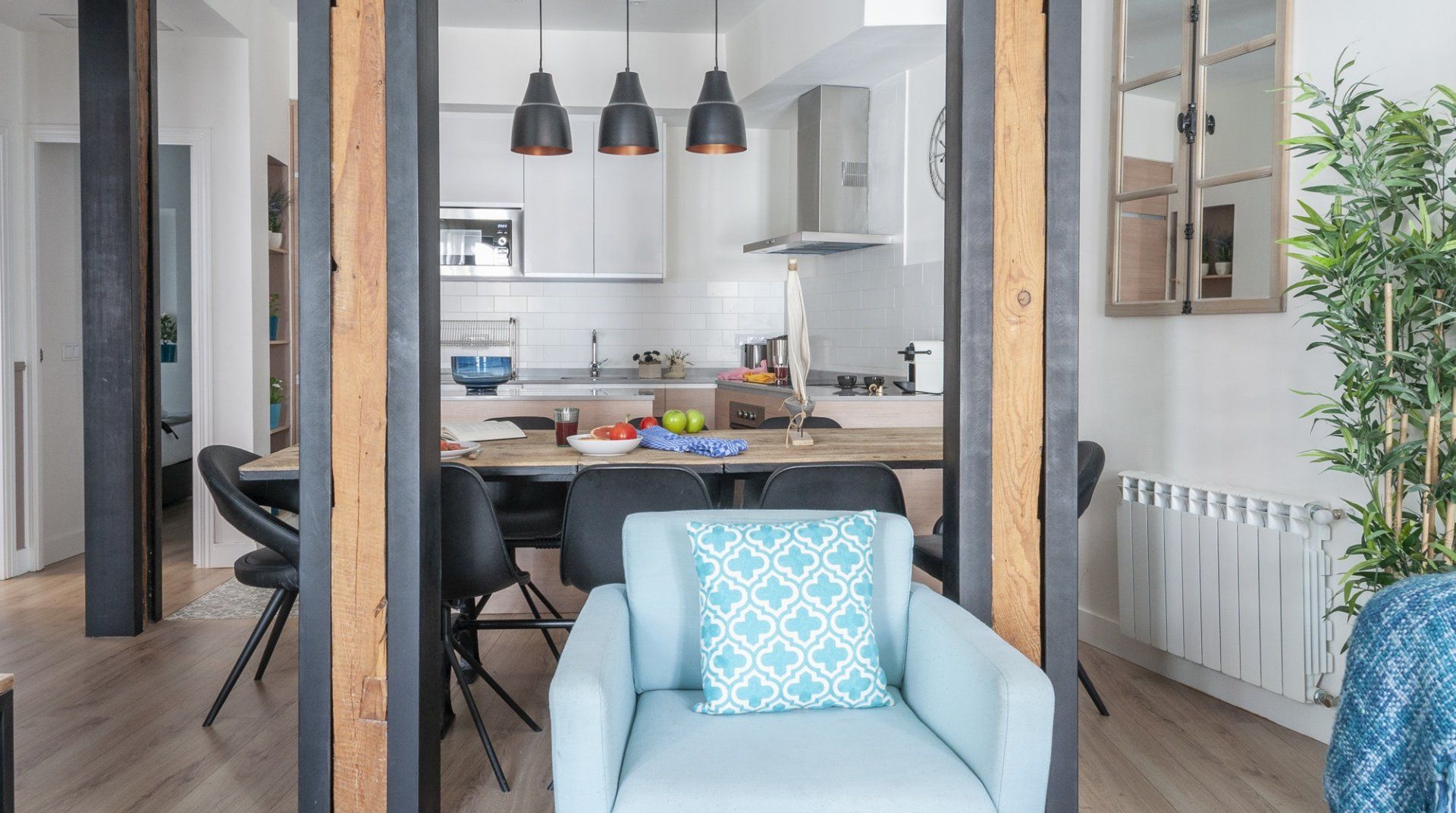 With four fantastic balconies and a huge open-plan living room, this apartment is perfect for groups of friends who want to stay in central Madrid. Designed to be social, the striking industrial wooden beams set against contemporary Scandinavian style really make the turquoise living room pop. And the American-style island in the kitchen is ideal for quick breakfasts. Besides all the main attractions nearby, you'll also find tonnes of great restaurants, bars and shops dotted around bohemian Malasaña neighbourhood.