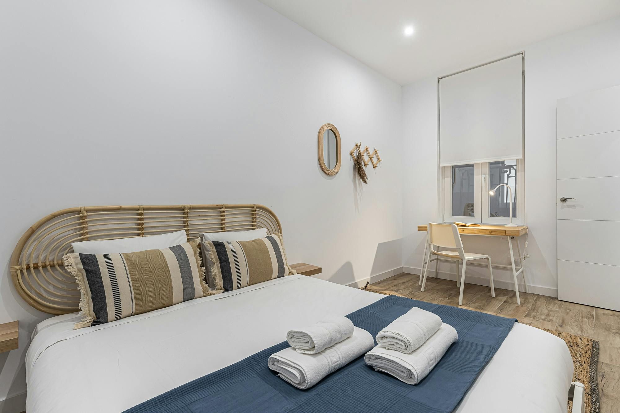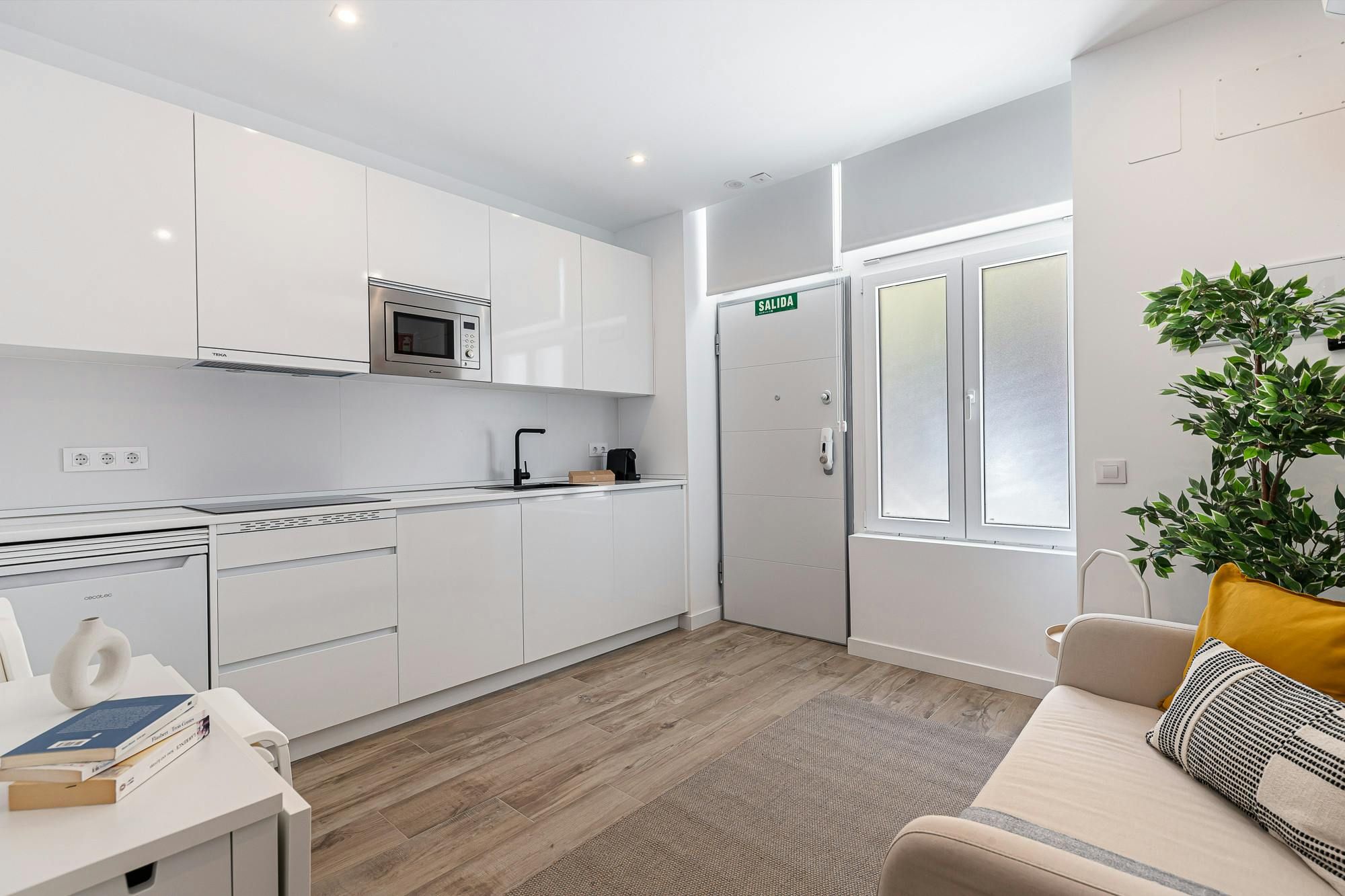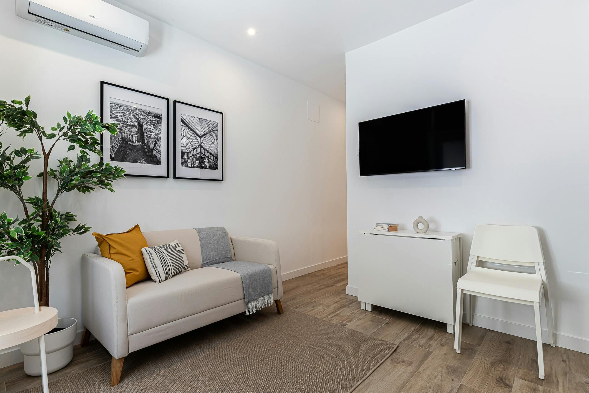 With Retiro Park a short stroll away, this apartment will appeal to lovers of green space. There’s also a whole host of attractions within walking distance including the Puerta de Alcalá and the Thyssen-Bornemisza National Museum. There are also plenty of eateries in the locale, which is convenient as this apartment’s kitchenette doesn’t have an oven (though there’s a hob and microwave). With its two bedrooms, this modern home will also appeal to families and friends alike. If, on the other hand, you’re here on business there’s a desk in the bedroom.