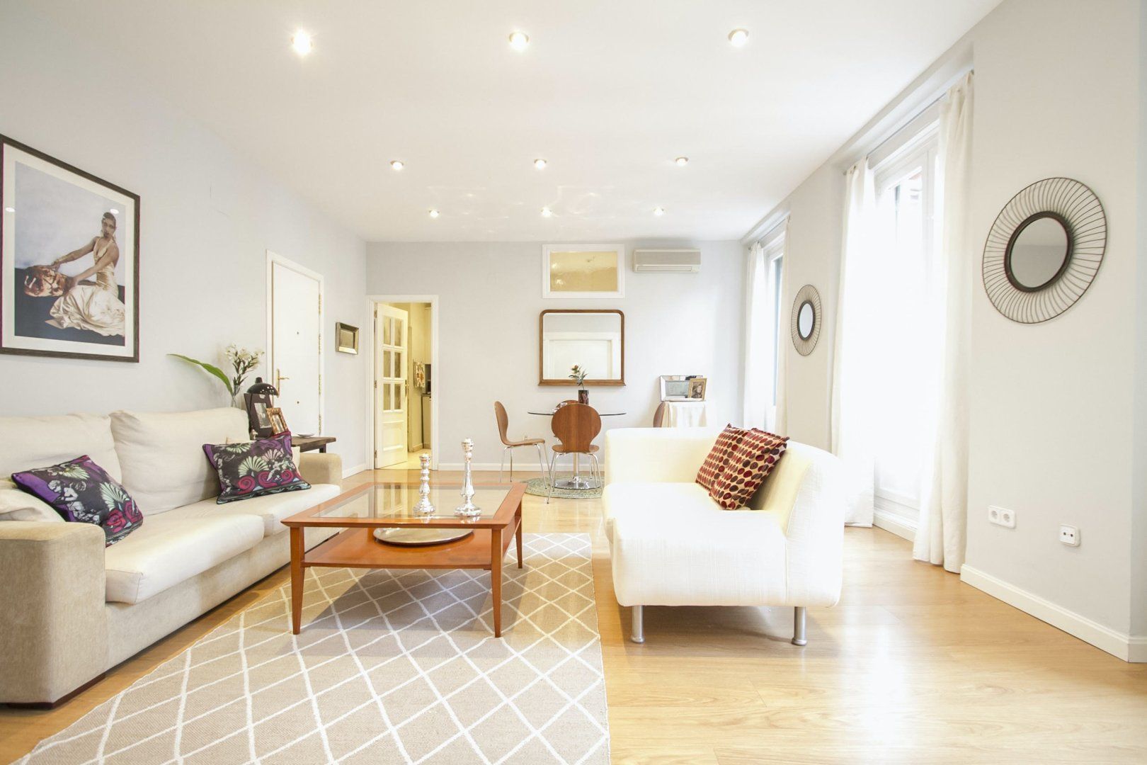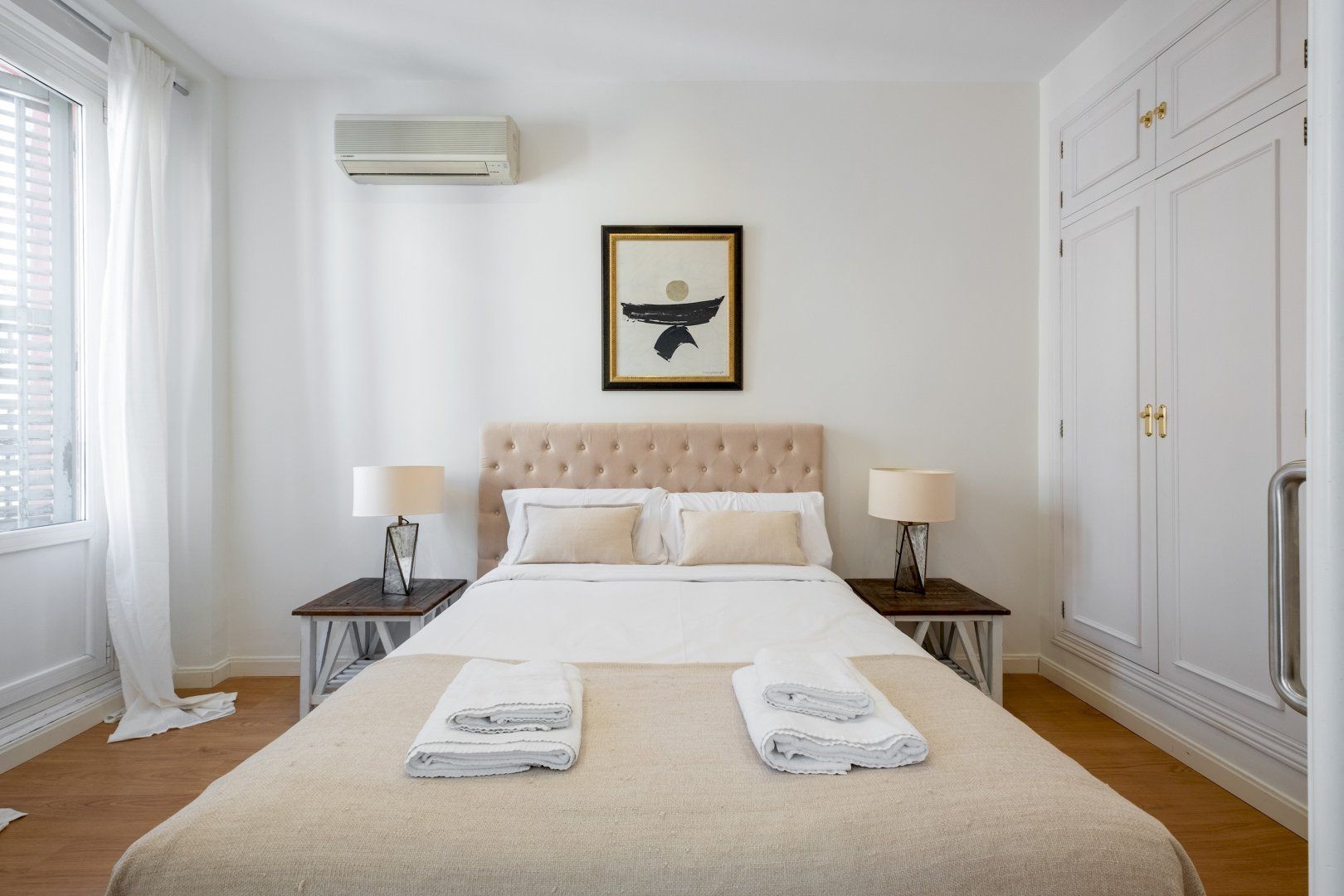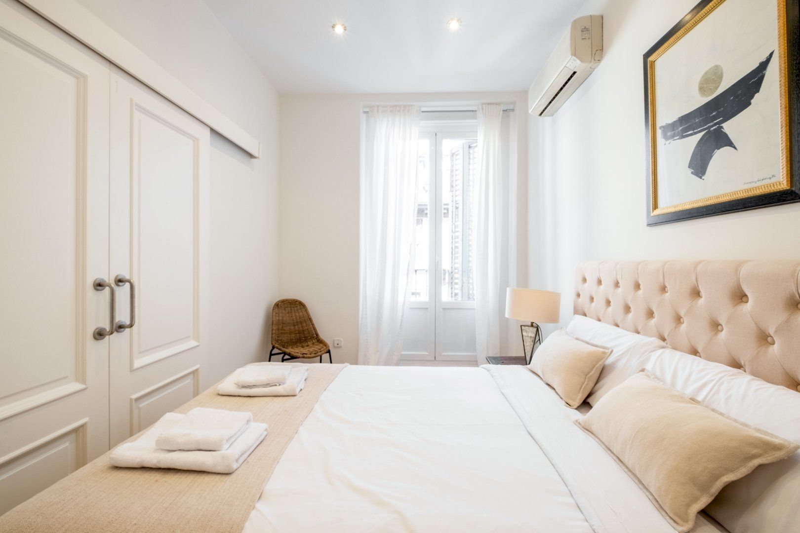 Presenting an abundance of natural light, the serene ambience here invites guests to switch off, unwind and recharge – despite the apartment's central location in Madrid. We love the soothing colour scheme of vanilla and macadamia hues in the main living space. After a day of sightseeing, shopping and sampling the local tapas delights, there's nowhere better to kick back and relax.