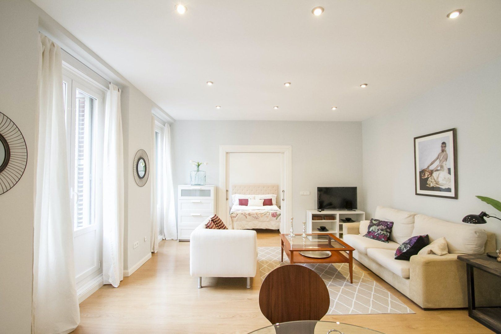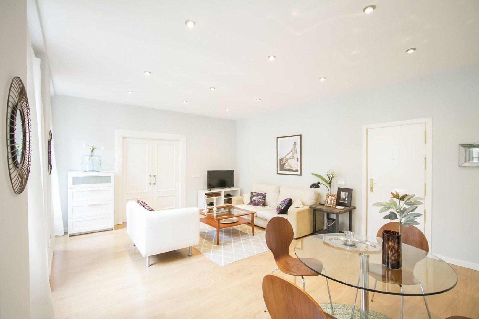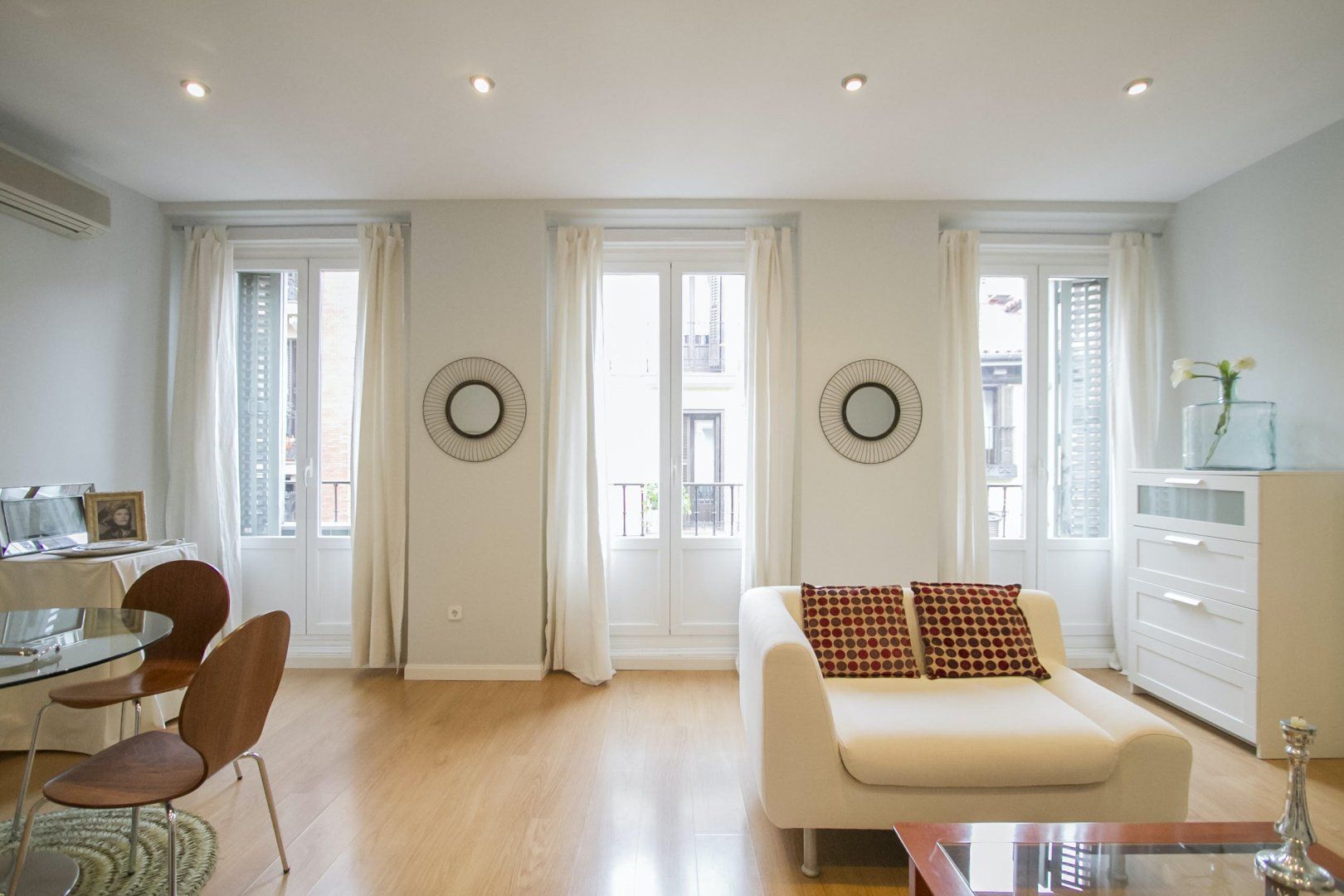 Presenting an abundance of natural light, the serene ambience here invites guests to switch off, unwind and recharge – despite the apartment's central location in Madrid. We love the soothing colour scheme of vanilla and macadamia hues in the main living space. After a day of sightseeing, shopping and sampling the local tapas delights, there's nowhere better to kick back and relax.