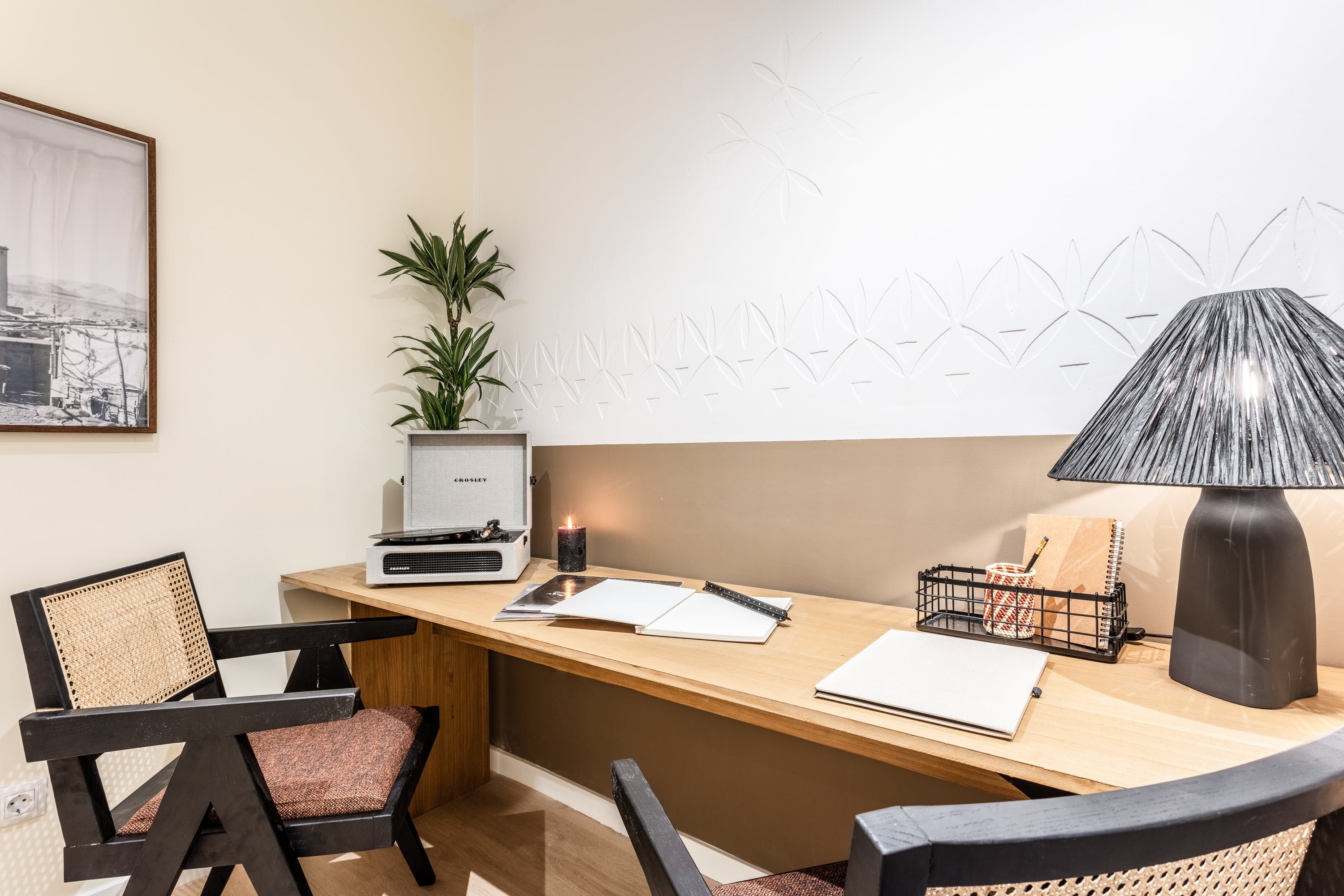 Watch the trees swaying just outside from the large arched windows in the living area before making yourself comfortable on the sofa with a glass of Spanish wine. The dining table here beckons celebratory tapas-inspired meals cooked up in the sleek kitchen, while the separate office space is ideal for those needing to catch up on work and emails. With a pair of pared-back bedrooms dressed in soft throws and soothing earthy palettes, you’ll have no trouble getting a good night’s sleep with wake-ups made all the more enticing thanks to the bathrooms’ rainfall showers.