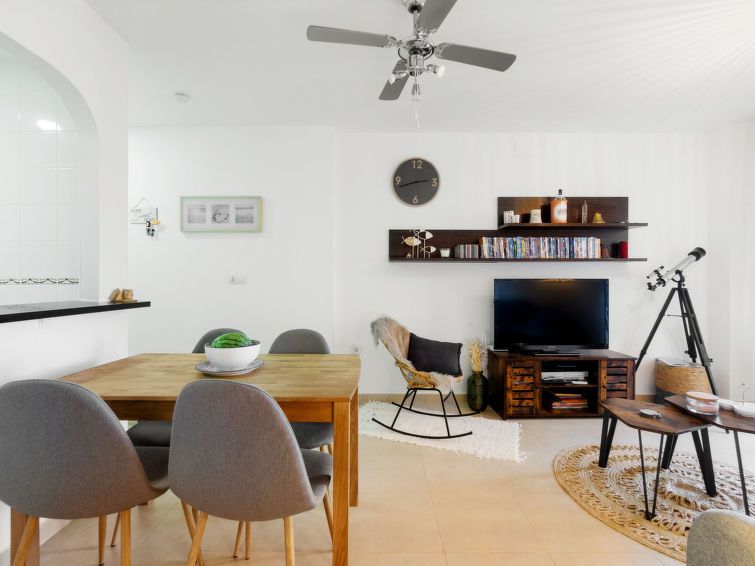 "El Pinar de San Gines", 3-room apartment 48 m2 on 3rd floor. Practical and comfortable furnishings: living/dining room with dining table, digital TV, flat screen, DVD, air conditioning and forced-air heating. Exit to the balcony. 1 room with 1 french bed (140 cm, length 200 cm), air conditioning, fan and forced-air heating.