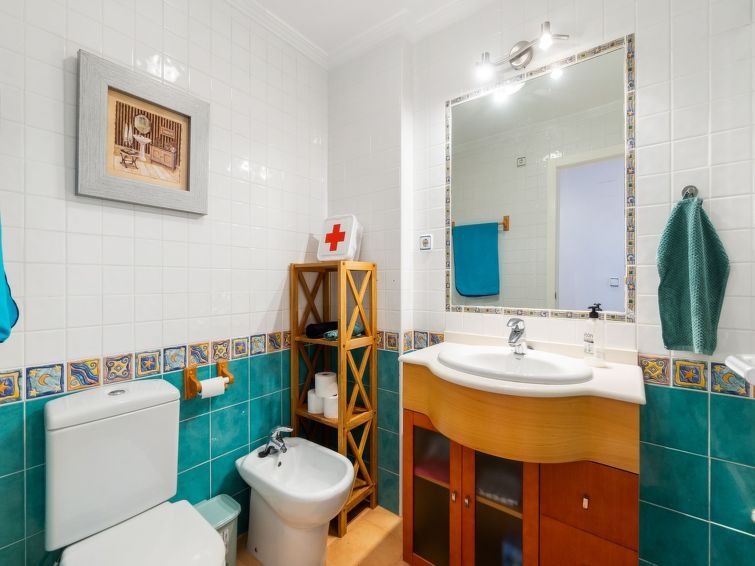 "Verdemar", 3-room apartment 80 m2 on 1st floor. Practical and comfortable furnishings: living/dining room with dining table, digital TV, flat screen, air conditioning and forced-air heating. Exit to the terrace. 1 room with 1 french bed (150 cm, length 200 cm), air conditioning and forced-air heating.
