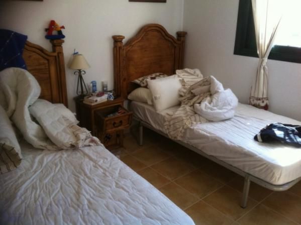 This delightful private villa is detached with its own swimming pool and backs onto a really pretty woodland area with rivers, walks etc. It has 3 bedrooms - one double, one twin and one single, two bathrooms and sleeps 5 guests.