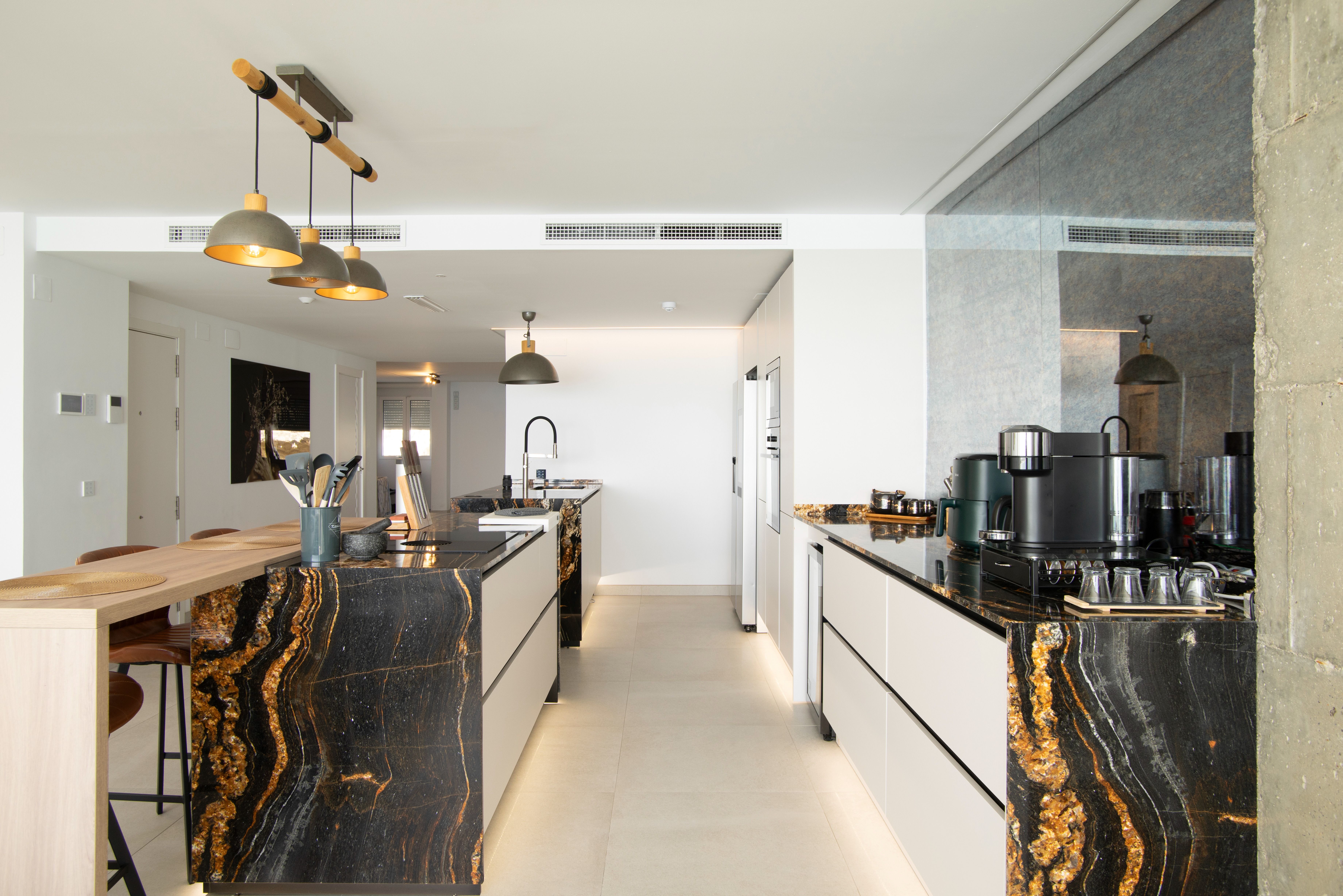 This stylish apartment puts you right on the edge of one of Alicante’s most beautiful beaches. Inside, floor-to-ceiling windows flood the space with natural light and frame postcard-worthy sea views. Tech lovers will appreciate the modern touches, from the electric fireplace and wine fridge to the smart lighting controls and a digital shower thermostat. Step outside and you’ll find restaurants, bakeries and supermarkets on your doorstep, while the historic city centre is just a five-minute stroll away, perfect for evenings of tapas, sangria, and seaside sunsets.