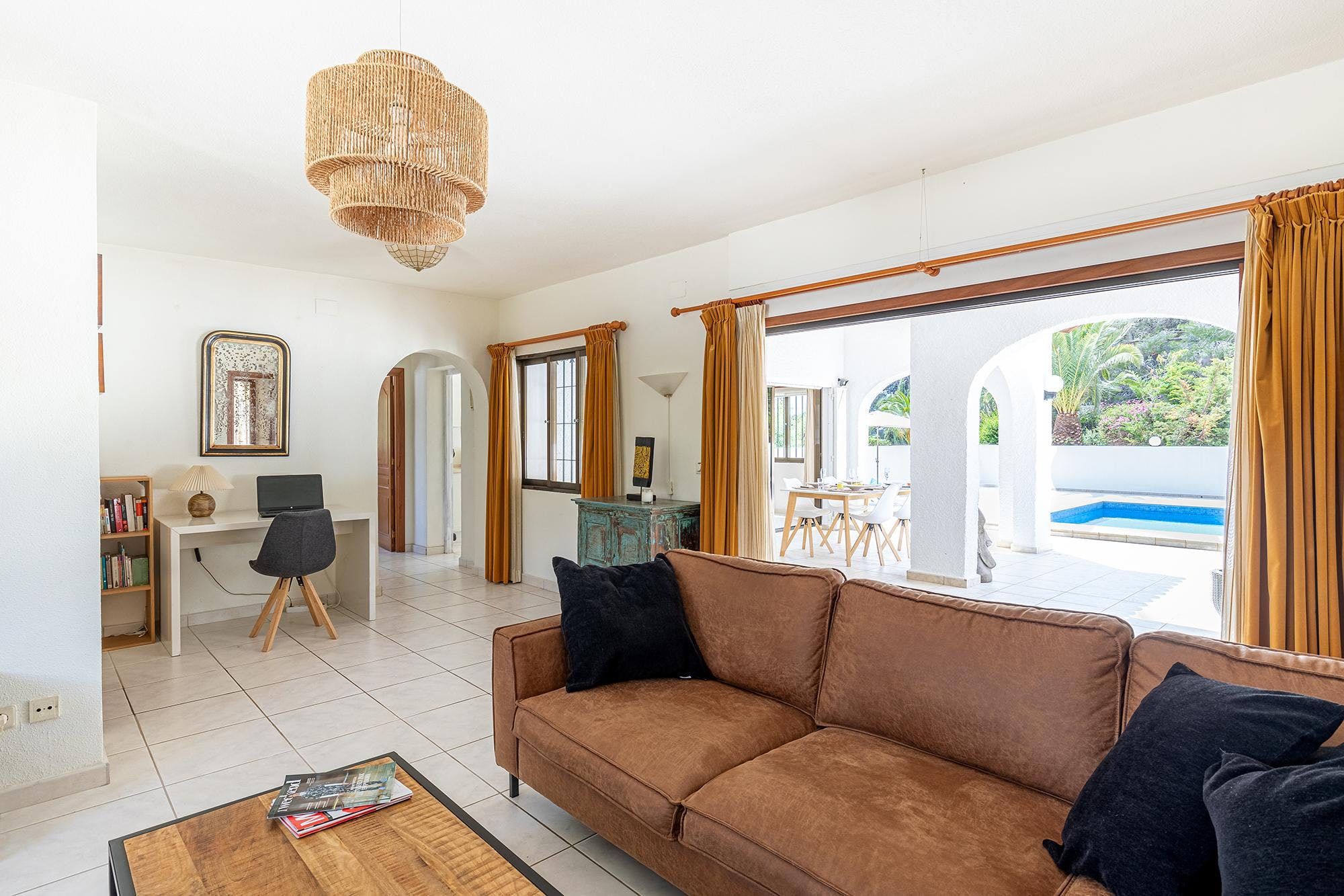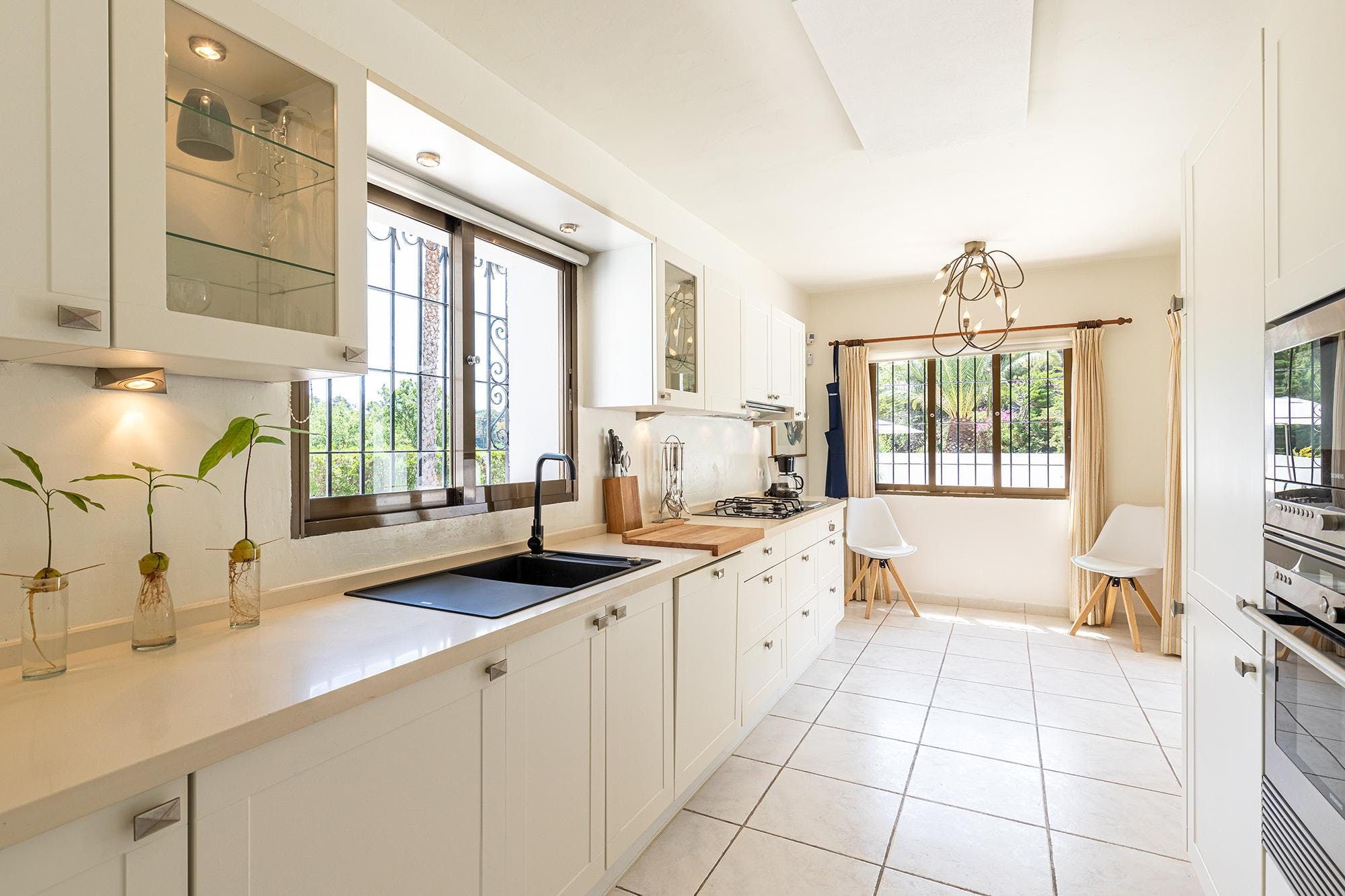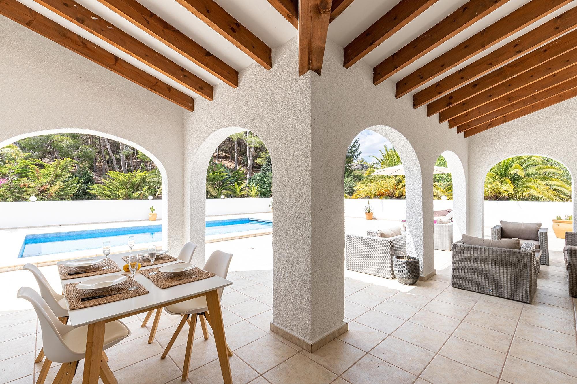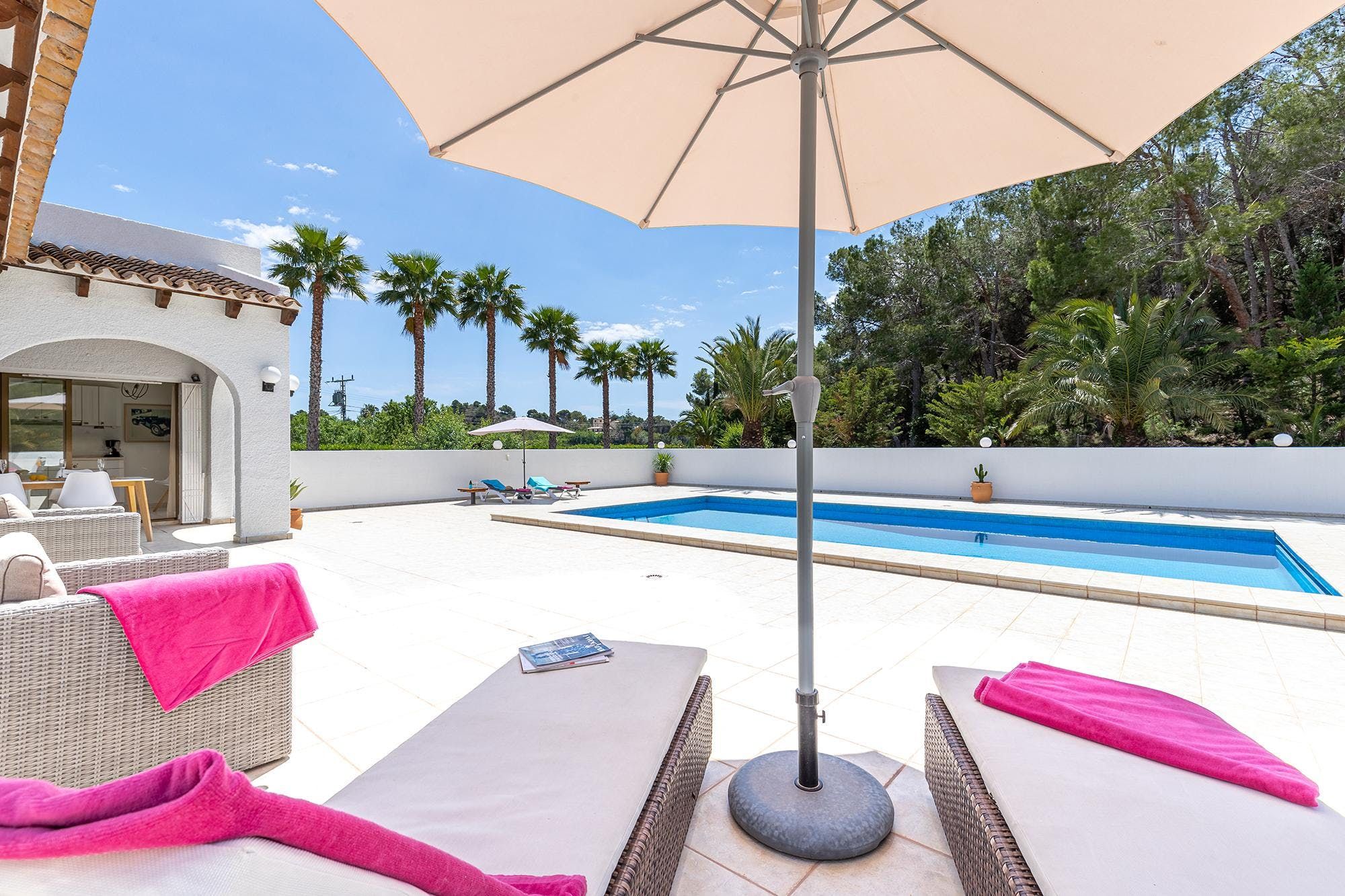 Surrounded by leafy palm trees and rolling green hills, this peaceful home is well-prepped to provide you with many happy holiday memories with your loved ones. The inside is rustic and stylish while the outside is glitzy and glam, with a private heated pool that's large enough for your morning lengths. In between the two sits the covered terrace, complete with dining and lounging areas for all your alfresco living needs. When you want to venture out, the heart of Altea is just a short drive away, and there are also plenty of sublime sandy beaches for you to visit along the famous White Coast.