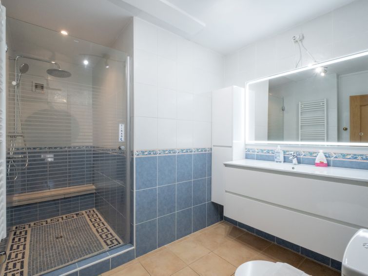"Gekko", 6-room villa 241 m2 on 2 levels. Object suitable for 8 adults + 2 children. Spacious and bright, comfortable and beautiful furnishings: open living/dining room with satellite TV, air conditioning and forced-air heating. Exit to the terrace. 1 room with 1 french bed (1 x 180 cm, length 200 cm), bath/WC, air conditioning and forced-air heating.