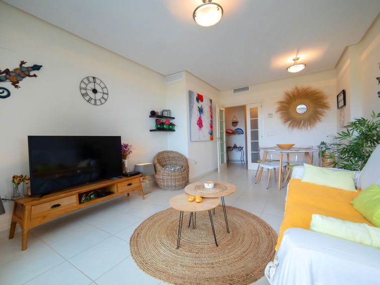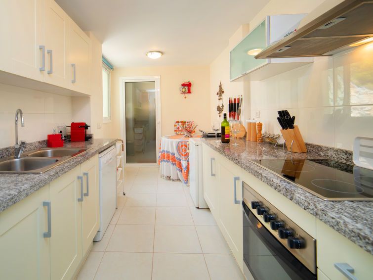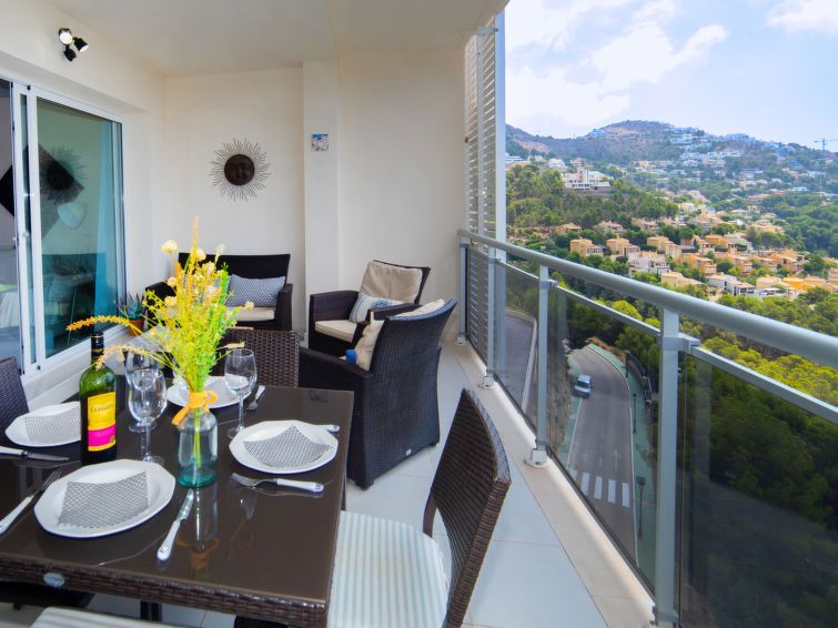 "Jardines de Altea Hills", 3-room apartment 154 m2 on 3rd floor. Spacious and bright, comfortable and beautiful furnishings: open living/dining room with digital TV, air conditioning and forced-air heating. Exit to the terrace. 1 room with 1 french bed (1 x 160 cm, length 200 cm), bath/bidet/WC, air conditioning and forced-air heating.