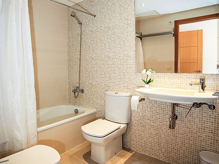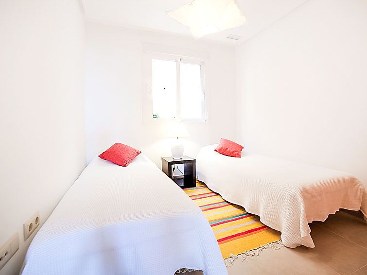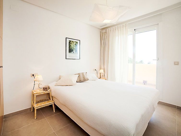 "Los Lirios III", 3-room apartment 95 m2, on the ground floor. Bright, comfortable and modern furnishings: living/dining room 24 m2 with digital TV, air conditioning and forced-air heating. Exit to the terrace. 1 room with 1 french bed (160 cm, length 200 cm), bath/shower/bidet/WC, air conditioning and forced-air heating.
