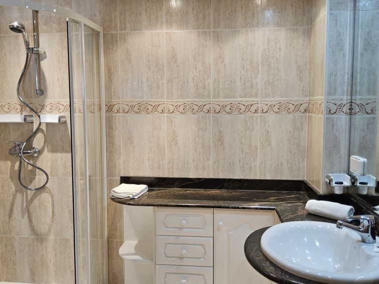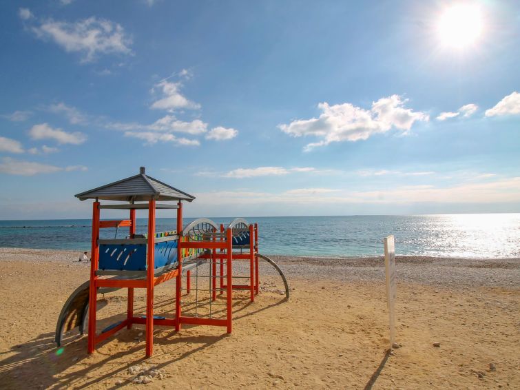 "Marysol", 3-room apartment 97 m2 on 2nd floor. Spacious and bright, comfortable and tasteful furnishings: living/dining room 42 m2 with digital TV, air conditioning and forced-air heating. Exit to the terrace. 1 room 10 m2 with 2 beds (90 cm, length 190 cm), air conditioning and fan.