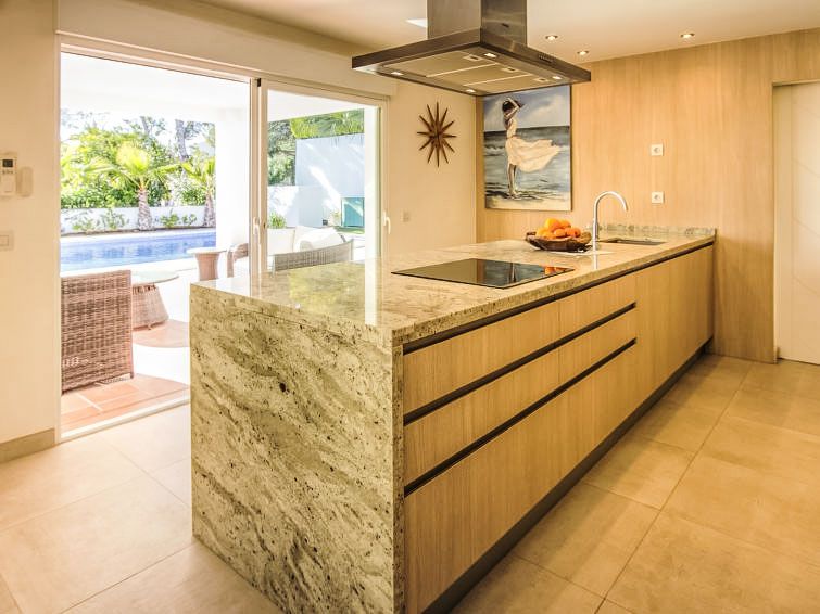 The villa itself is wonderful. It's spacious, has everything you need in the kitchen, and everything works. It's located in a beautiful, quiet area right next to the golf course. Unfortunately, there's been a large construction site right next door for a few years. Yes, you can hear it, but if you're not there all day, you can live with it. This street was very quiet at night. About a 7-minute drive from La Vella, where you'll find some excellent restaurants.