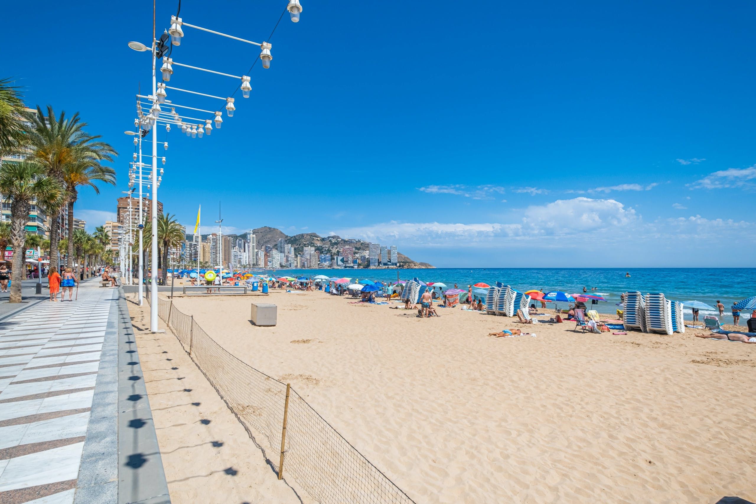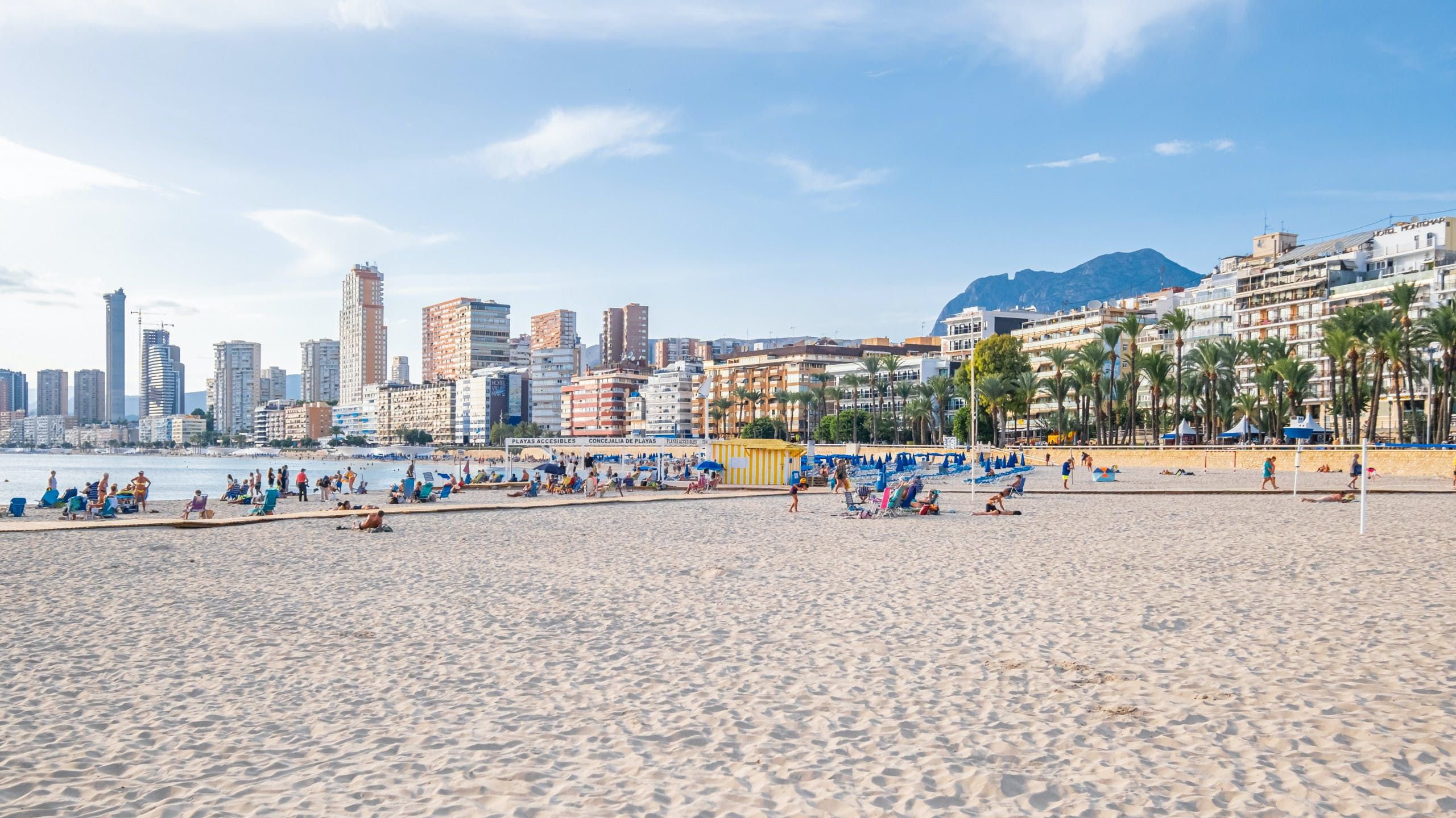 This no-frills apartment is just 150 metres from the sandy shores of Benidorm's Playa de Levante. The location in the old town is fantastic – restaurants, shops, and bars are all steps away – though that does mean it can get a little noisy at night. Back home, there isn't any outdoor space, but the floor-to-ceiling windows act as an internal balcony, making it an excellent spot to savour a glass of wine and watch the world pass by. One guest will sleep on a sofa bed, and only the living area has air conditioning (the bedrooms have fans). That said, it does the trick for a central pad a short stroll from the beach.