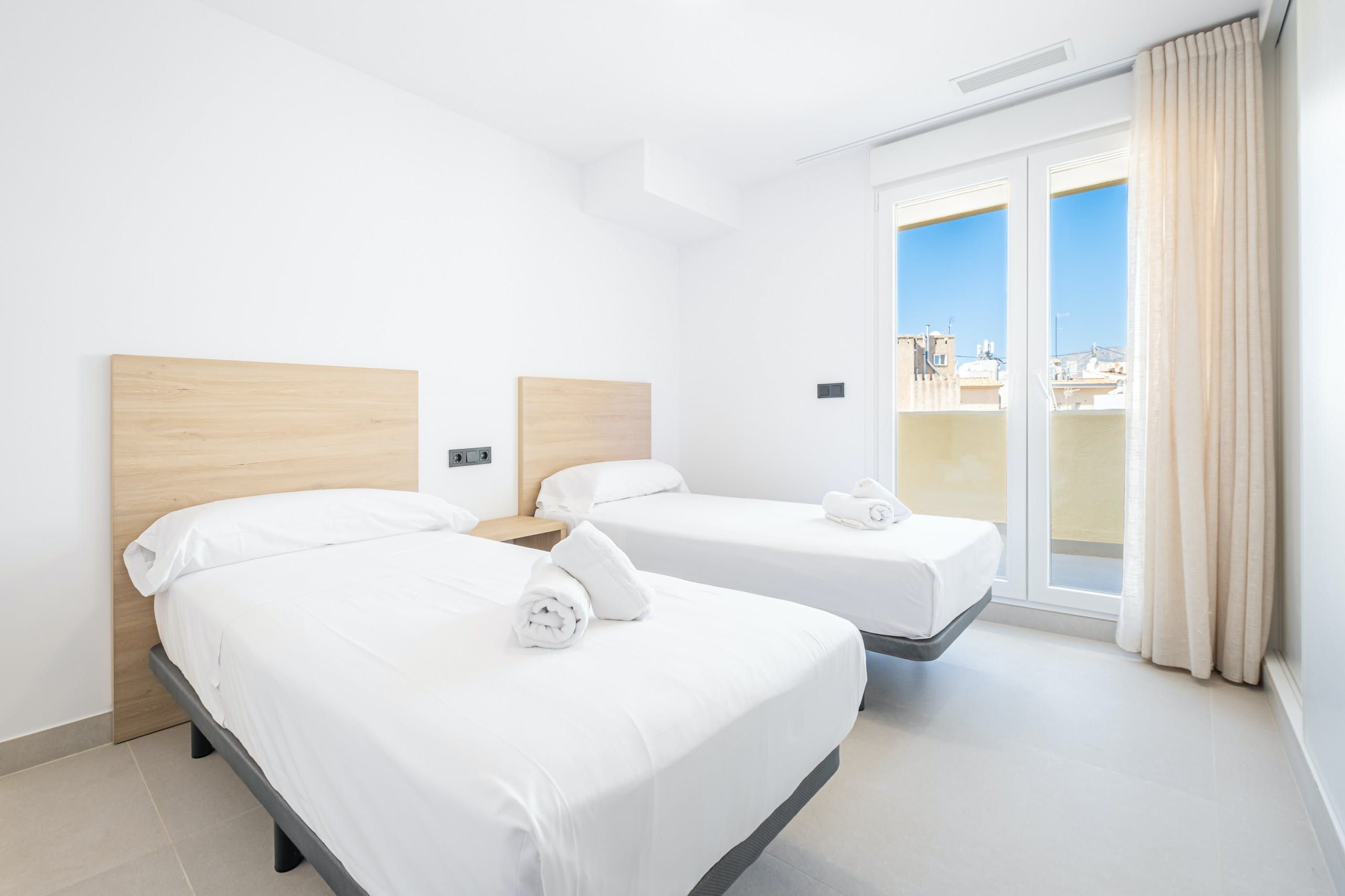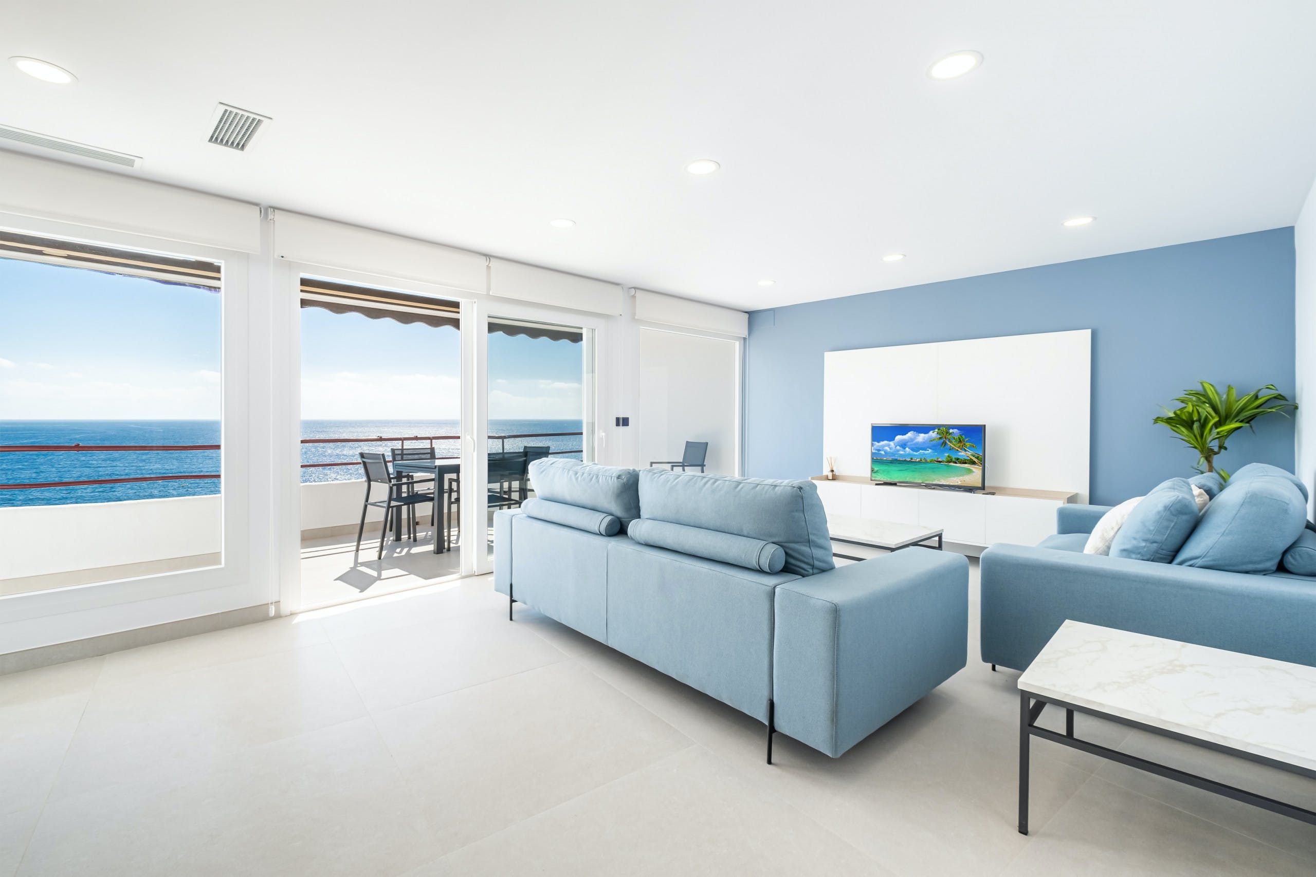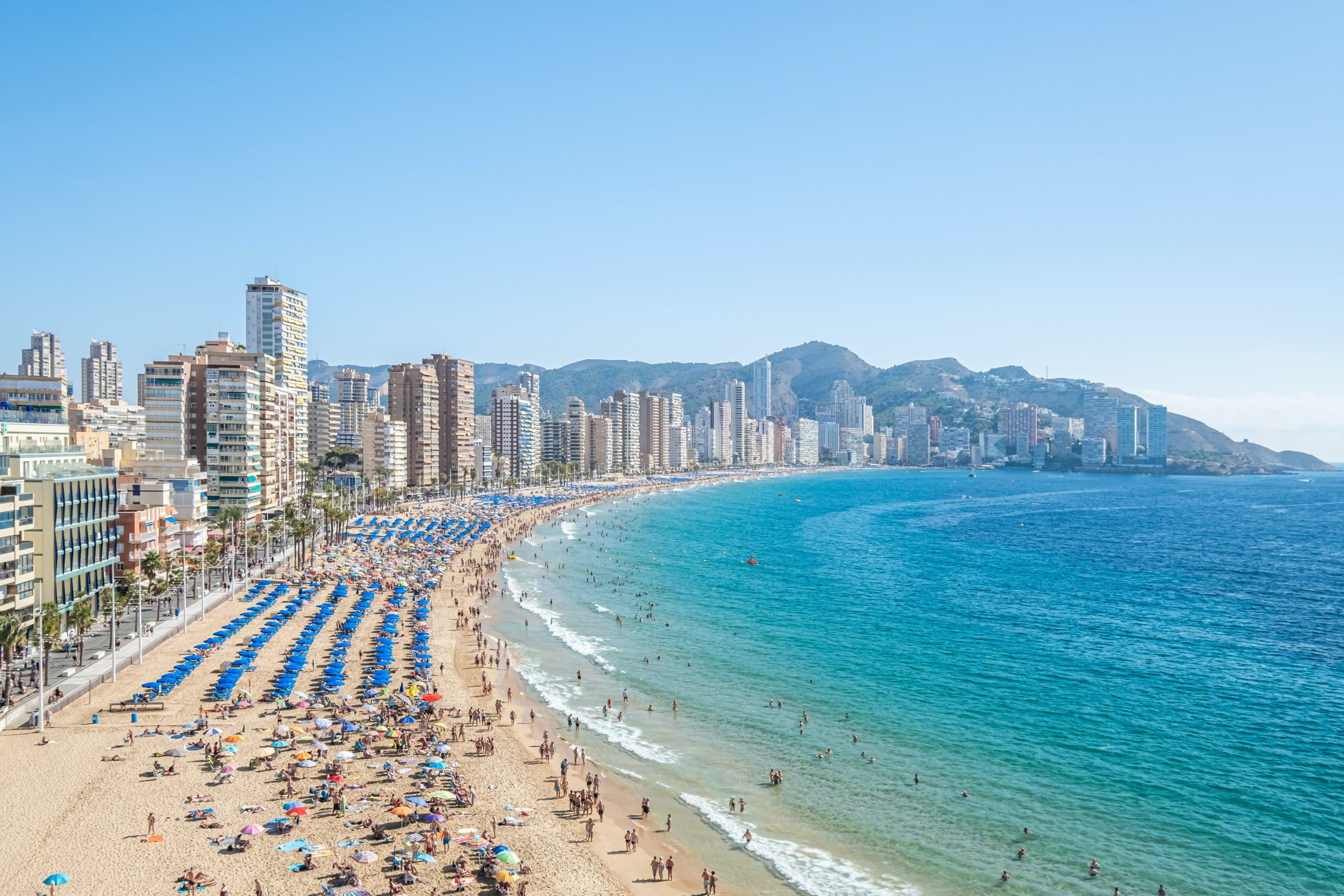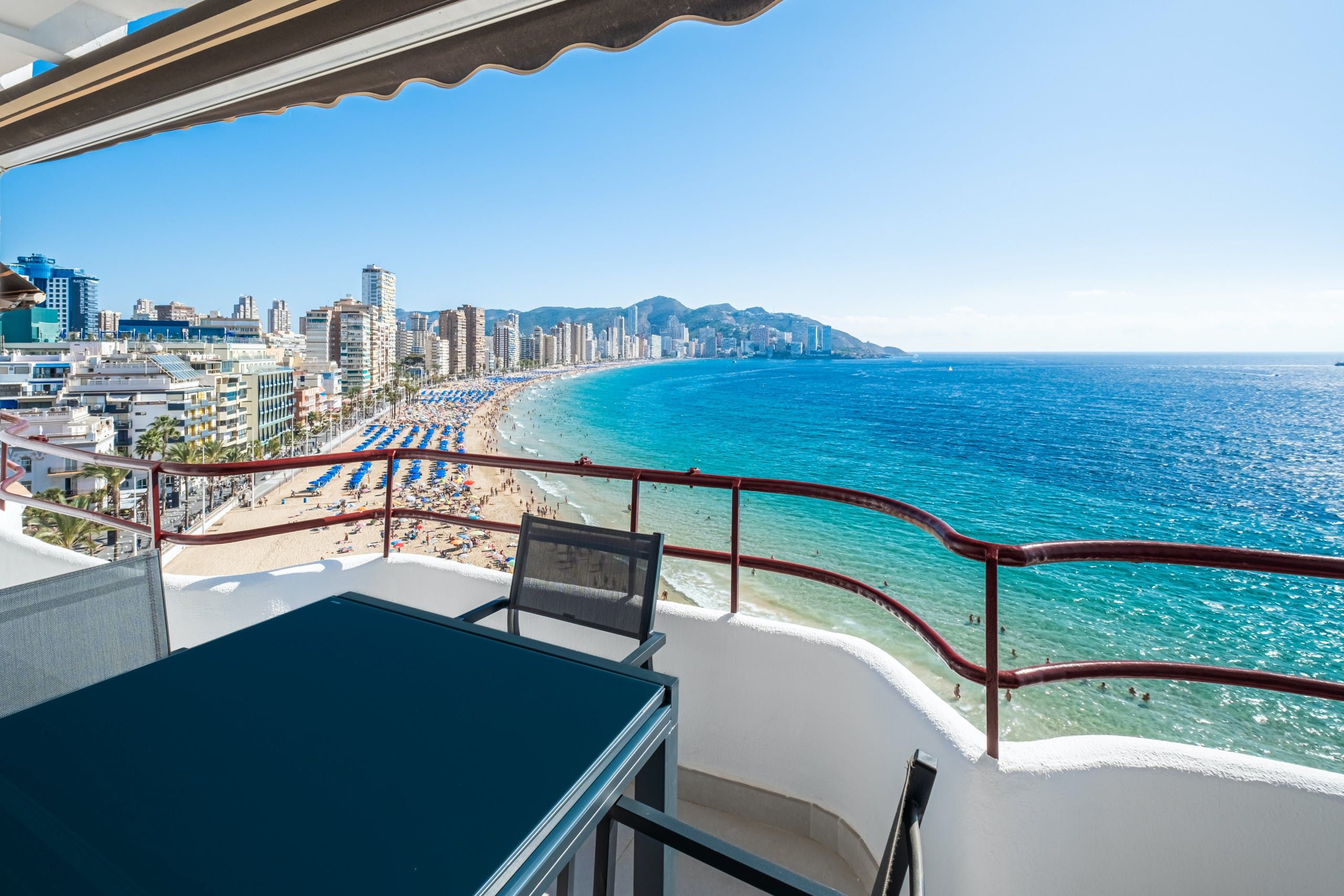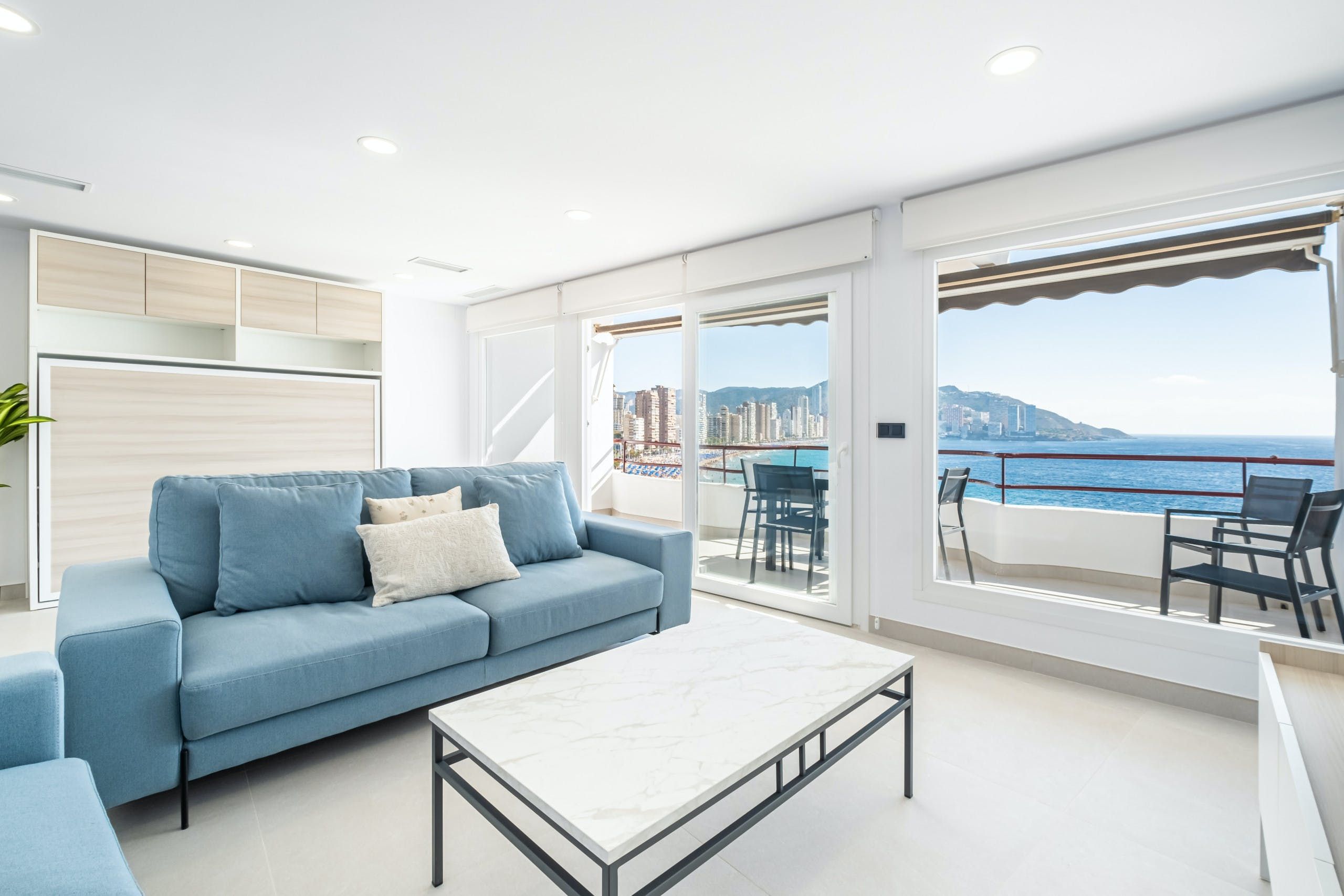 With direct access to Llevant Beach and unobstructed panoramas of the Mediterranean Sea from the private terrace, this apartment suits families or friends seeking a sun-soaked holiday on the eastern coast of Spain. Benidorm’s Old Town is on the doorstep, placing you within easy walking distance of bars, restaurants and cafes. This home is fuss-free yet well-appointed. The kitchen has everything you need for cooking up a storm, and there’s plenty of wardrobe space for those planning a longer break.