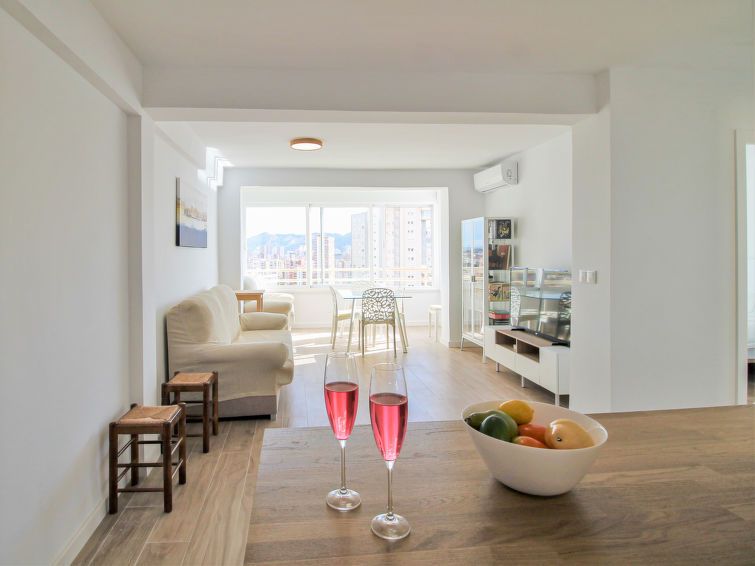 "Pintor Sorolla", 3-room apartment 65 m2 on 15th floor, north facing position. Object suitable for 4 adults. Spacious and bright, fully renovated in 2023, practical and comfortable furnishings: living/dining room 12 m2 with panoramic window with digital TV, air conditioning and forced-air heating.