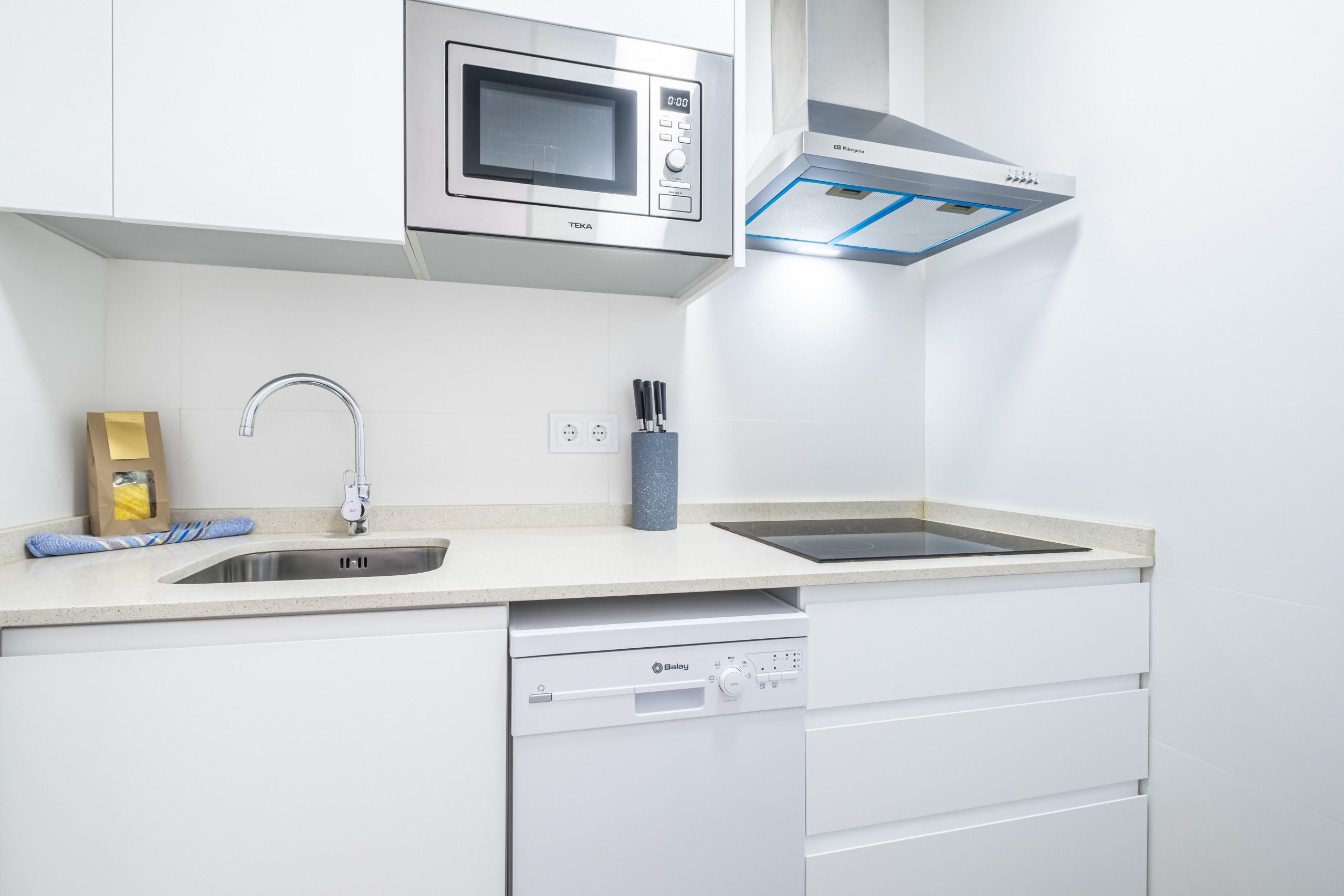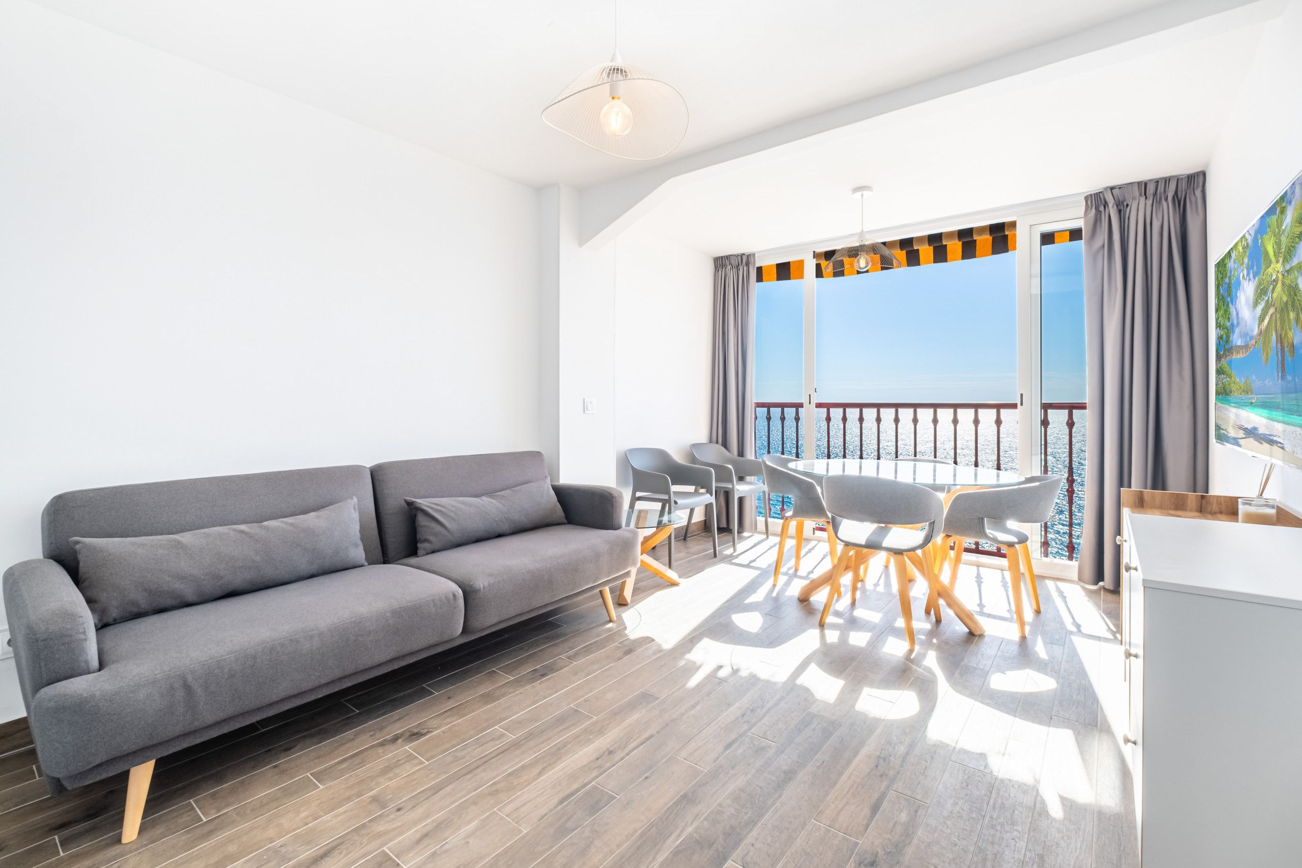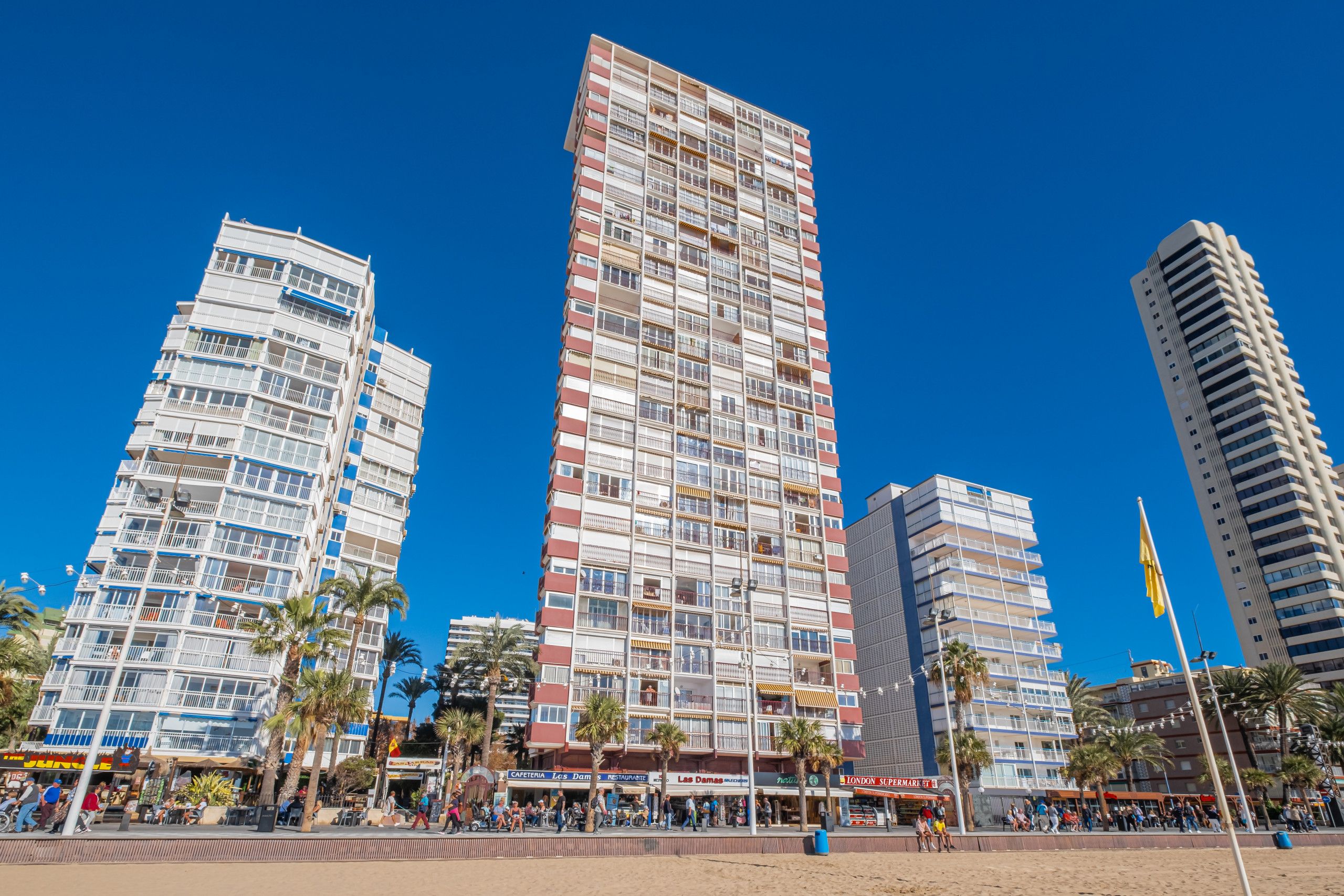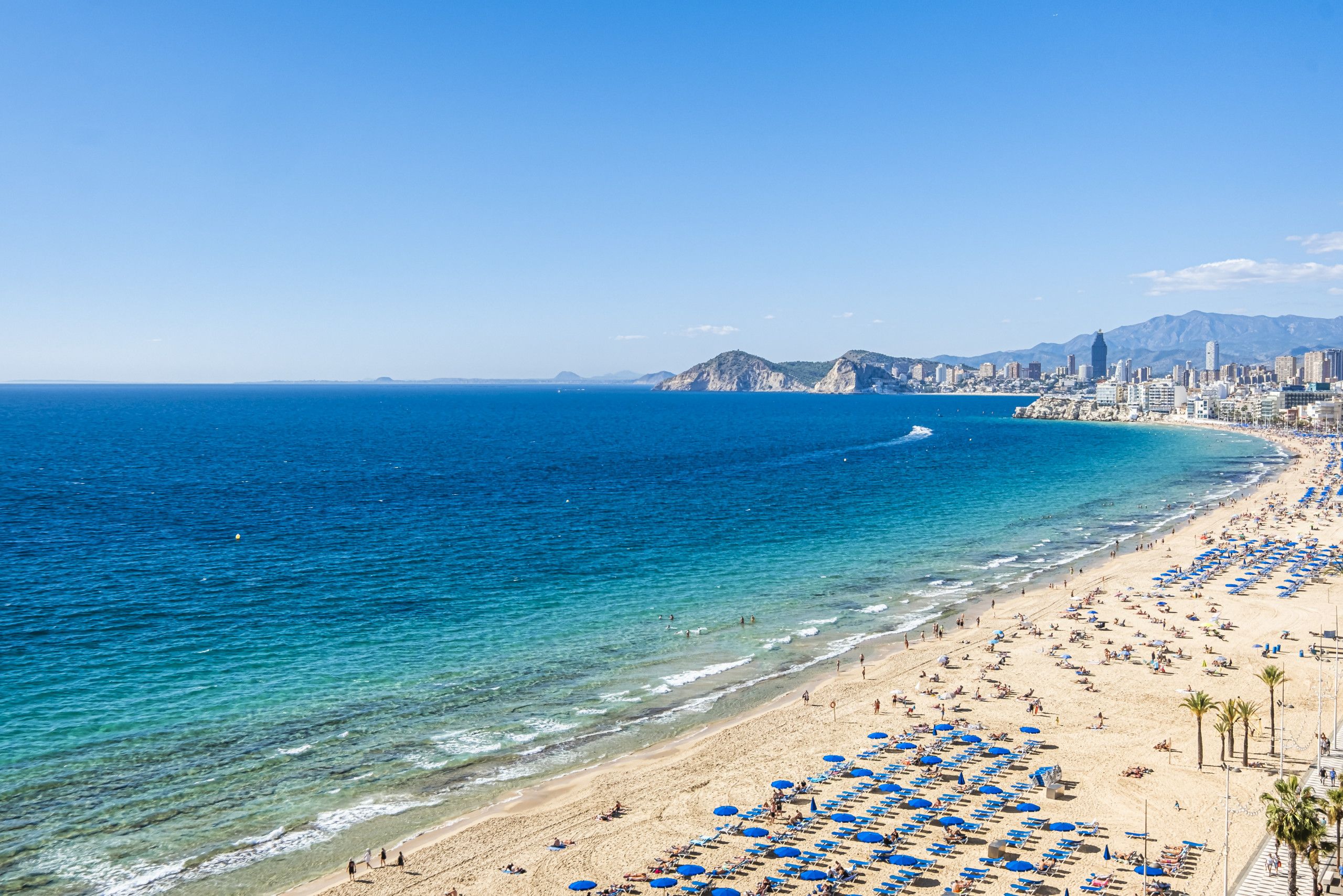 This apartment is all about location. It’s situated right on the beachfront of Levante in Benidorm. You can walk to the beach in just two minutes, and if you prefer the poolside to the sand, there’s a communal pool to cool off in too. From the balcony, you can admire sweeping views of the sea, bay and city – the water glitters in the sunshine. The apartment is compact but comfortable – it’s an ideal base for a couple wanting to be beside the sea.