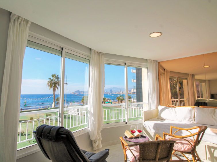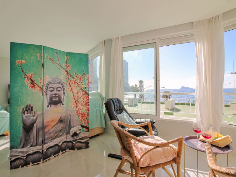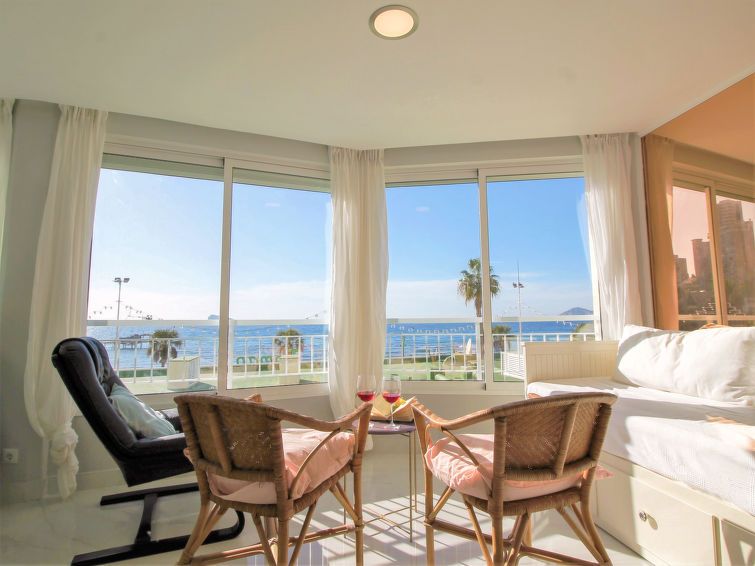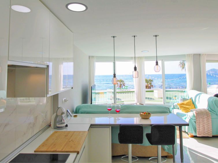 "Vistas sobre el mar", 2-room Loft 80 m2, east facing position. Object suitable for 4 adults. Spacious and bright, fully renovated in 2022, very comfortable and tasteful furnishings: living/dining room with panoramic window with satellite TV, air conditioning, fan and forced-air heating.