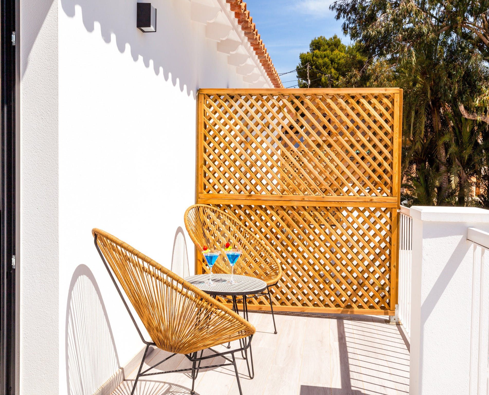 When you aren't on the beach, there's plenty to keep you entertained at home. With a shared pool surrounded by comfy sun loungers and luxurious Balinese beds, order yourself a cocktail from the on-site bar and enjoy the Spanish weather. Go for a swim to cool down or take a seat at one of the tables to soak up your surroundings. The apartment itself has all of the comforting touches you need to feel right at home, as well as a private balcony that overlooks the pool deck. Start your day here with a cup of coffee, before heading off to see what Benissa has to offer.