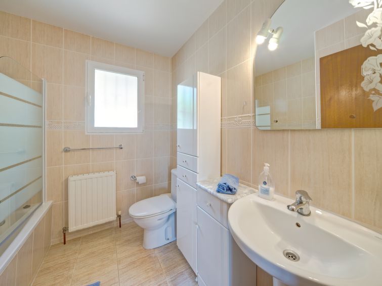 "La Repere", 5-room house 282 m2 on 2 levels. Spacious and bright, renovated in 2022, comfortable and cosy furnishings: living/dining room with satellite TV and fan. Exit to the terrace. 1 room with 2 beds and 1 pull-out bed (1 pers.), air conditioning and fan. 1 room with 1 french bed, shower/WC, satellite TV, air conditioning and fan.