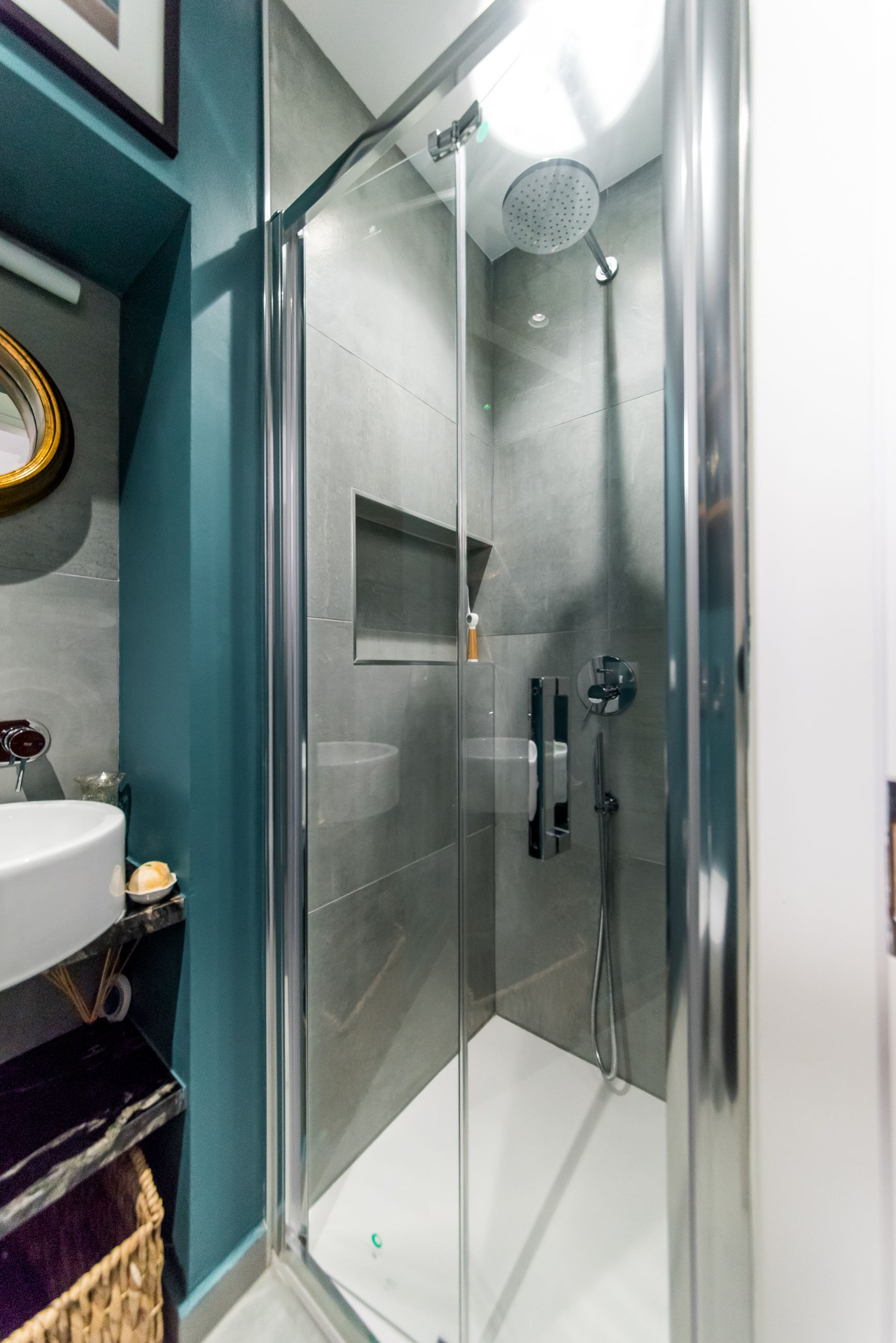 We're also happy to say that there's plenty of substance behind this style. The sleek black kitchen not only looks the part, but it's also well-equipped for whipping up a feast. We're also fond of the terrace, which has views out over the rooftops and verdant hillsides beyond.