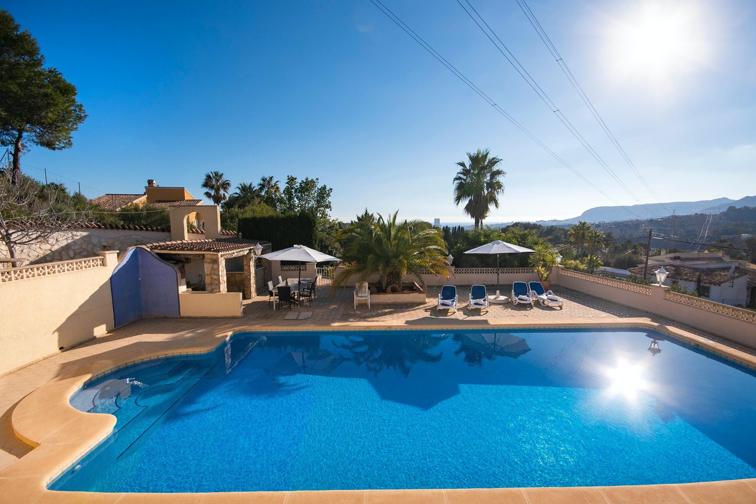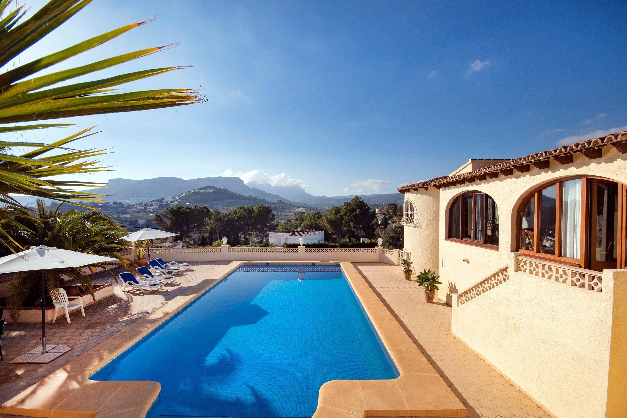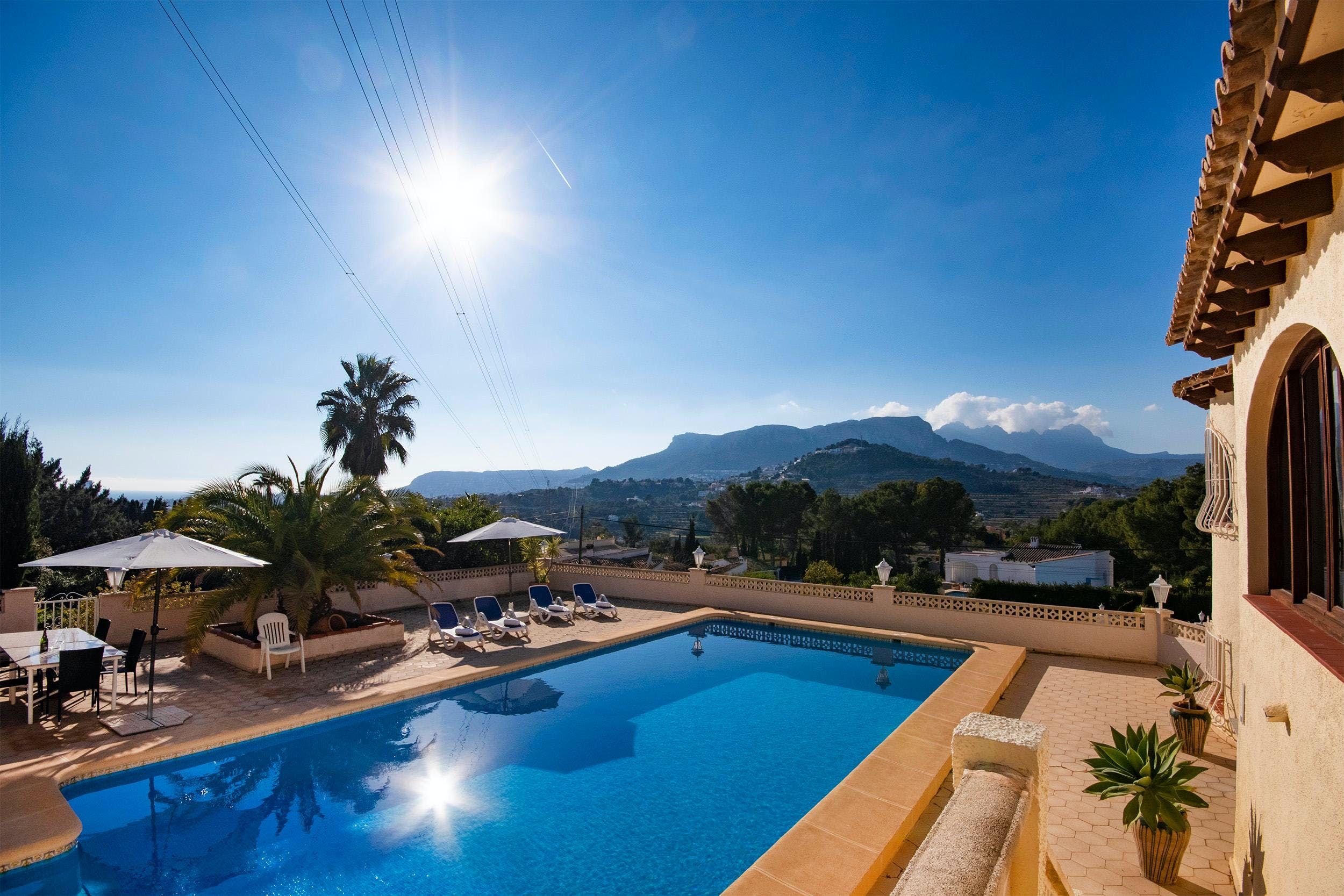 This holiday haven is located on the gorgeous Costa Blanca, just a short drive from the stunning Cala El Raco beach, and within walking distance of some lovely bars and restaurants in Calpe. Peaceful and private, this home features a lovely garden with swaying palms and sun loungers, with a large private pool where you can cool off on hot days. The views from here are exquisite – you can gaze out at rolling hills and quaint villages while you sip your morning coffee.