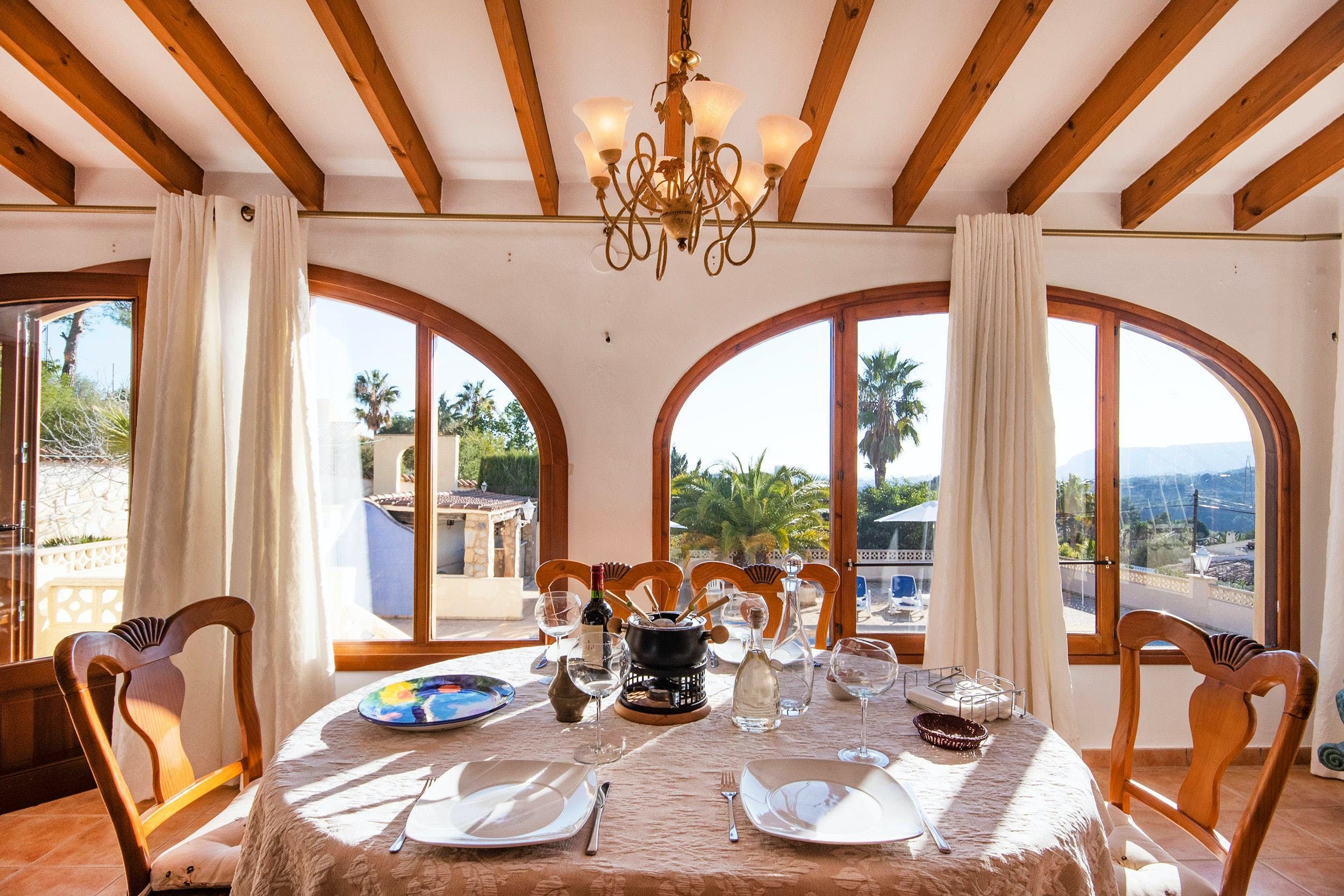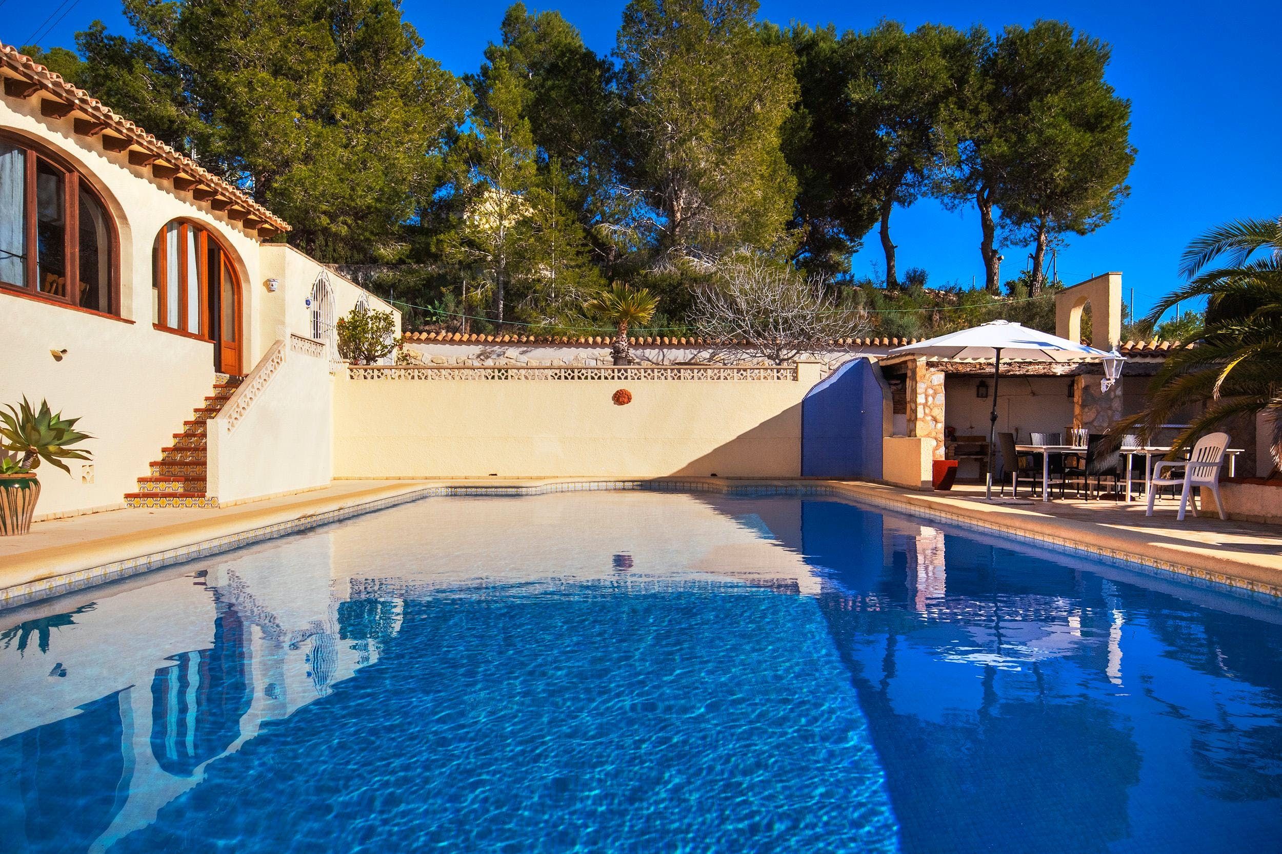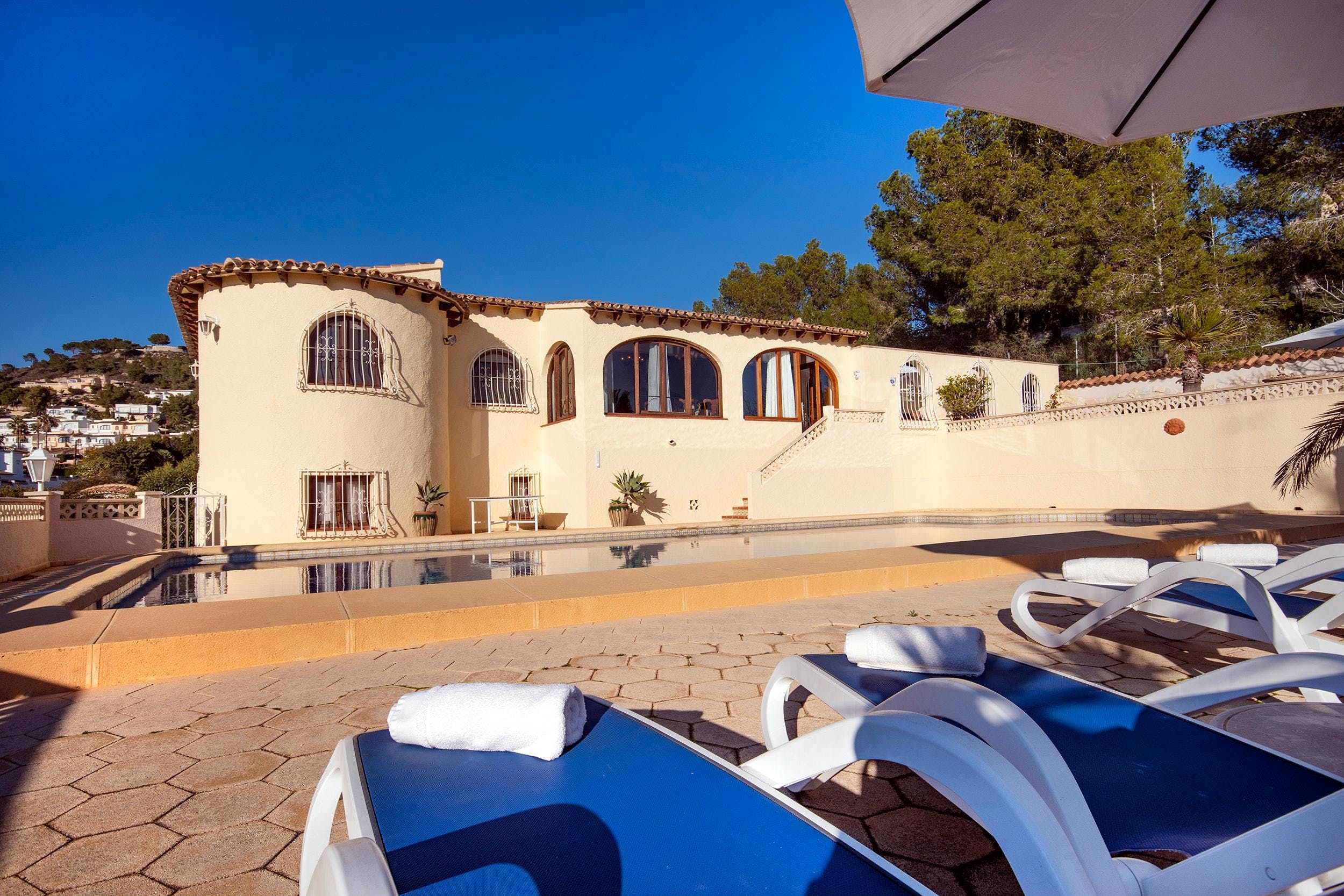 This holiday haven is located on the gorgeous Costa Blanca, just a short drive from the stunning Cala El Raco beach, and within walking distance of some lovely bars and restaurants in Calpe. Peaceful and private, this home features a lovely garden with swaying palms and sun loungers, with a large private pool where you can cool off on hot days. The views from here are exquisite – you can gaze out at rolling hills and quaint villages while you sip your morning coffee.