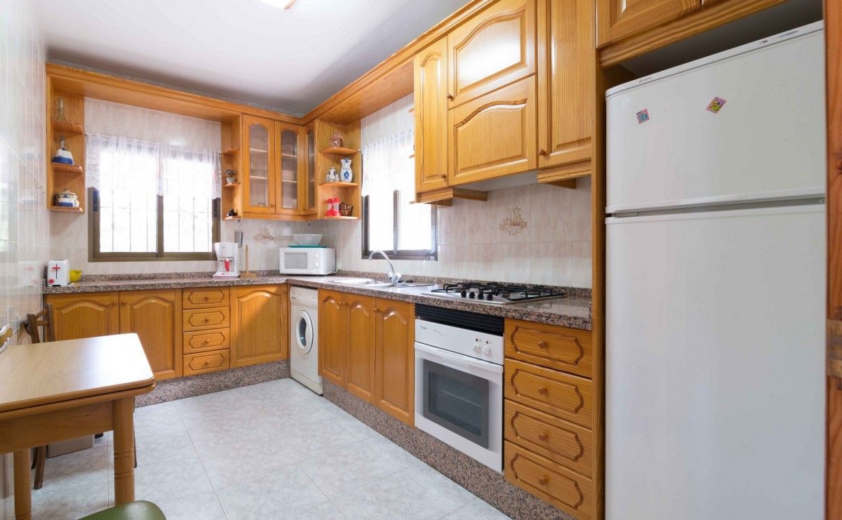 La cocina independiente, de gas, está equipada con nevera, microondas, horno, congelador, lavadora, vajilla/cubertería y utensilios/cocina.