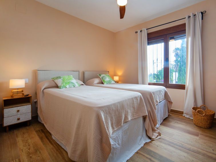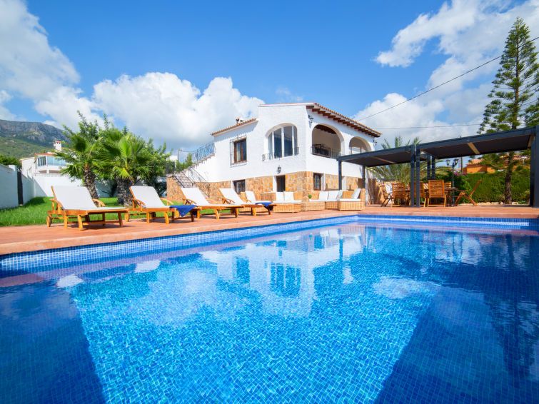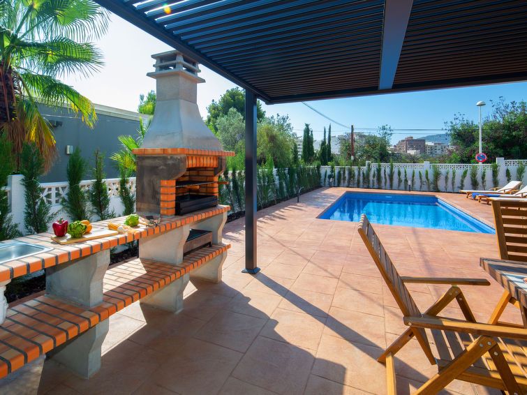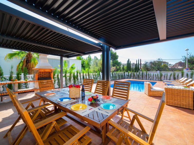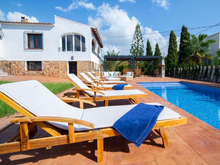 Nice family house, quietly situated fairly close to the centre. Beach is a bit further away. Fully furnished, sufficient cutlery, plates etc. Swimming pool is fine. Downstairs enough seats. Upstairs nice semi-enclosed terrace. Sufficient parking.