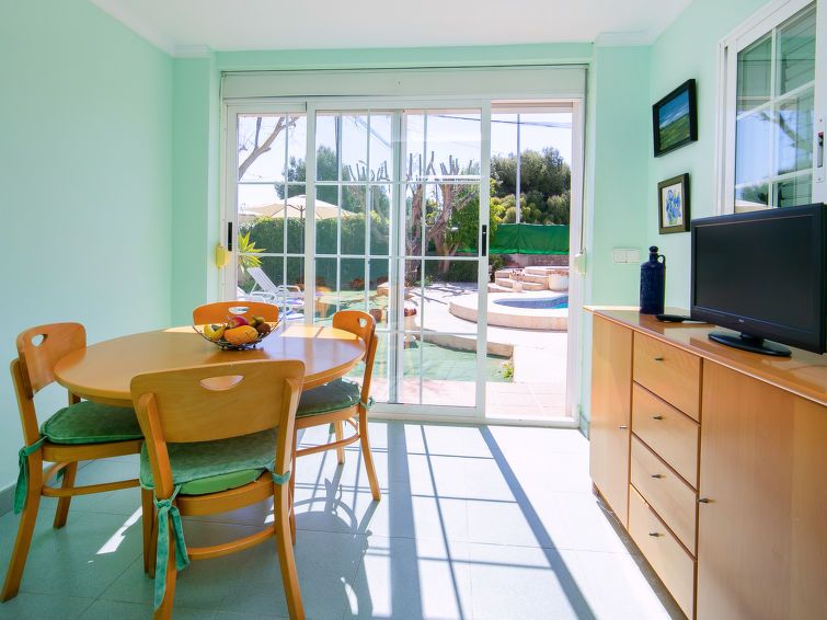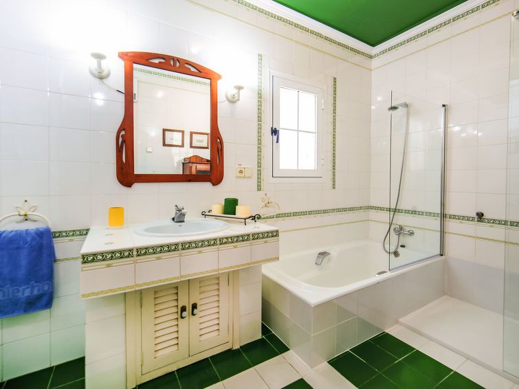 "Alenar", 5-room house on 2 levels. Spacious, practical and comfortable furnishings: living/dining room with open-hearth fireplace, dining table, TV, satellite TV and digital TV. Exit to the patio, to the swimming pool. 1 room with 1 french bed (135 cm, length 190 cm). Kitchen (dishwasher, 3 ceramic glass hob hotplates, toaster, kettle, microwave, freezer, electric coffee machine) with dining table and digital TV.