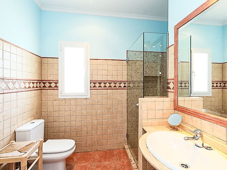 "Azul", 5-room villa 200 m2 on 2 levels. Spacious and bright, comfortable and beautiful furnishings: living/dining room 35 m2 with satellite TV, digital TV, hi-fi system and DVD. Exit to the terrace. 2 rooms 12 m2, each room with 2 beds (90 cm, length 190 cm), fan. 1 room 18 m2 with 1 french bed (150 cm, length 190 cm), shower/bidet/WC and fan.