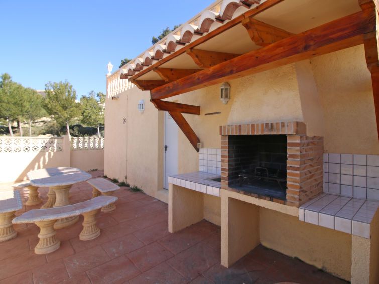 "Bajamar", 5-room villa on 2 levels. Spacious and bright, practical and comfortable furnishings: living/dining room with digital TV and air conditioning. Exit to the terrace. 1 room with 2 beds (90 cm, length 190 cm), air conditioning. Kitchen (oven, dishwasher, 4 ceramic glass hob hotplates, toaster, kettle, microwave, freezer, electric coffee machine).