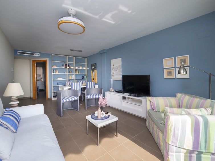 "Borumbot", 3-room apartment 81 m2 on 3rd floor. Object suitable for 2 adults + 2 children. Spacious and bright, beautiful and cosy furnishings: living/dining room with satellite TV, digital TV, air conditioning, fan and forced-air heating. Exit to the terrace. 1 room with 1 french bed (1 x 180 cm, length 200 cm), shower/WC, air conditioning, fan and forced-air heating.