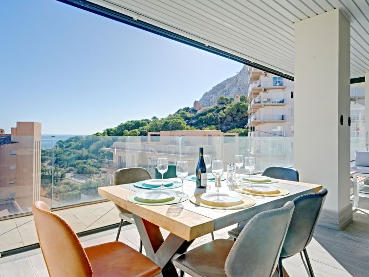 The apartment is as shown in the photos at the foot of the Peñon. Large, bright, very well oriented. The equipment is high-end, it has a large balcony-terrace going all around the apartment with a view of the sea. Everything can be done on foot, 2 steps from the beach of La Fossa, also close to the port and its beach of Raco. It is 2 km from the city center of Calpe by the Passeig maritime Arenal. The Mercadona and Consum supermarkets are 3 minutes by car, the Spar is within walking distance.