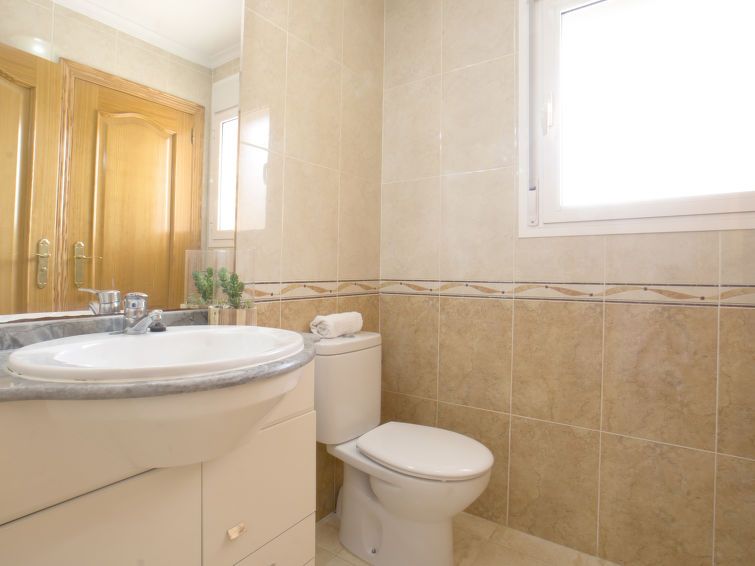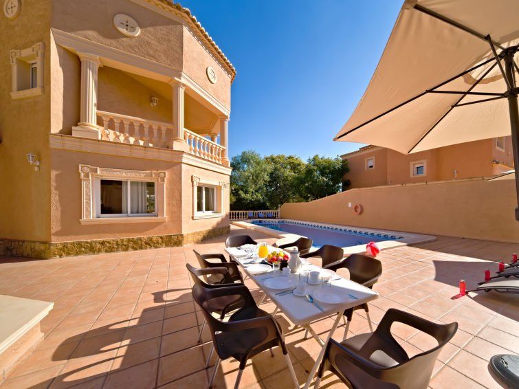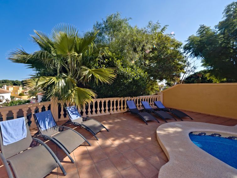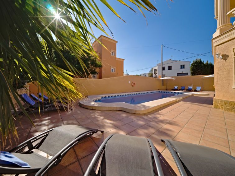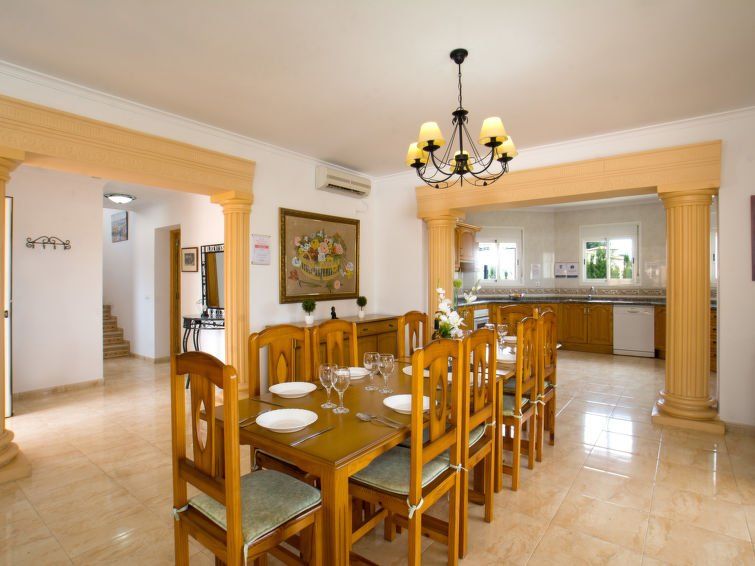 "Calpetenis", 5-room villa 311 m2 on 2 levels. Living/dining room with dining table, satellite TV, international TV channels, air conditioning and forced-air heating. Exit to the terrace. 1 room with 1 french bed (135 cm, length 190 cm), bath/bidet/WC, air conditioning and forced-air heating.
